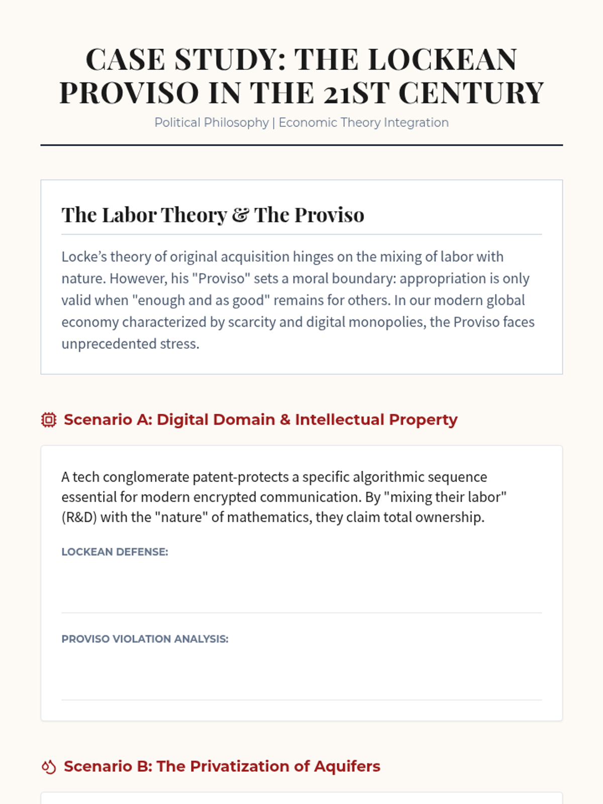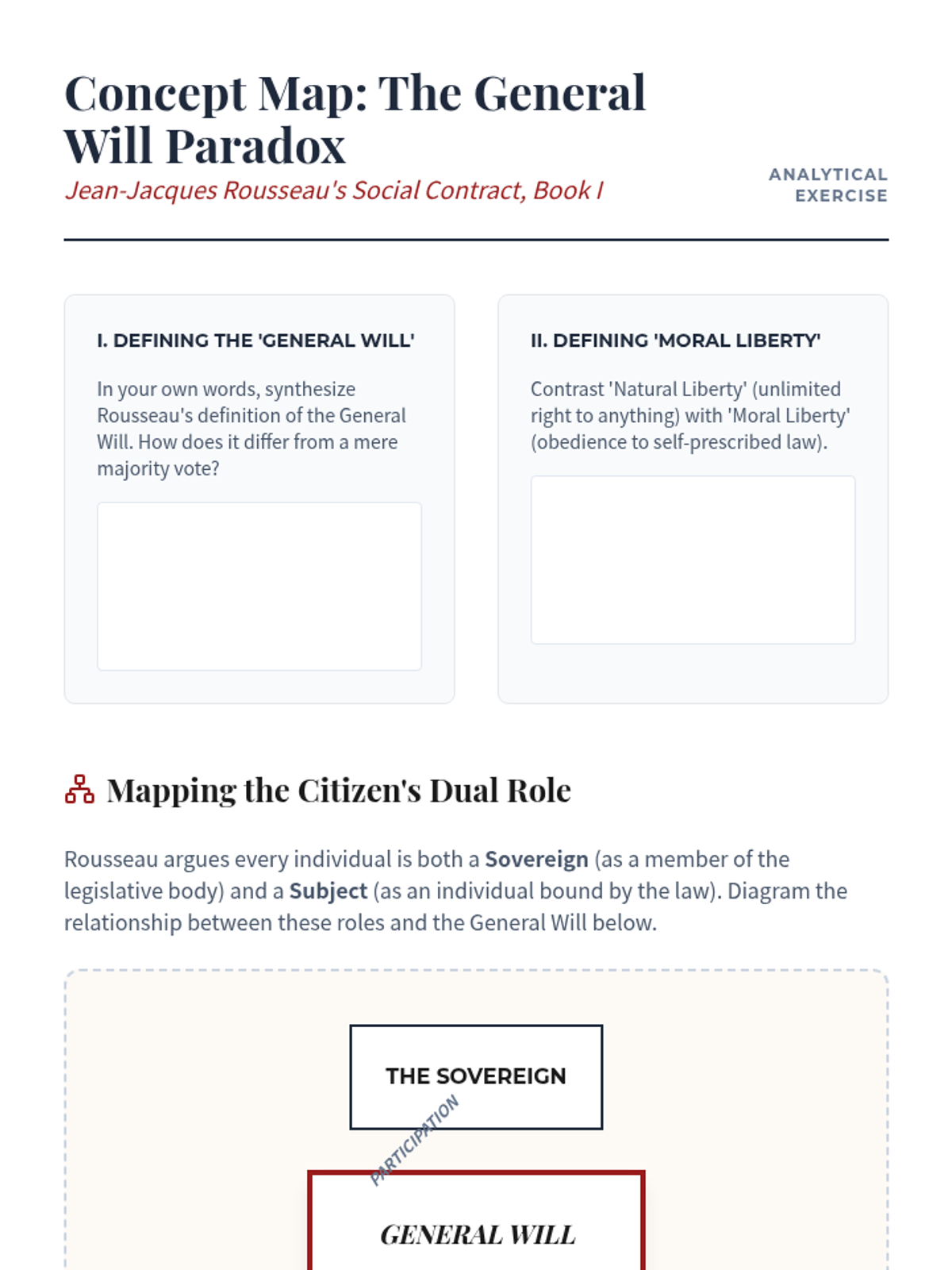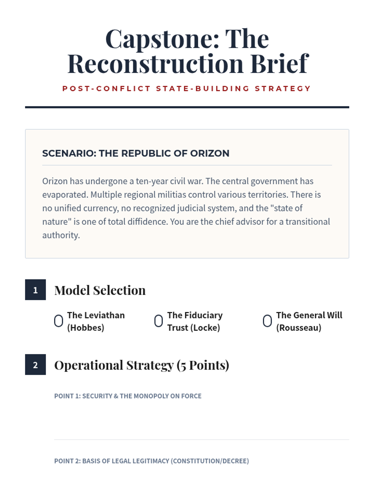 A graduate-level exploration of Social Contract Theory, focusing on the works of Hobbes, Locke, and Rousseau, and their implications for political legitimacy and the right to revolution.
