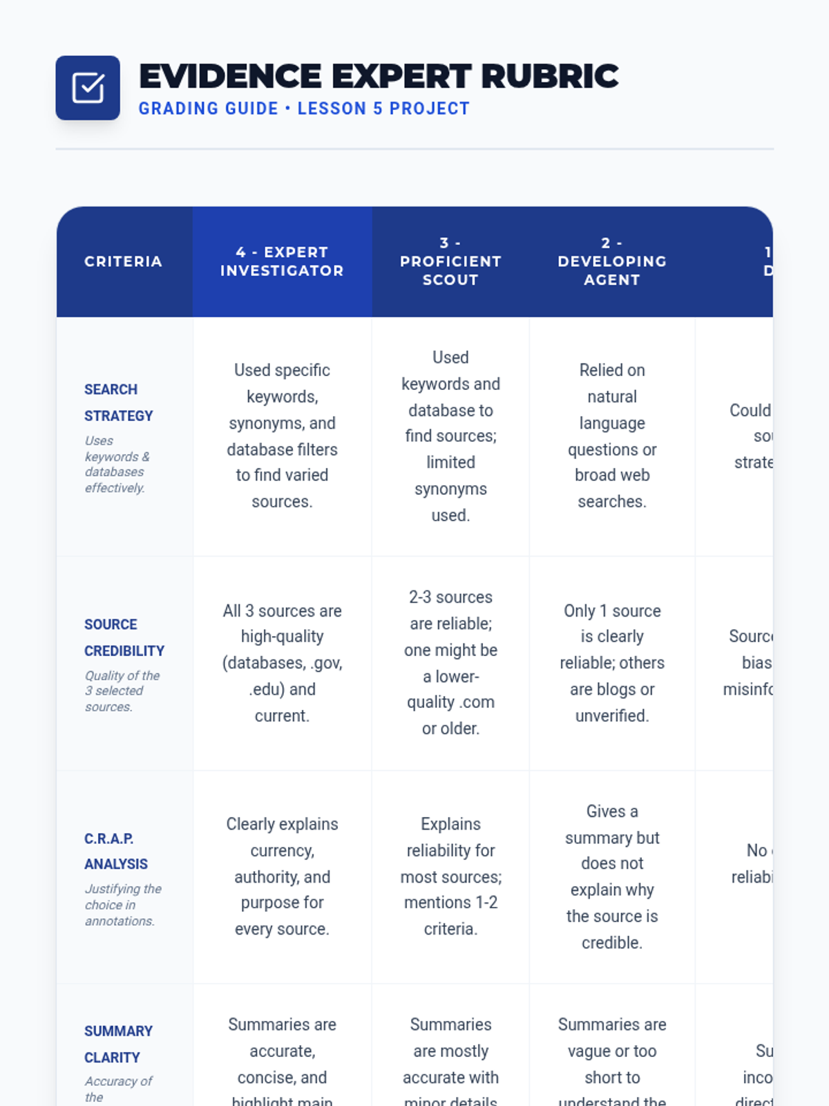 A sequence for 7th-grade ESL students focusing on digital literacy, evaluating source credibility, and mastering search strategies for academic research. Students move from identifying misinformation to independently curating high-quality sources using databases and Boolean logic.
