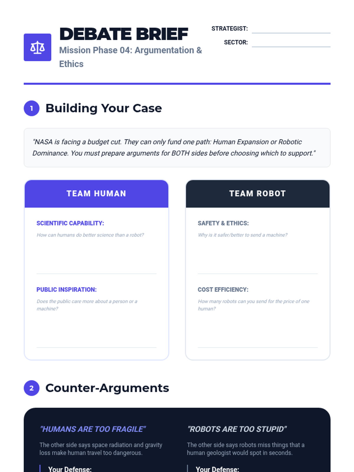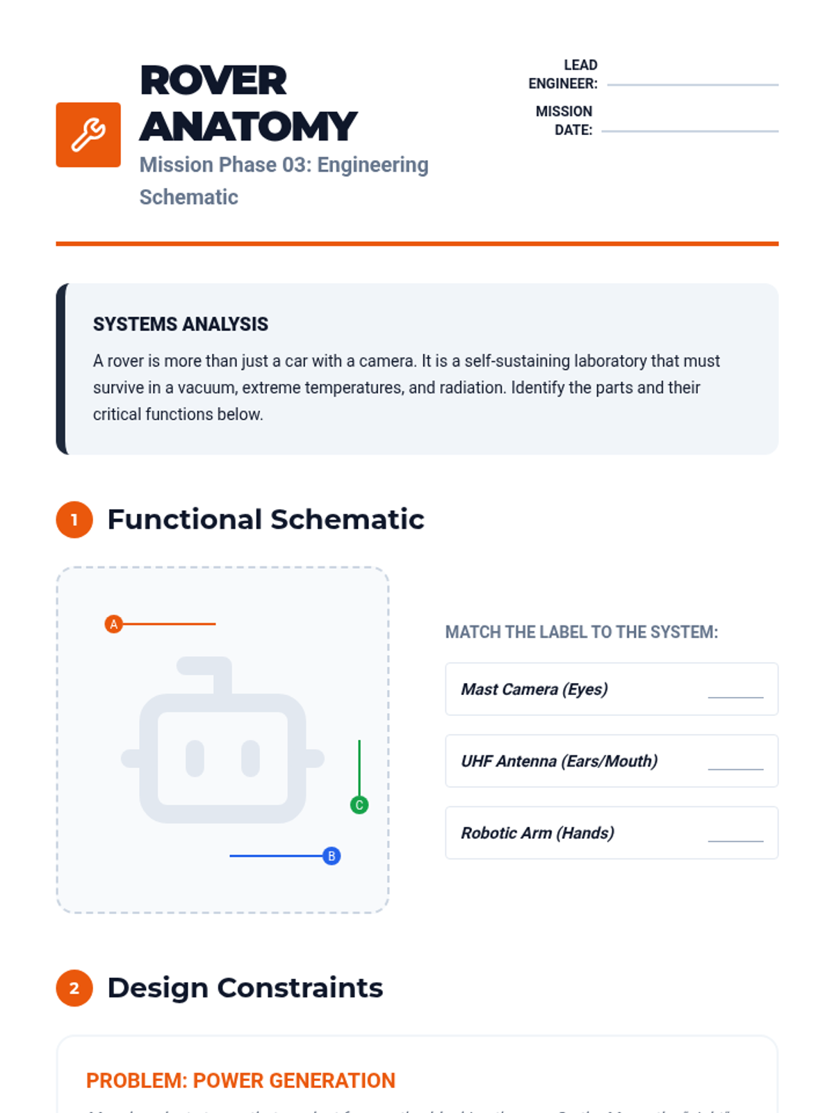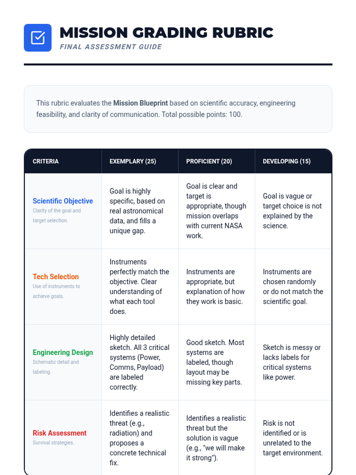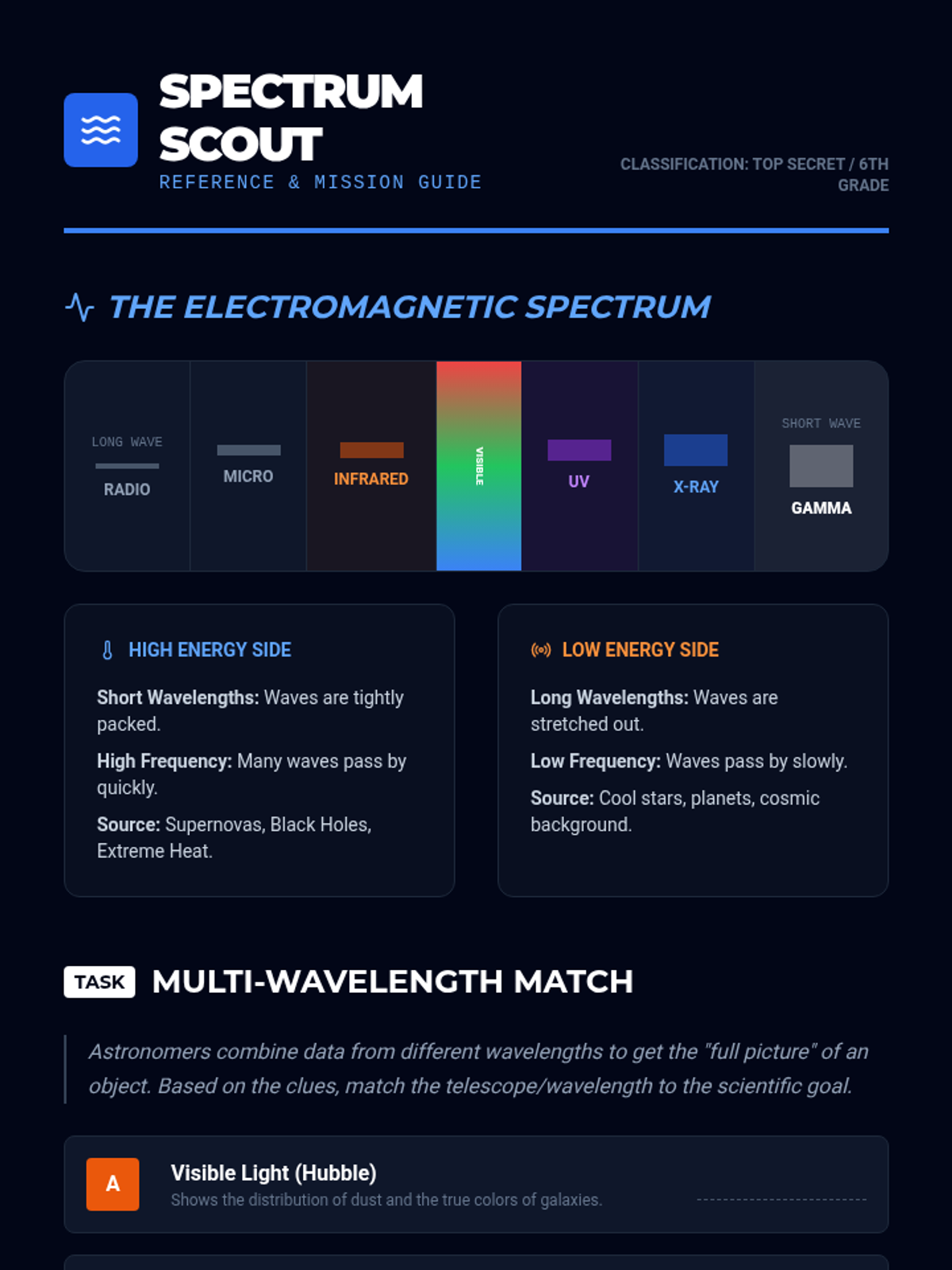 A 5-lesson unit for 6th grade exploring the evolution of astronomical technology, the electromagnetic spectrum, spacecraft engineering, and the future of human vs. robotic space exploration.