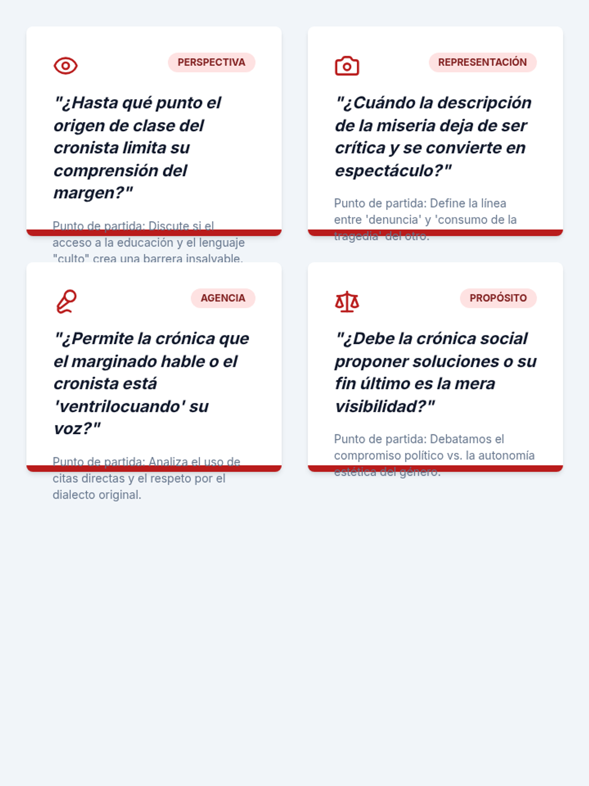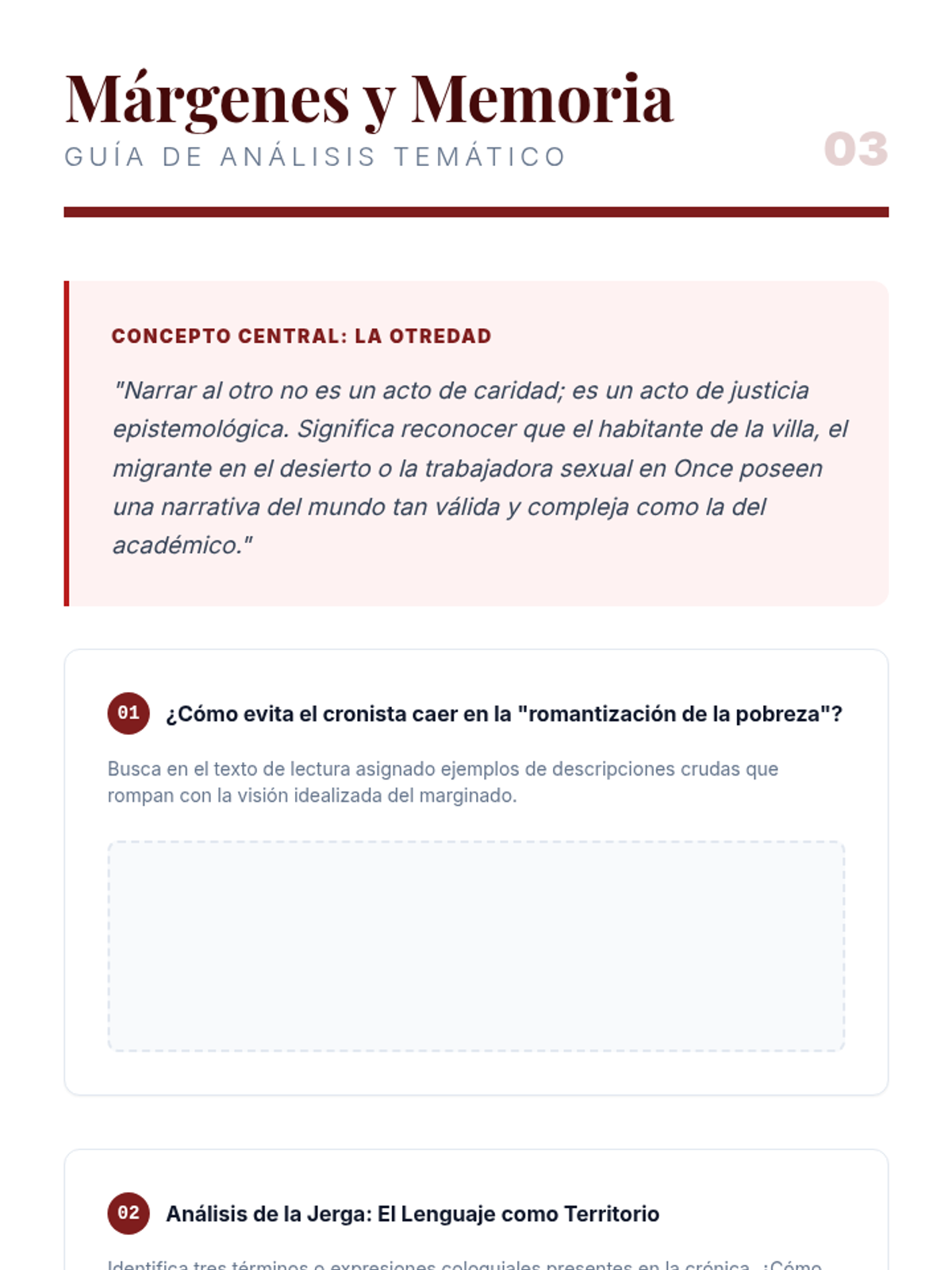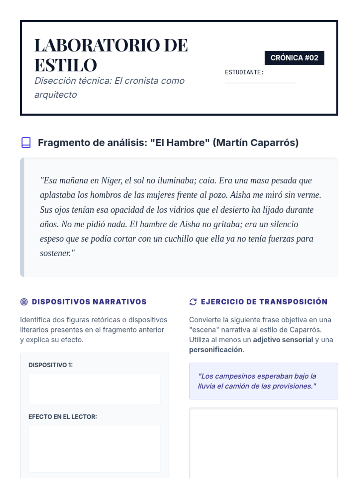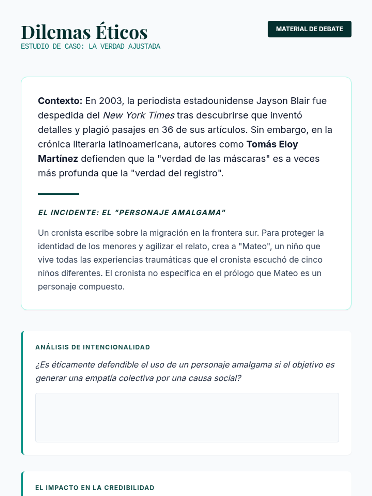 This advanced Spanish sequence explores the Latin American 'crónica', examining the intersection of literature and journalism. Students analyze subjectivity, literary devices in non-fiction, social critique, and the ethical responsibilities of the chronicler.