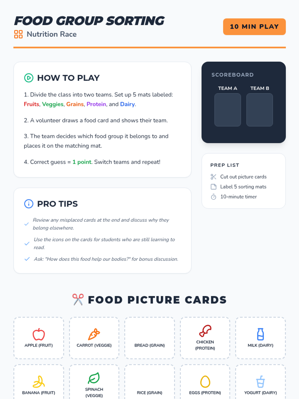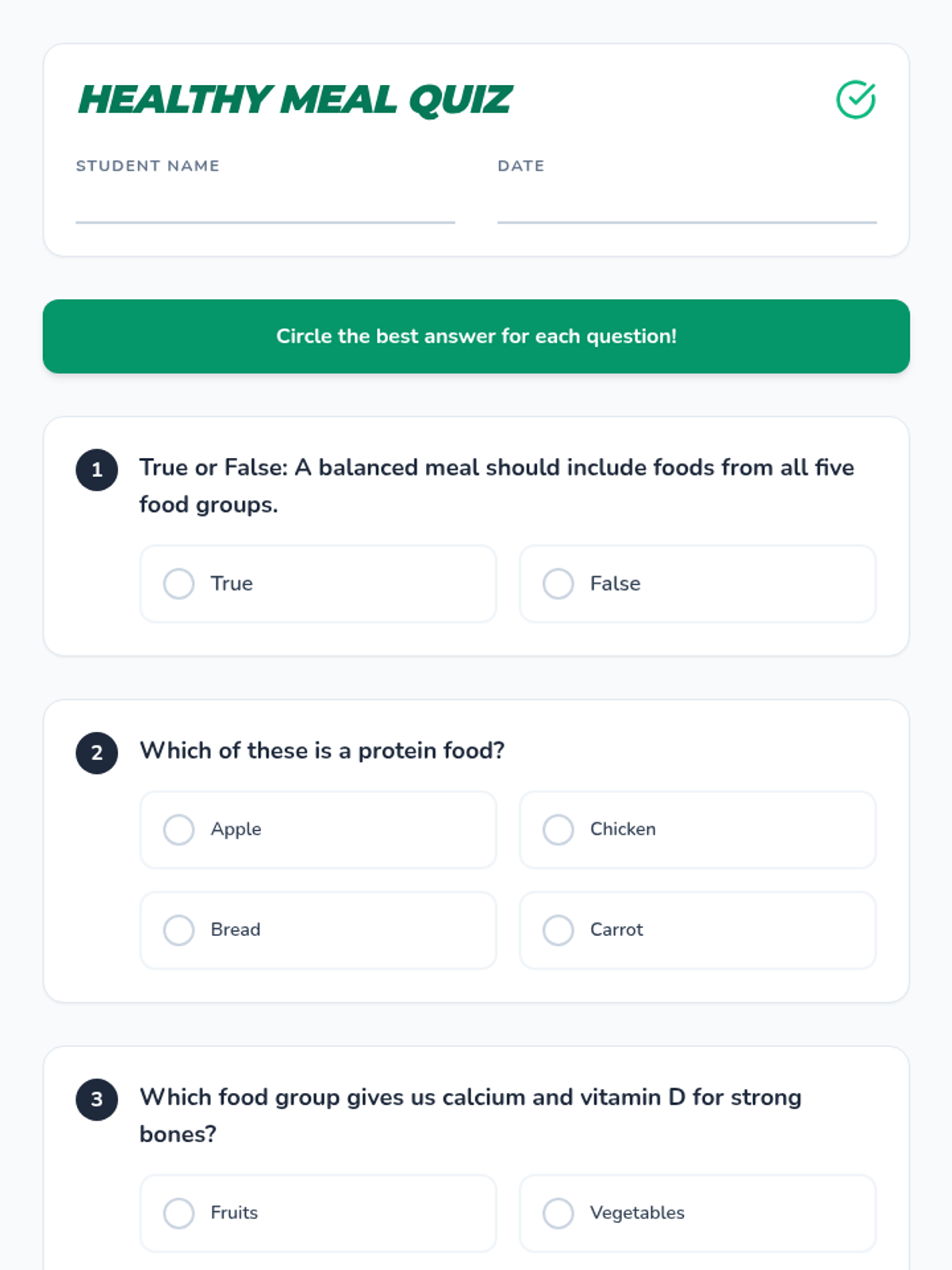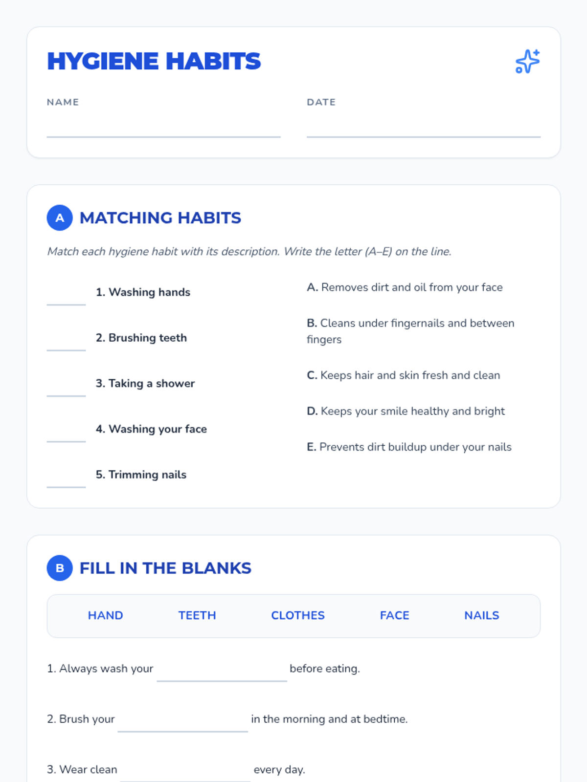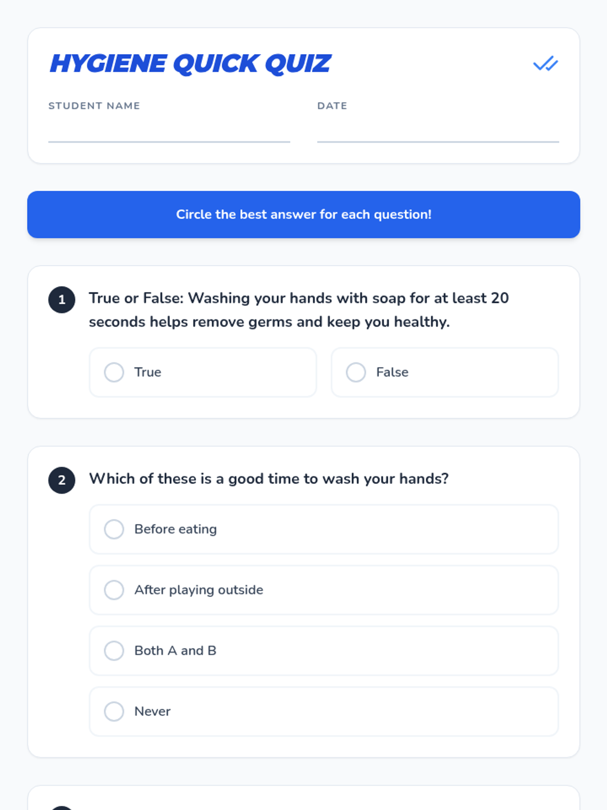 A two-session sequence designed for middle school special education students to develop essential life skills in personal hygiene and healthy meal preparation. Each session combines interactive reading, hands-on activities, and gamified learning to foster independence and confidence.