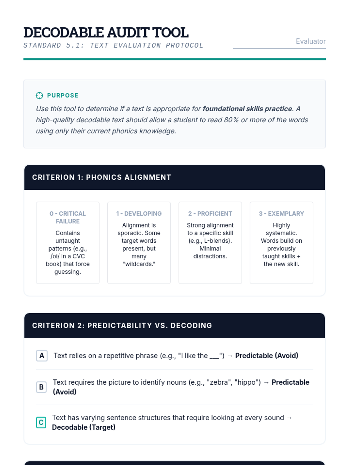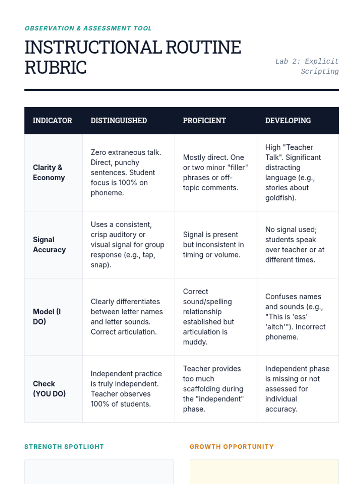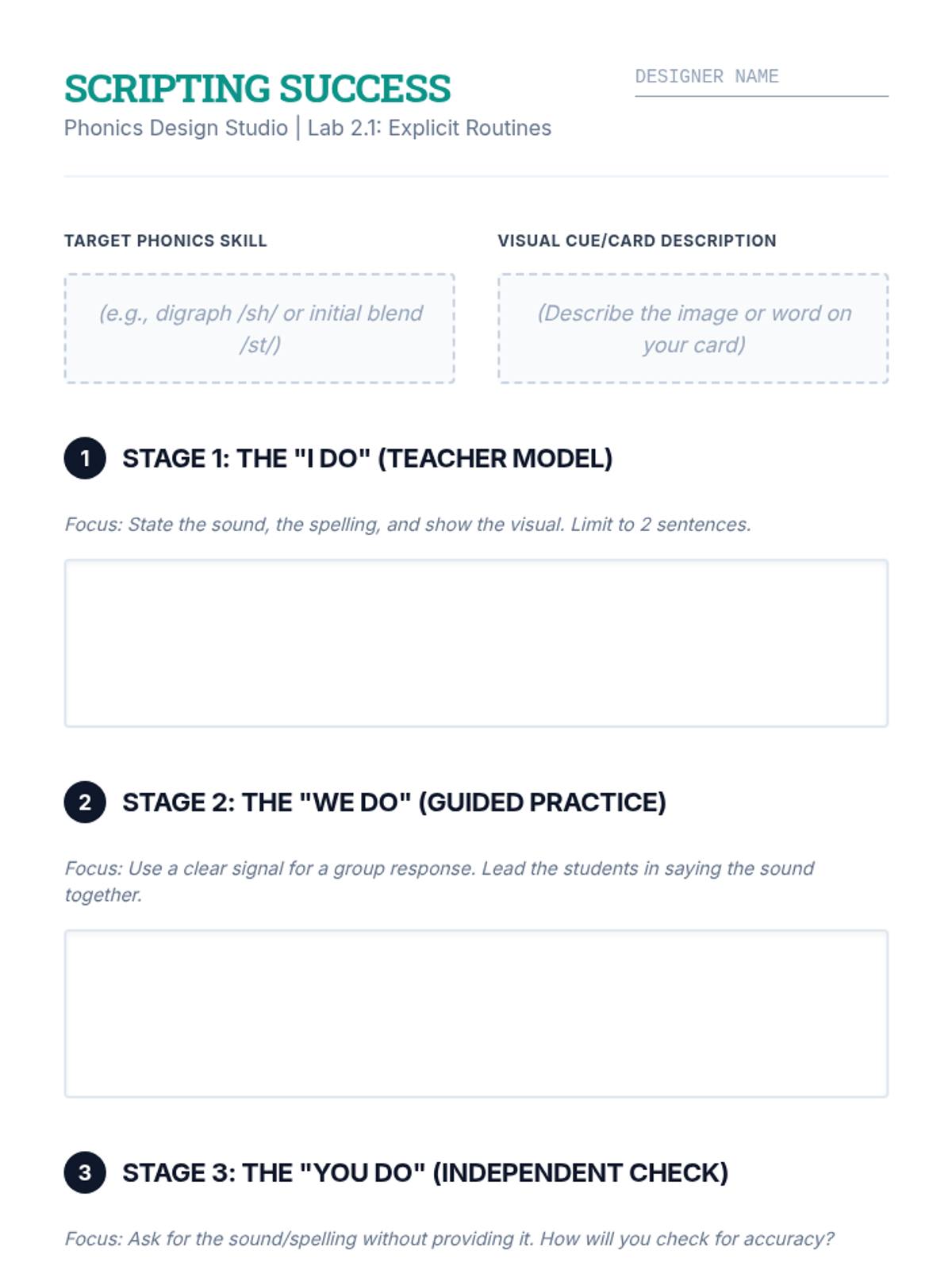 A pedagogical sequence for future educators focusing on evidence-based instructional design for phonics. Students move from curriculum sequencing to designing explicit instruction, orthographic mapping, word chaining, and text selection for blends and digraphs.