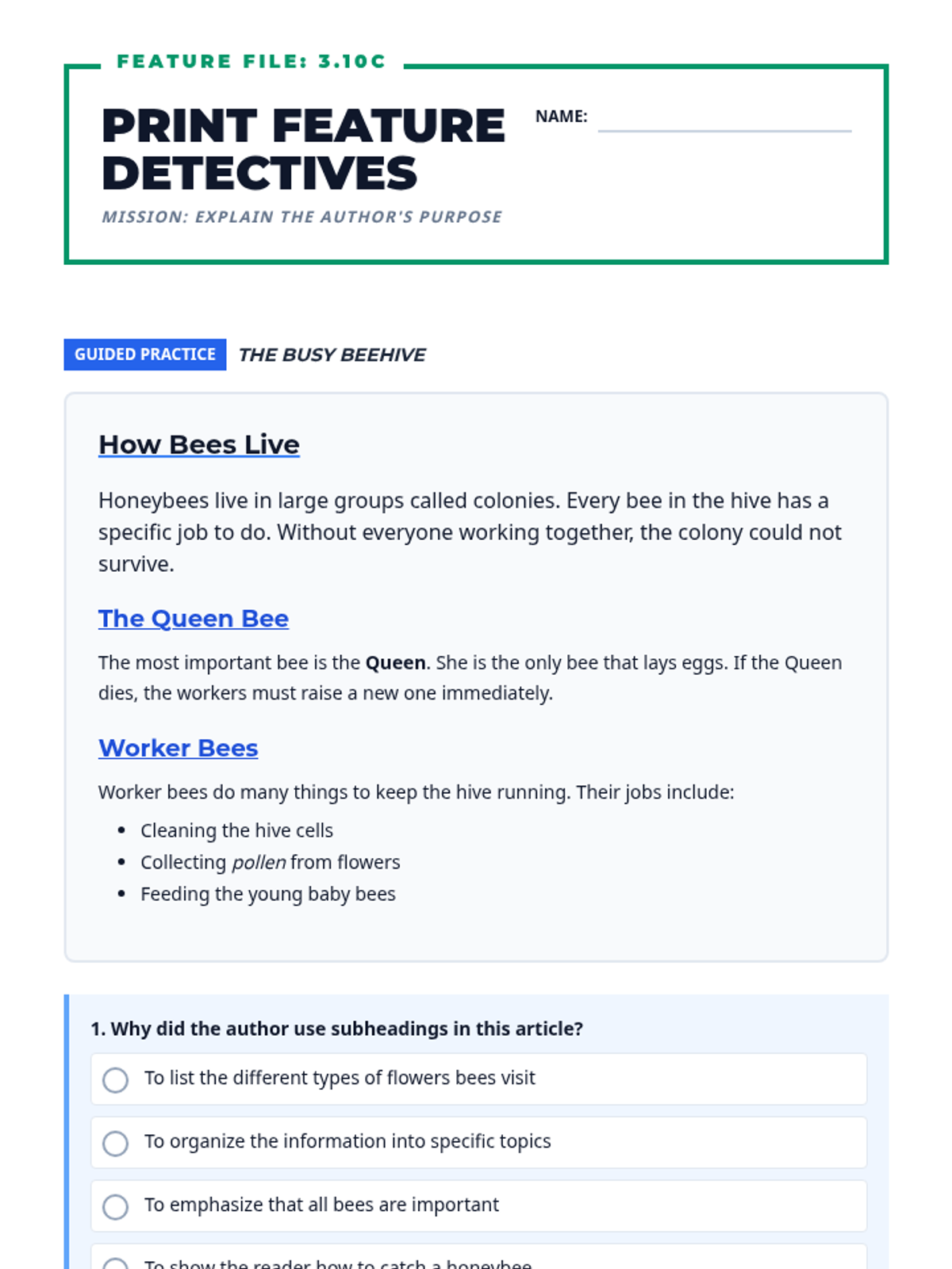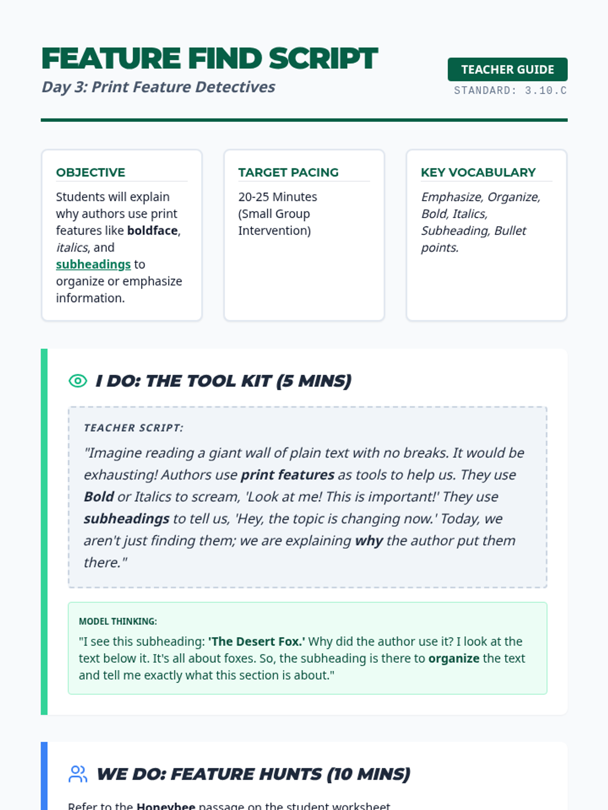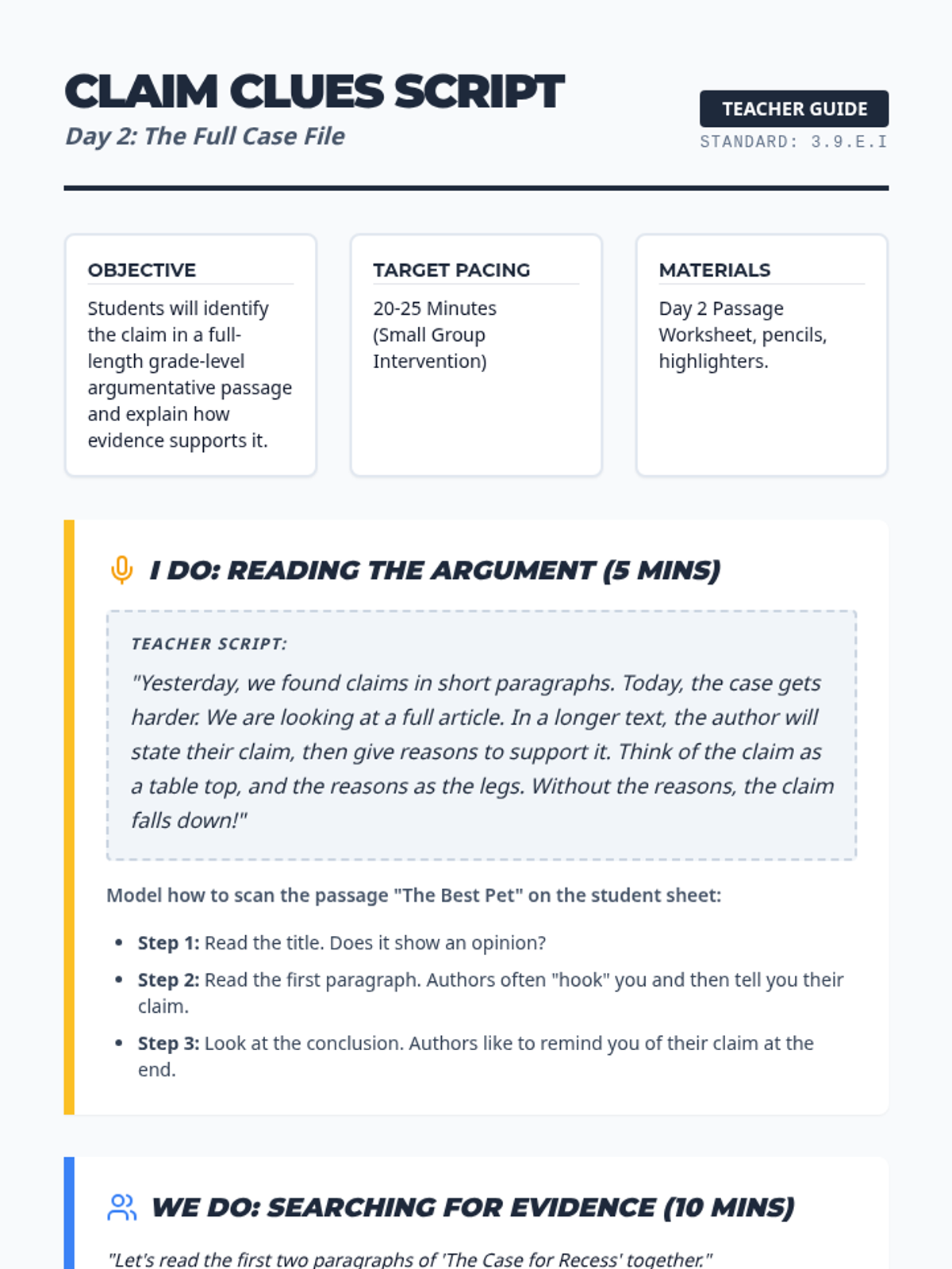 A comprehensive 5-day intervention sequence for 3rd grade literacy focusing on claim identification (3.9Ei) and print/graphic feature analysis (3.10C) with rigorous, STAAR-aligned materials.