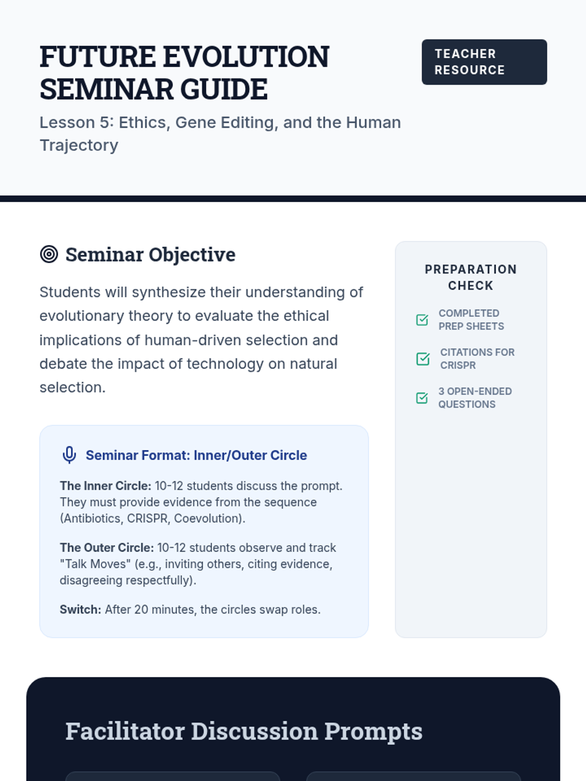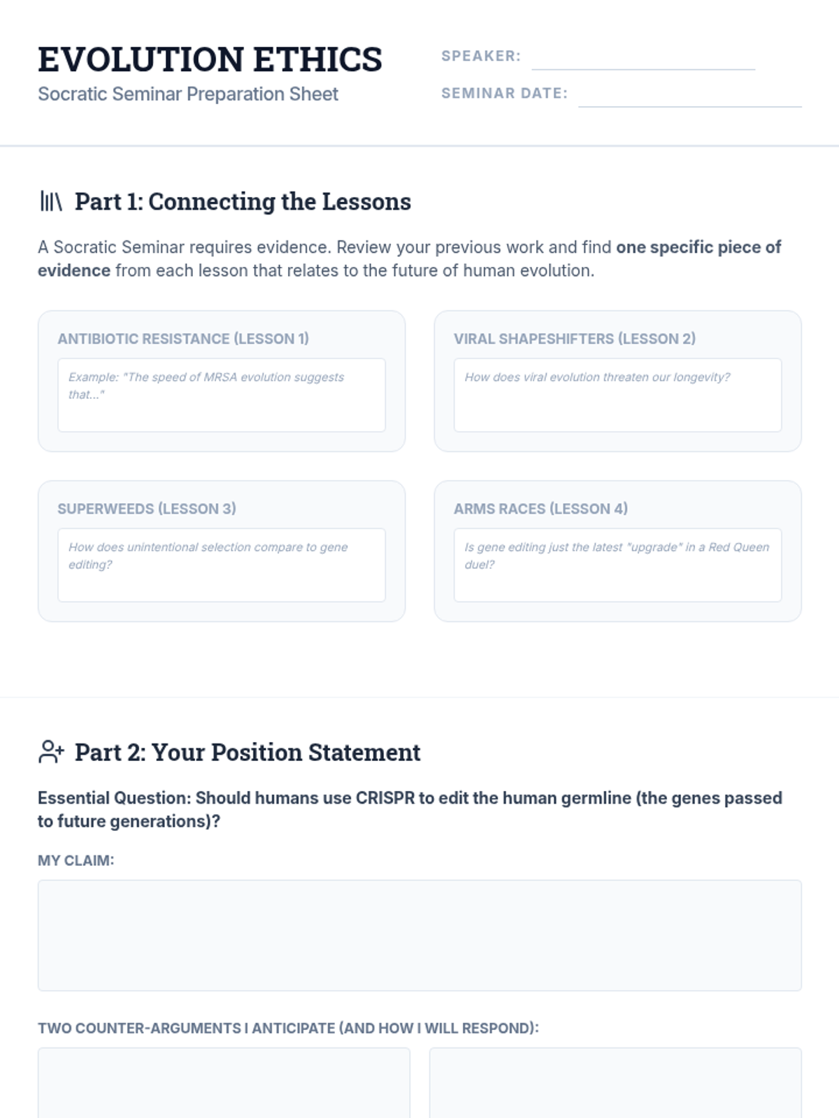 A high school biology sequence exploring how evolutionary principles apply to modern medical and ecological challenges, including antibiotic resistance, viral evolution, and human-driven selection.