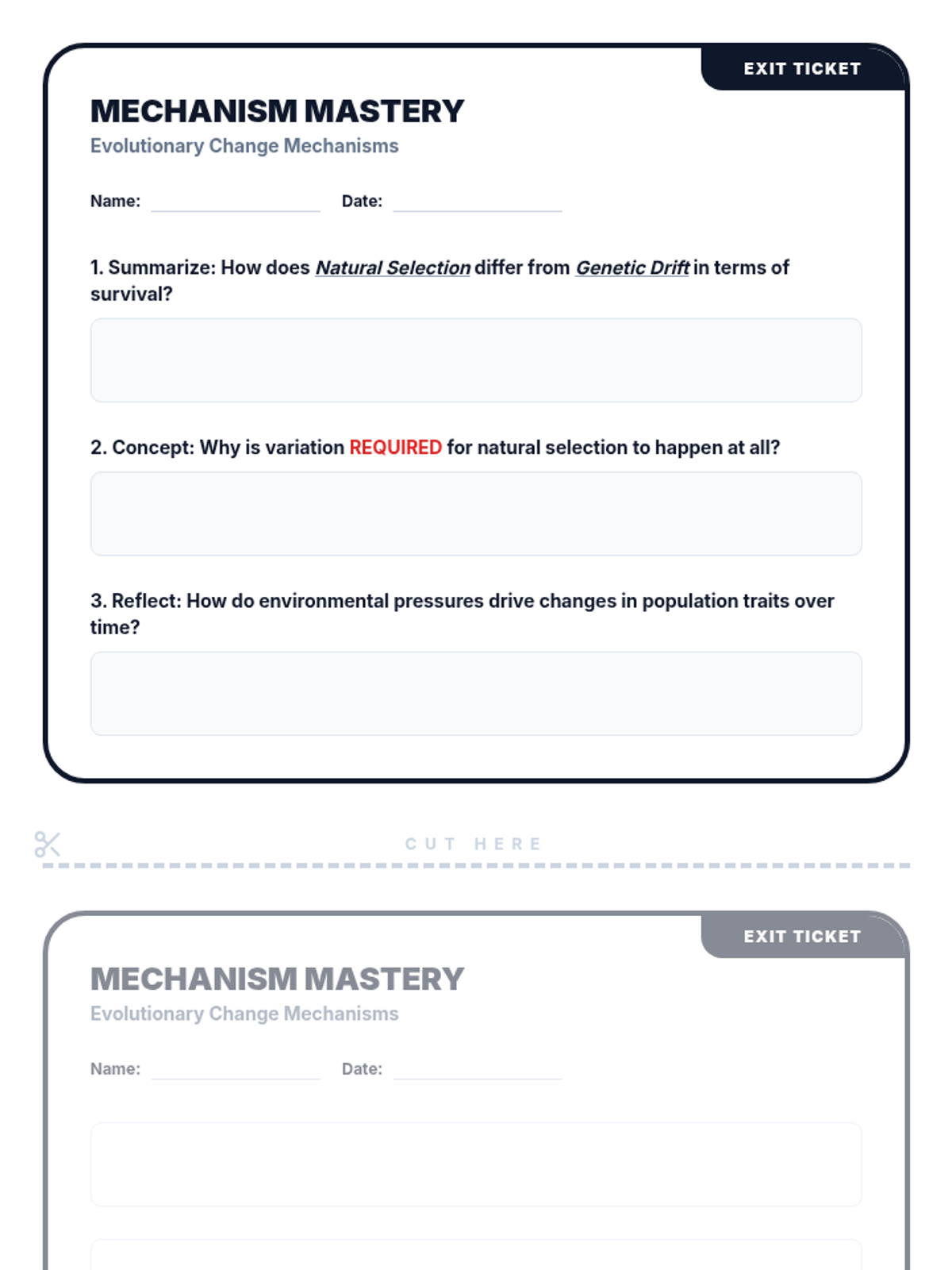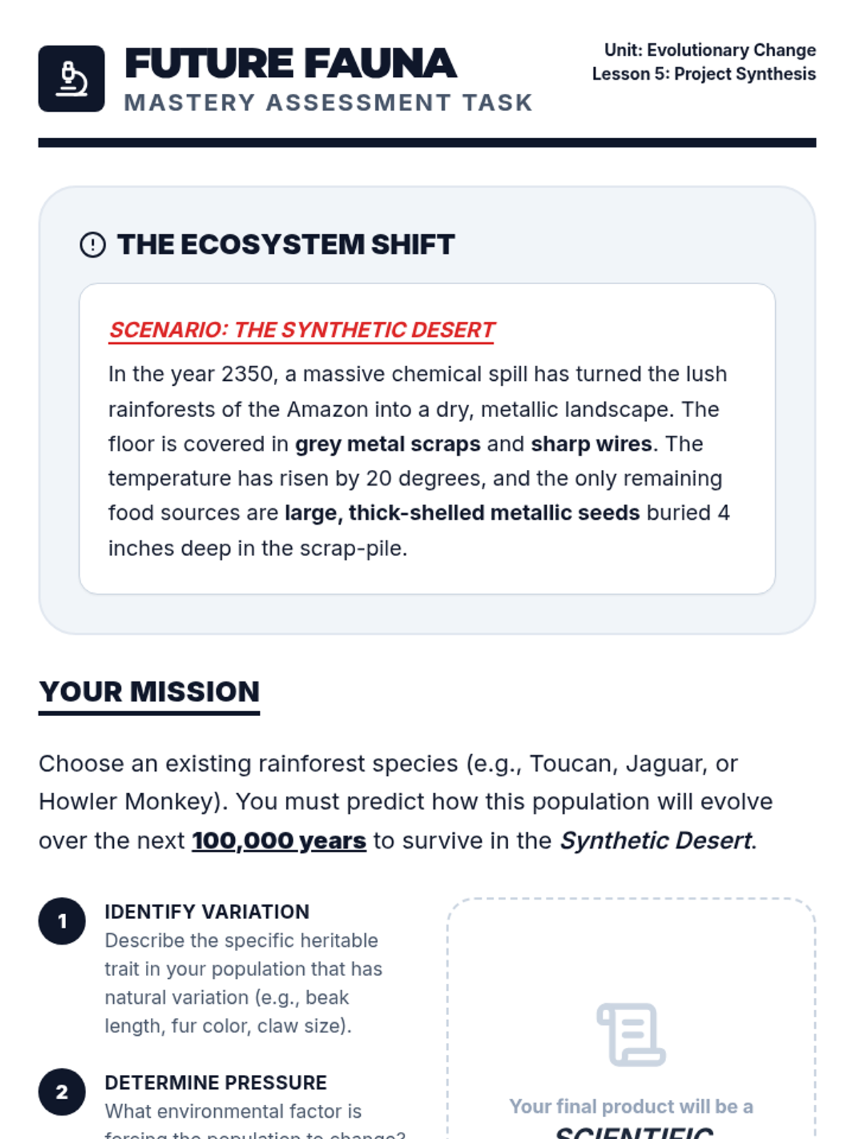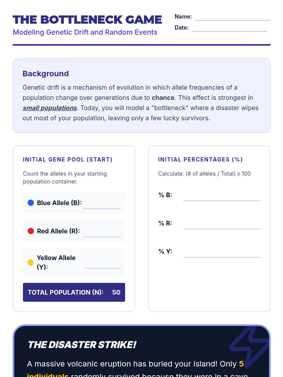 Students investigate the fundamental mechanisms driving biological change: natural selection, genetic drift, and gene flow. Through interactive simulations and data analysis, learners explore how environmental pressures influence allele frequencies in populations over time.