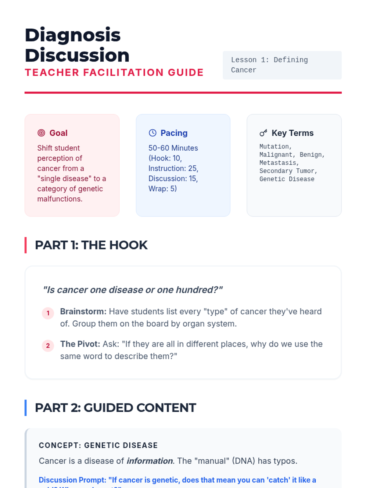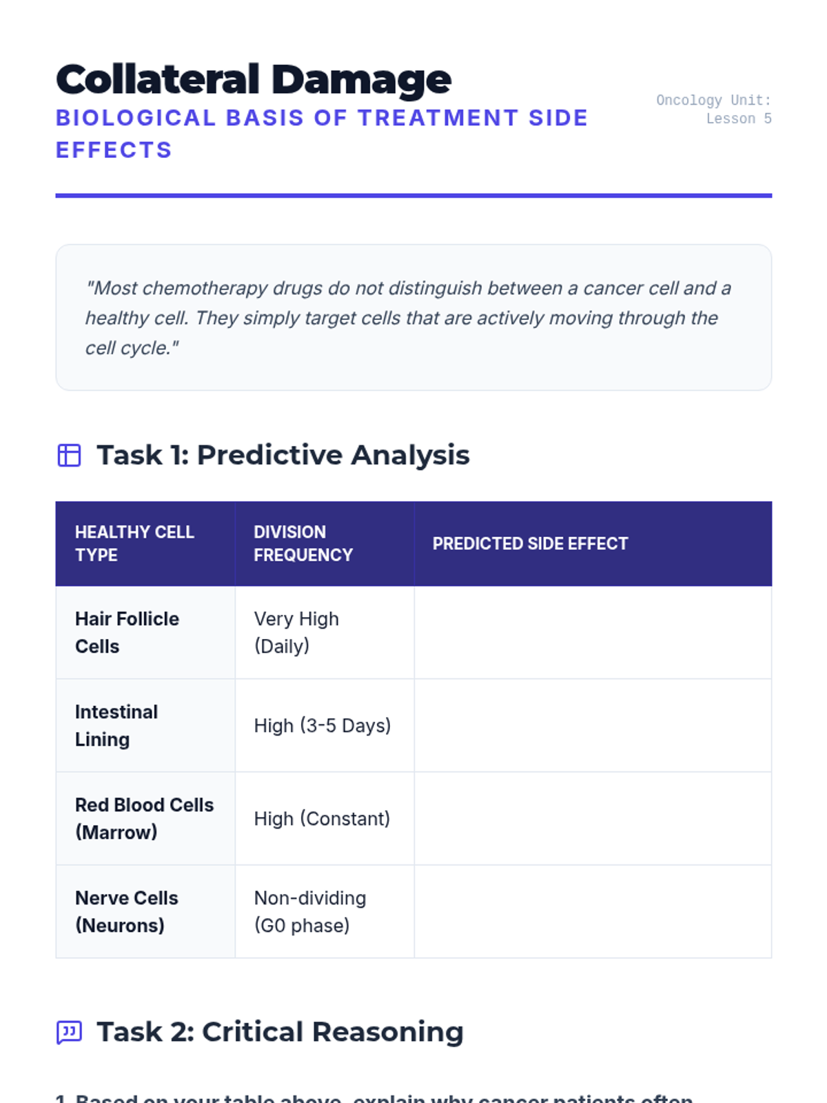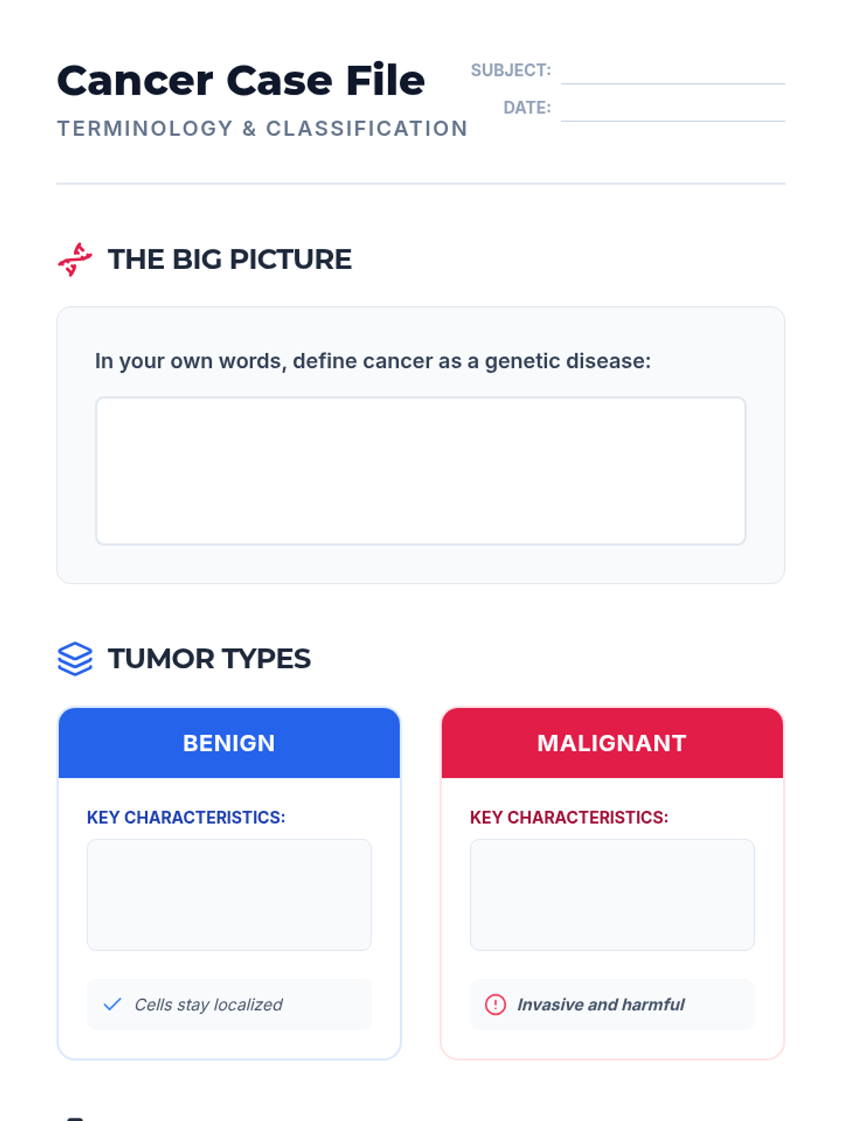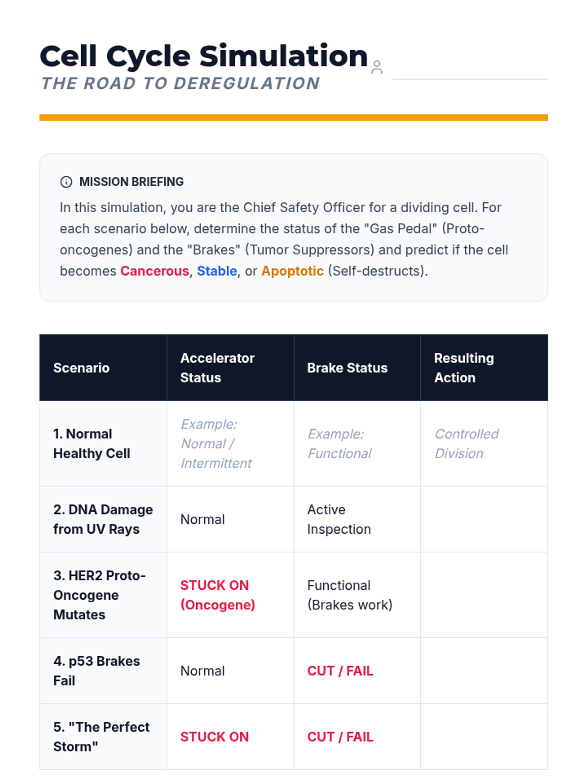 This capstone sequence applies knowledge of the cell cycle to the real-world problem of cancer. Students investigate how mutations in regulatory genes (oncogenes and tumor suppressors) lead to uncontrolled growth, moving from genetic causes to tumor formation and modern treatment mechanisms.