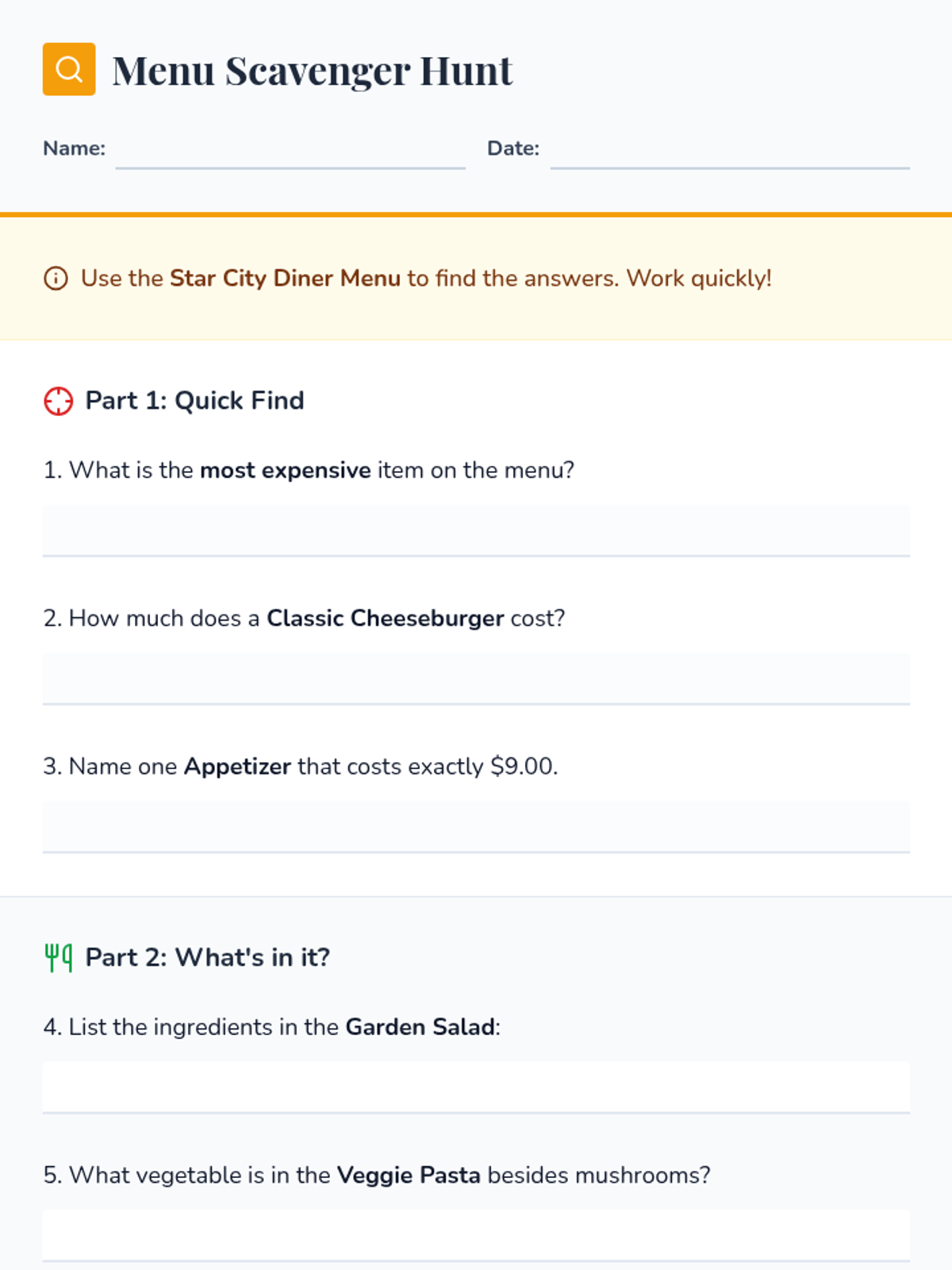 A comprehensive 5-lesson sequence designed for 7th Grade ESL students to master skimming and scanning techniques. Students progress from basic differentiation of reading styles to high-speed information retrieval and synthesis, building the confidence and fluency needed for timed academic assessments.