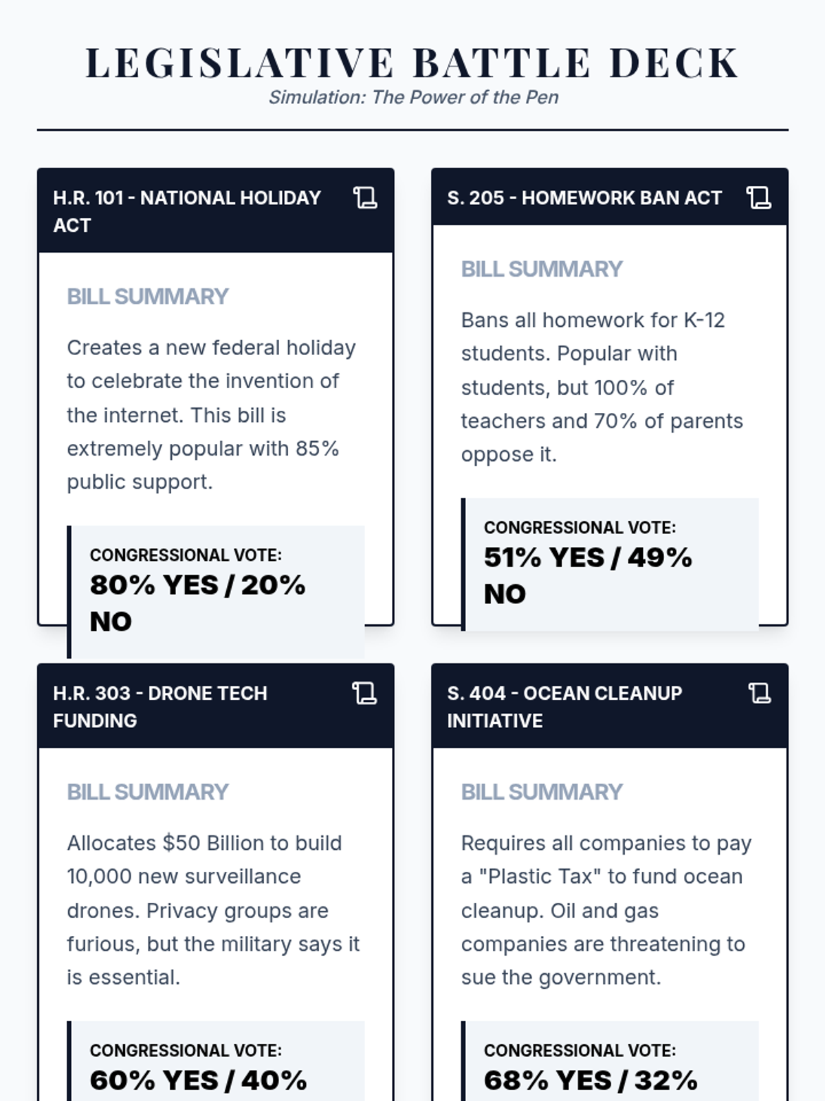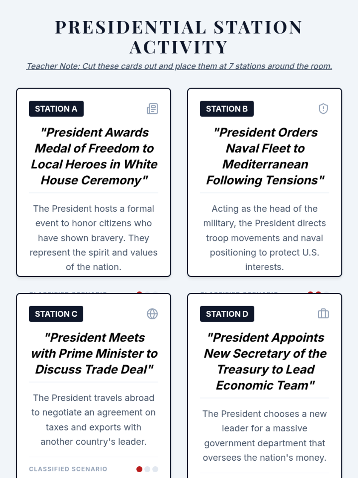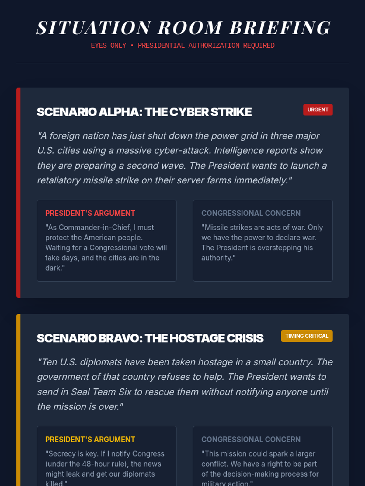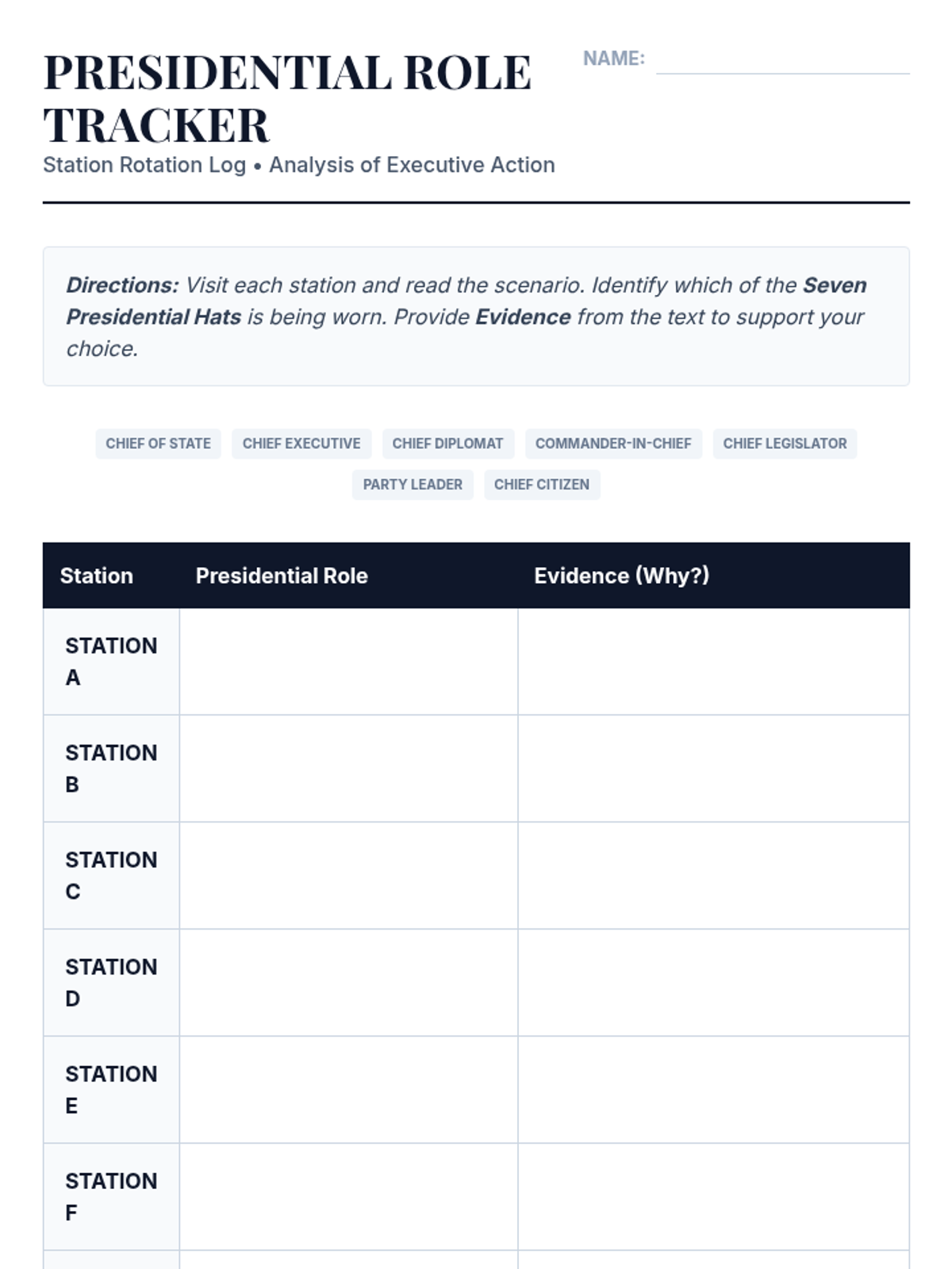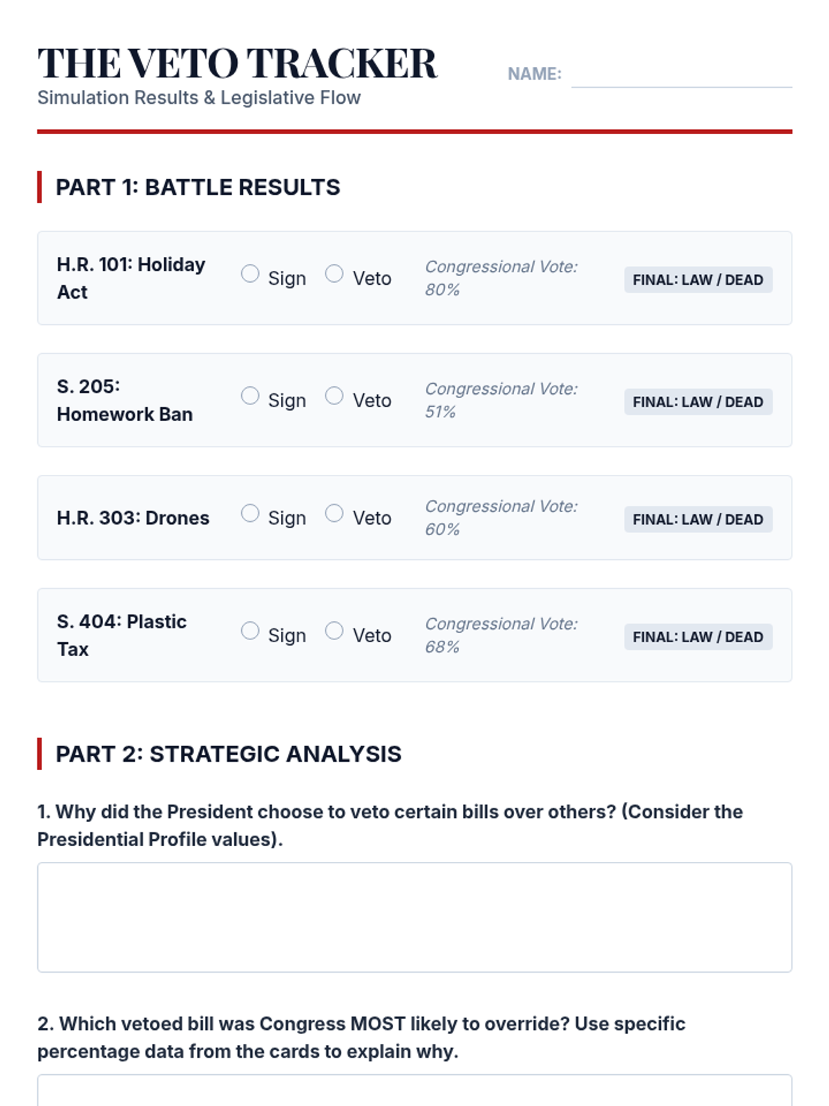 A comprehensive 5-lesson unit exploring Article II of the Constitution, the various roles of the President, the veto process, executive orders, and the tension between executive and legislative war powers. Students move from textual analysis to historical case studies and modern simulations to evaluate the balance of power in the executive branch.