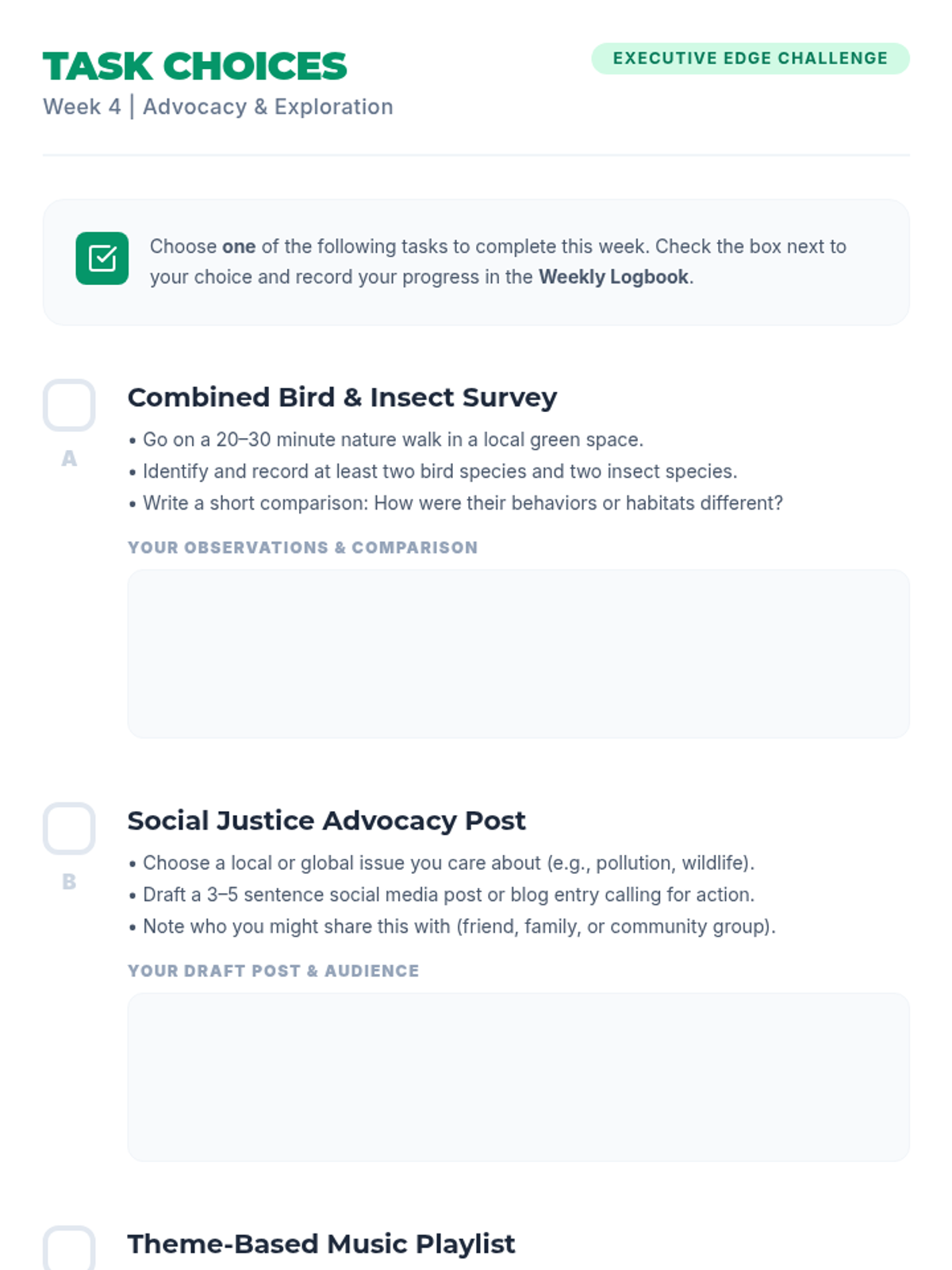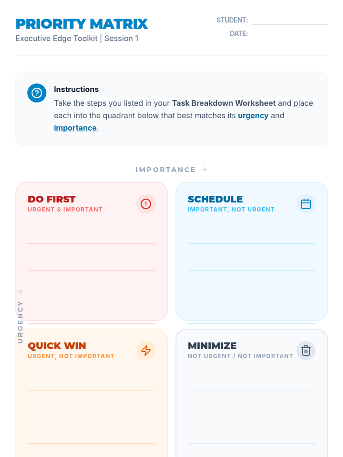 A comprehensive 11-lesson module (Intro, 9 skill weeks, and Review) designed for 6th-12th grade students to master executive functioning skills through a neuroscience-informed, "Command Center" framework. Each lesson balances theoretical understanding of the prefrontal cortex with practical, high-level strategies for academic and personal success.