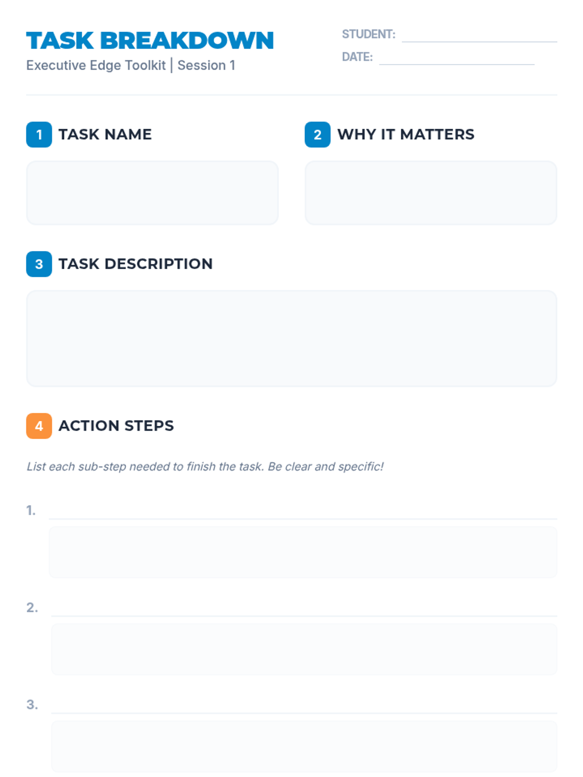 A comprehensive sequence designed to build executive functioning skills in high school students, focusing on organization, planning, and task initiation through practical tools and self-monitoring strategies.