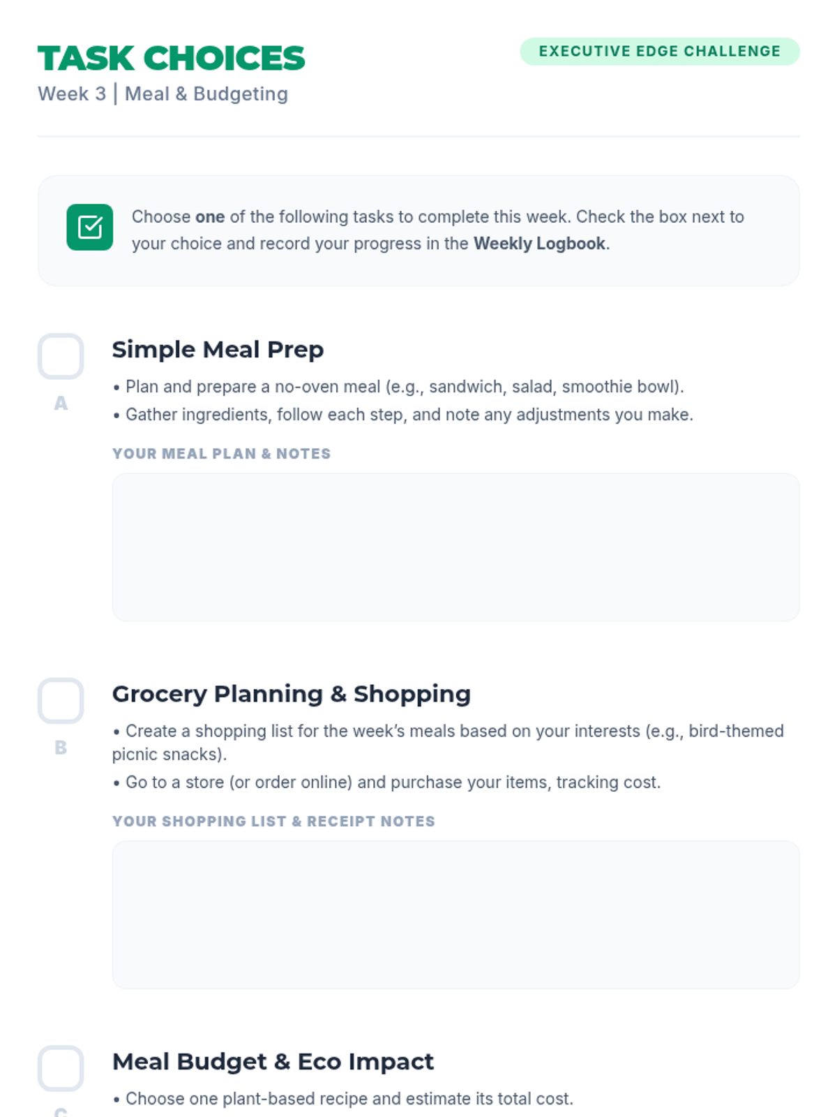 A full-month curriculum focused on developing independence through real-world simulations, role-playing, and practical application of functional life skills.