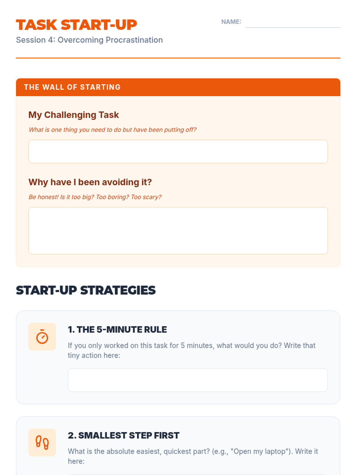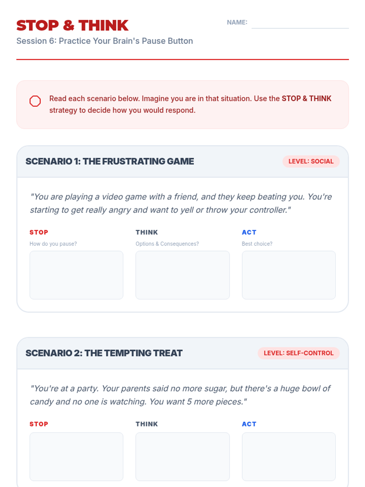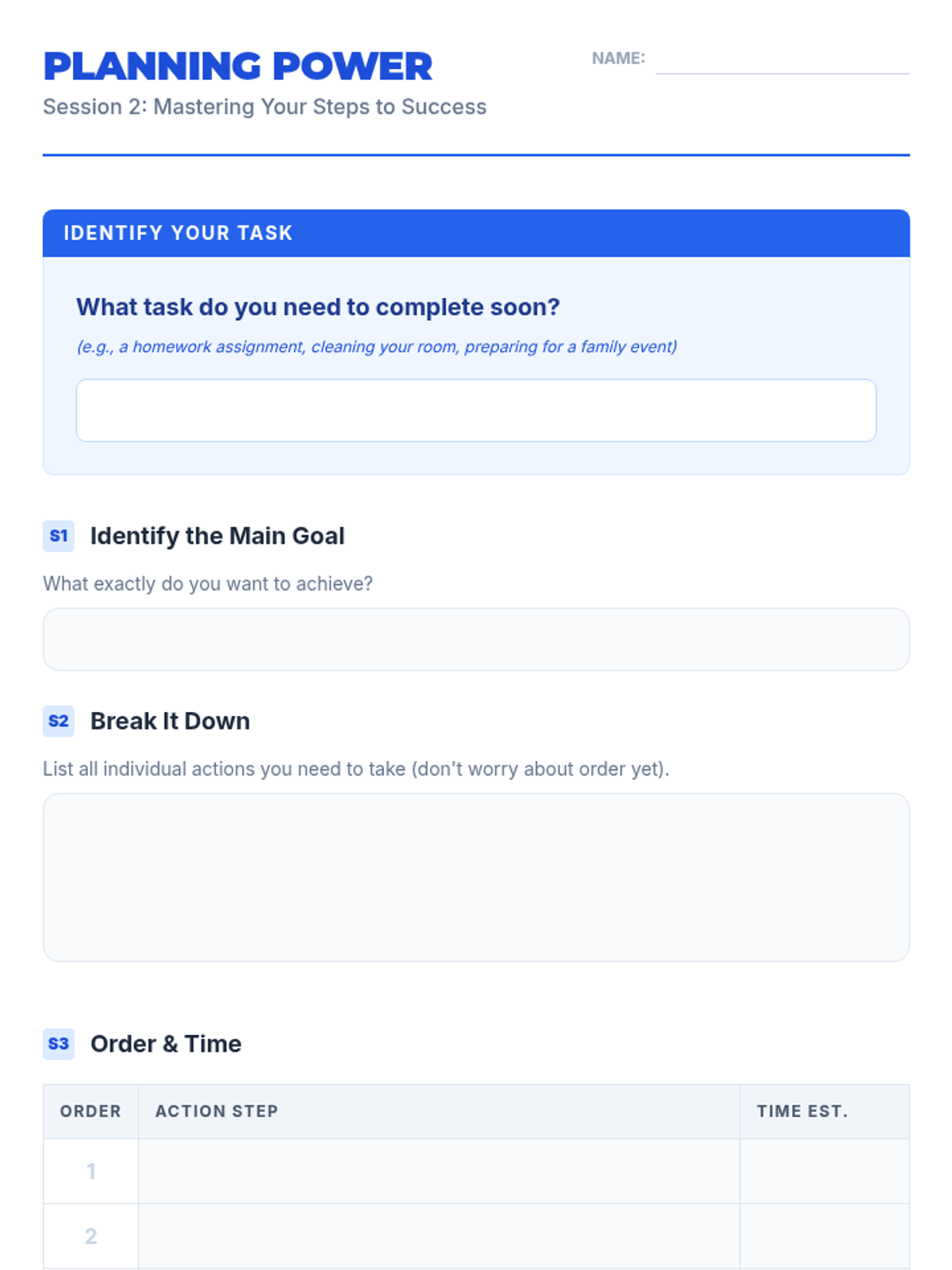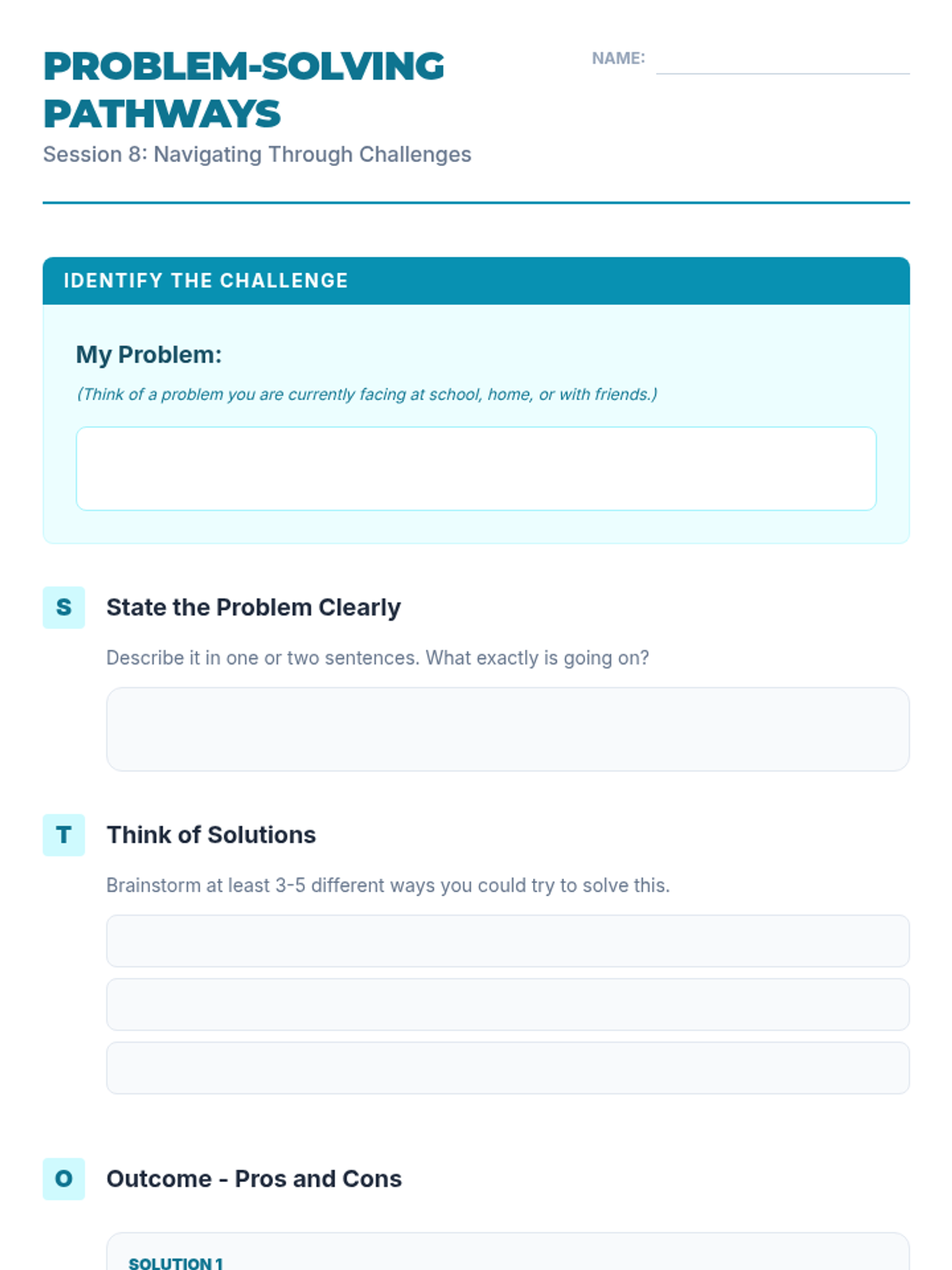 An 8-session executive functioning group for middle schoolers covering planning, organization, and time management. Each session is designed for a 20-minute small group format, providing practical tools and reflective practices.