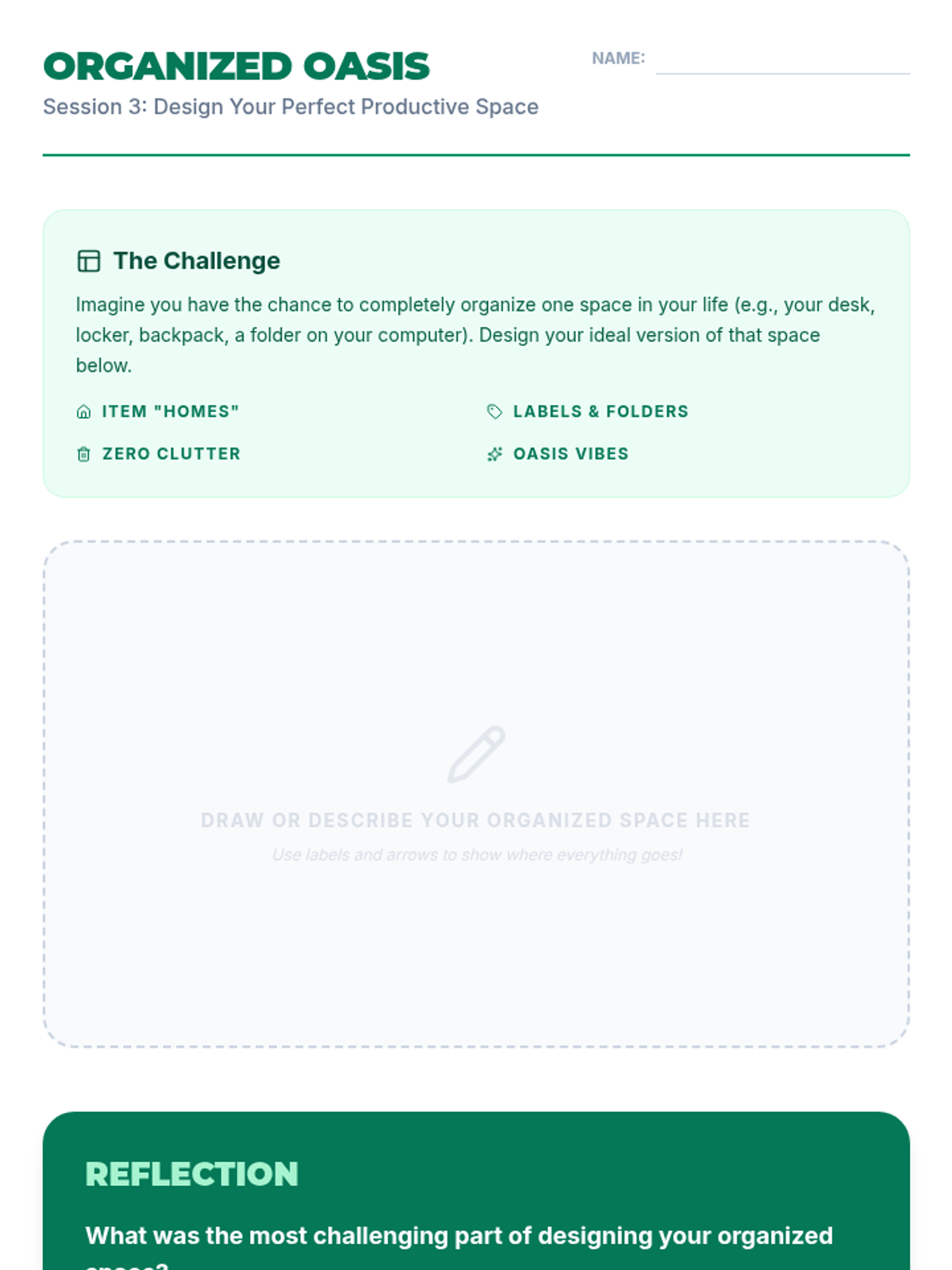 A 6-lesson sequence for middle schoolers to master executive functioning skills, focusing on task management, physical and digital organization, and building sustainable routines.