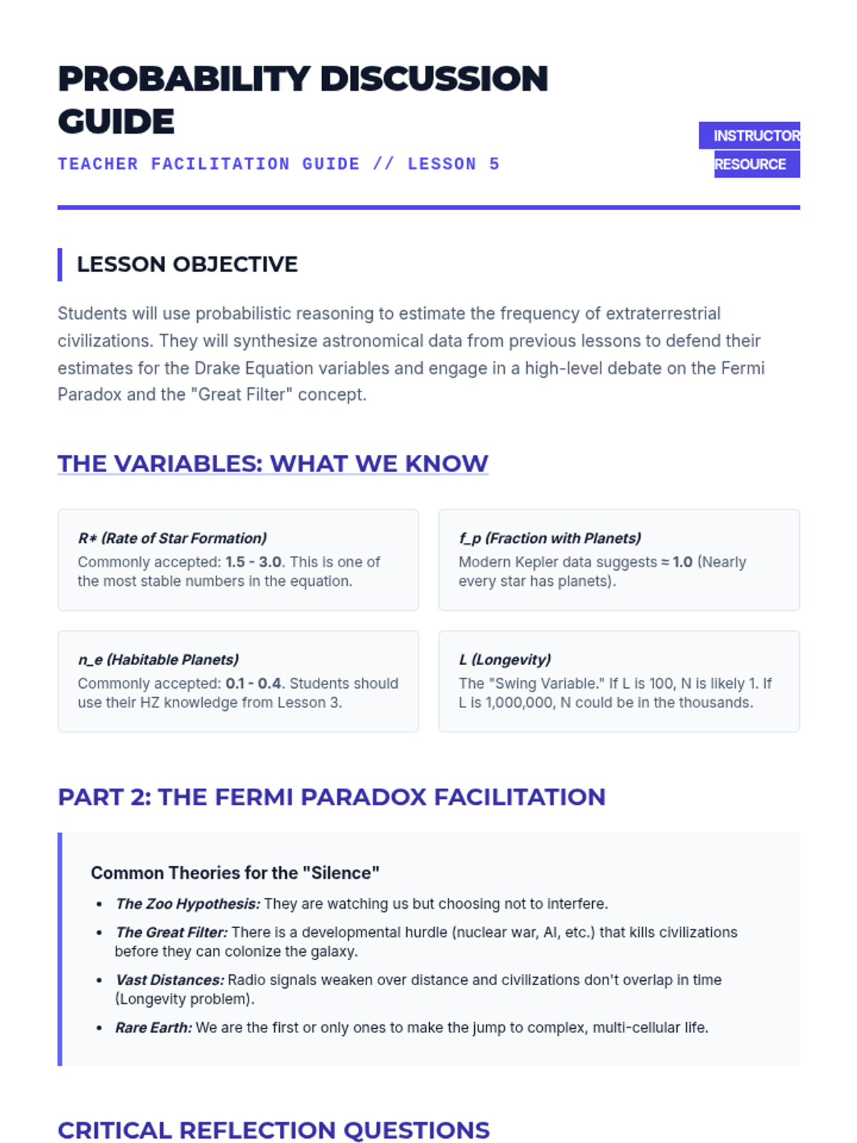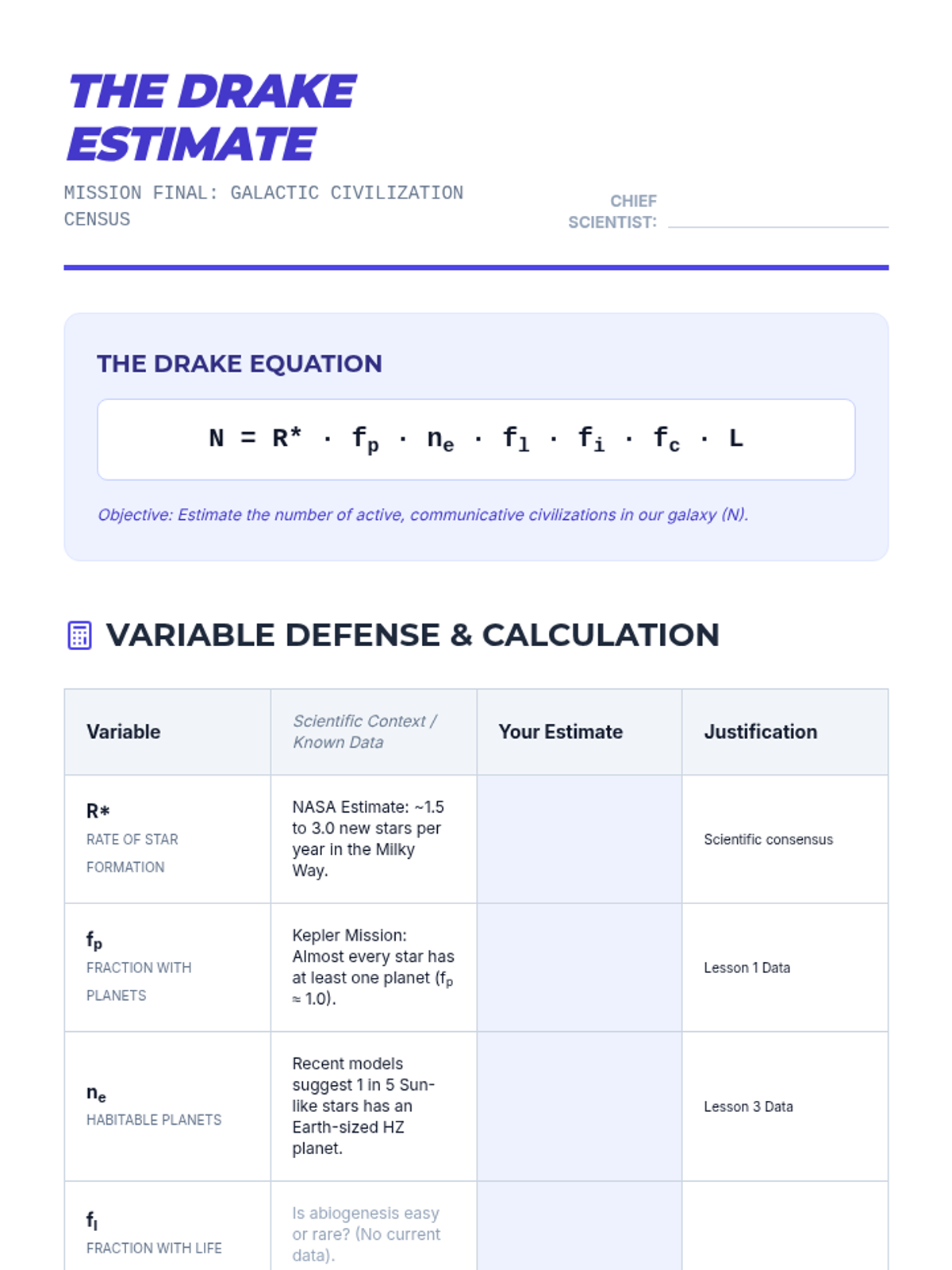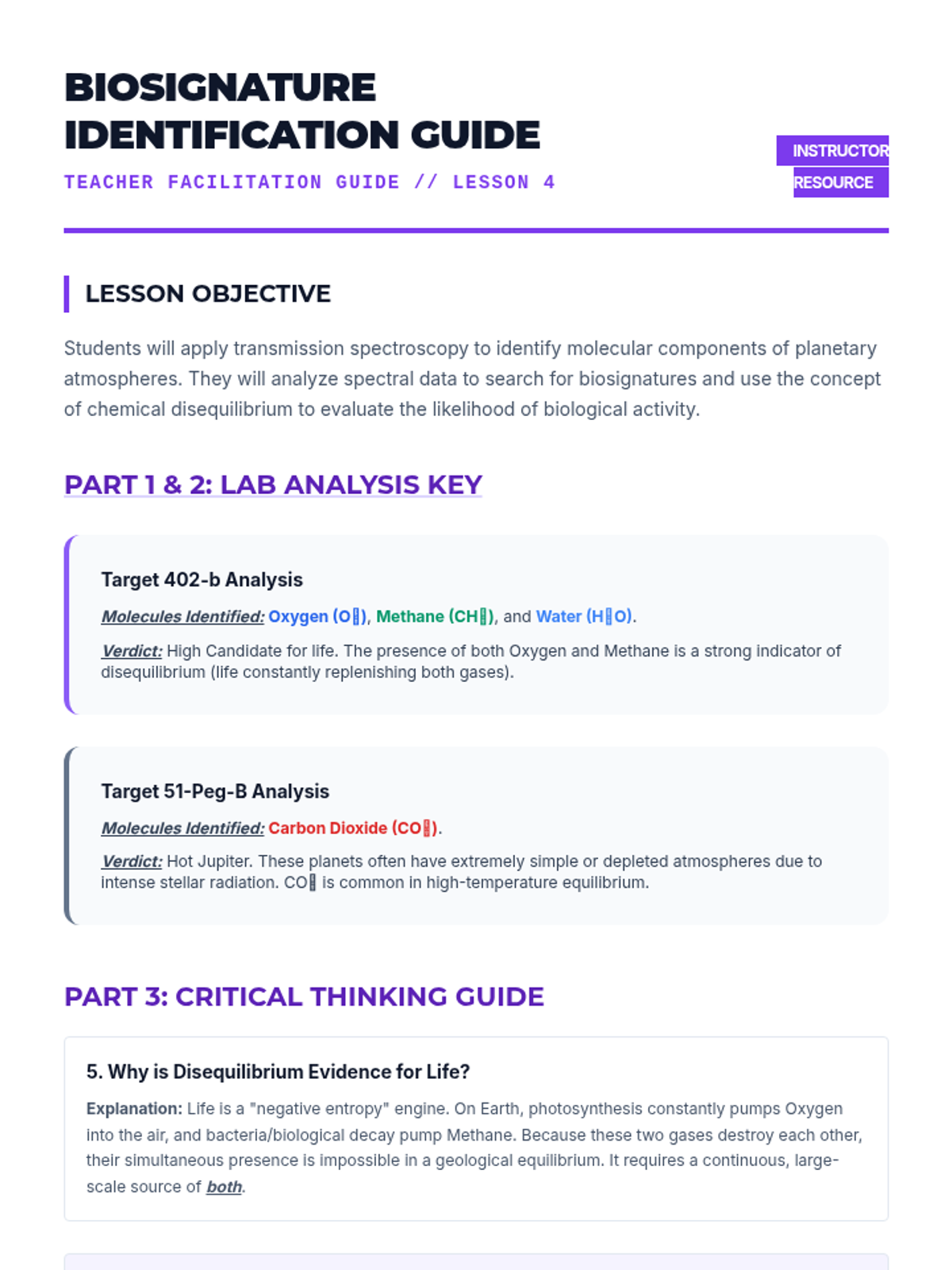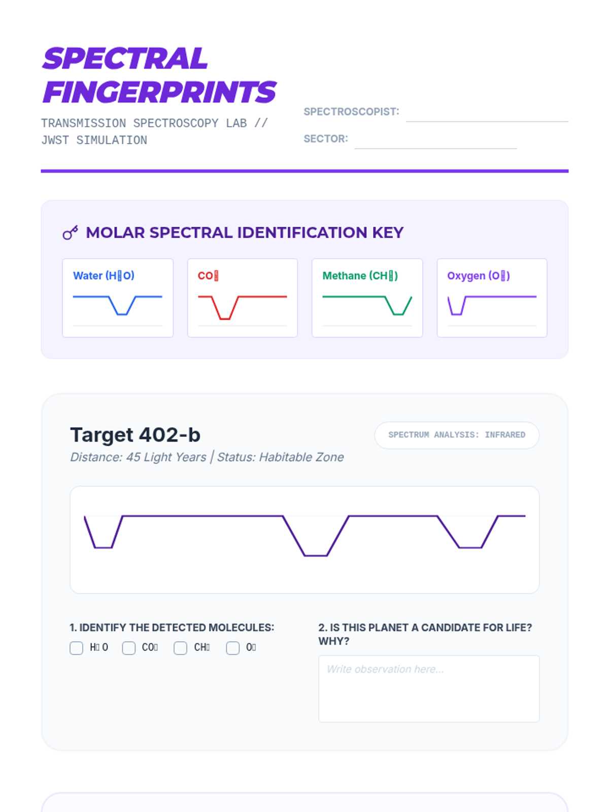 This high-level astronomy sequence for 12th-grade students explores the methods used to detect exoplanets and evaluate their potential for life. Moving from transit photometry and radial velocity to atmospheric spectroscopy and probabilistic math, students analyze real-world data to determine the habitability of distant worlds.