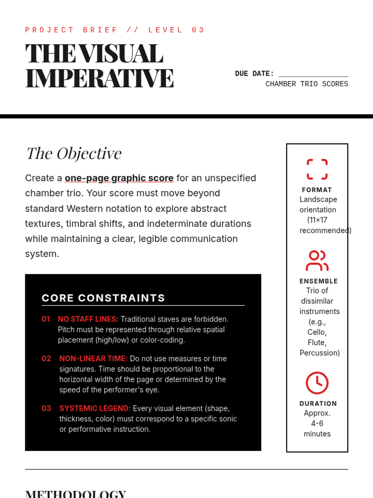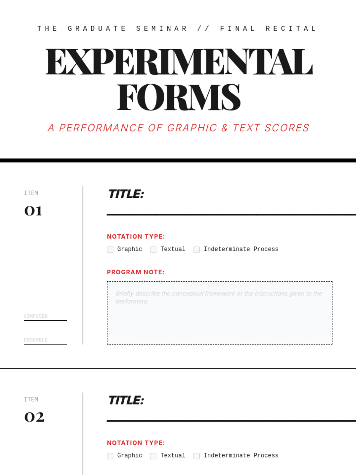 This graduate-level sequence explores the avant-garde frontiers of music composition, focusing on indeterminacy, extended techniques, and graphic notation to redefine the composer-performer relationship.