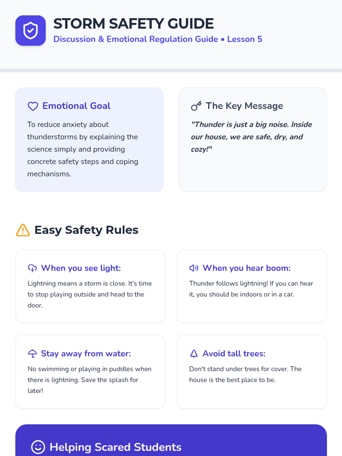 This Pre-K ELA sequence uses read-along informational texts to explore weather patterns and seasonal changes. Students develop observation skills and functional comprehension by connecting atmospheric conditions to daily life, clothing choices, and activities.