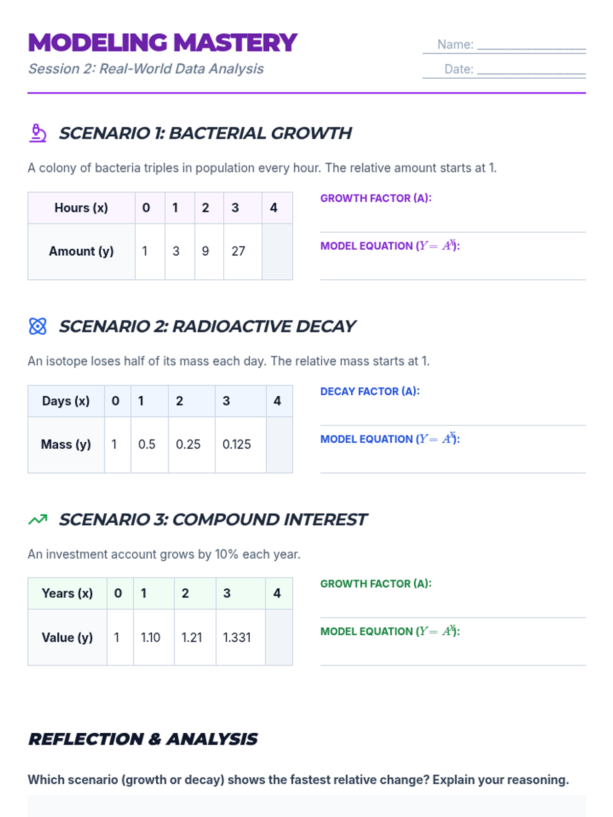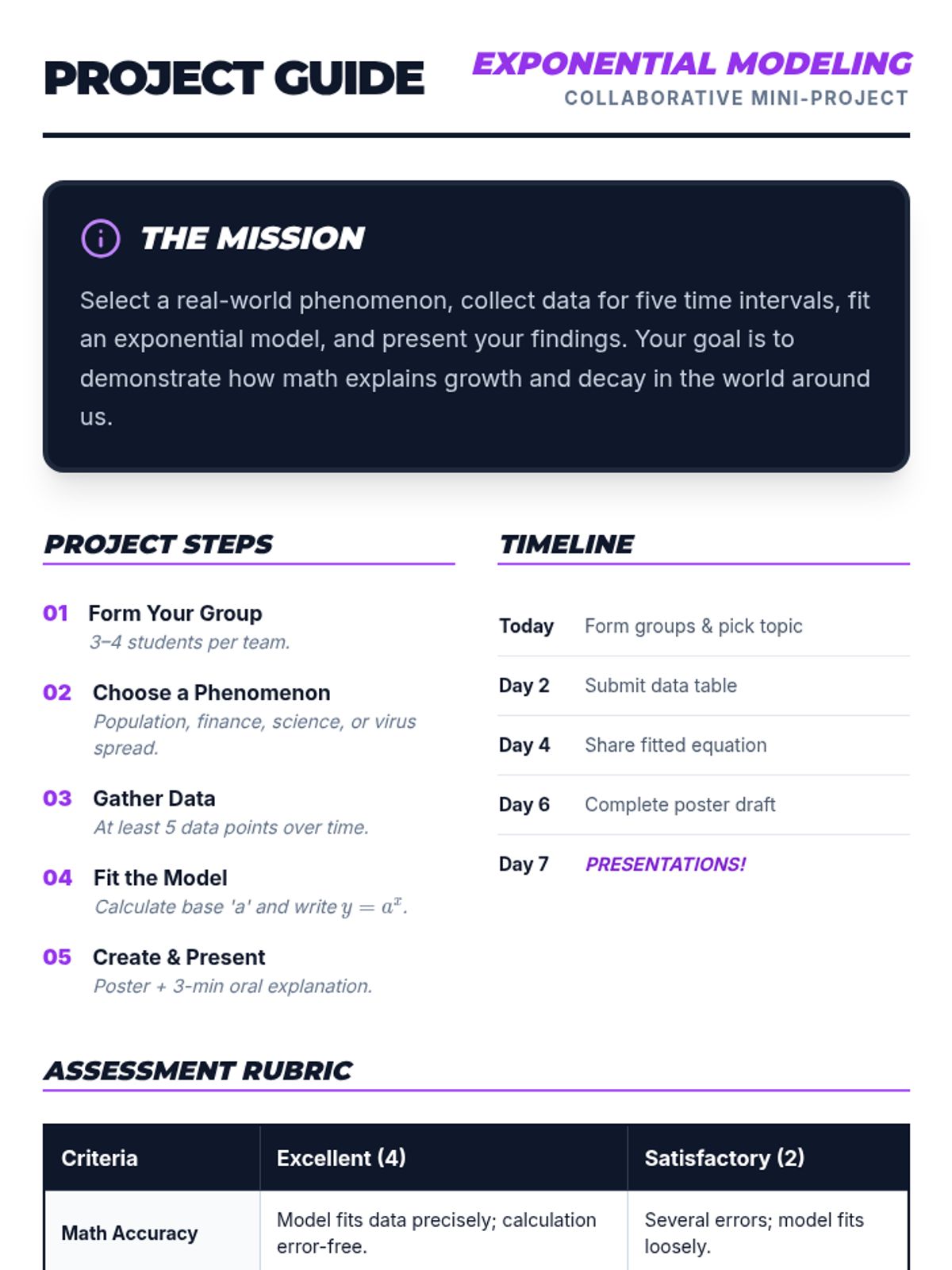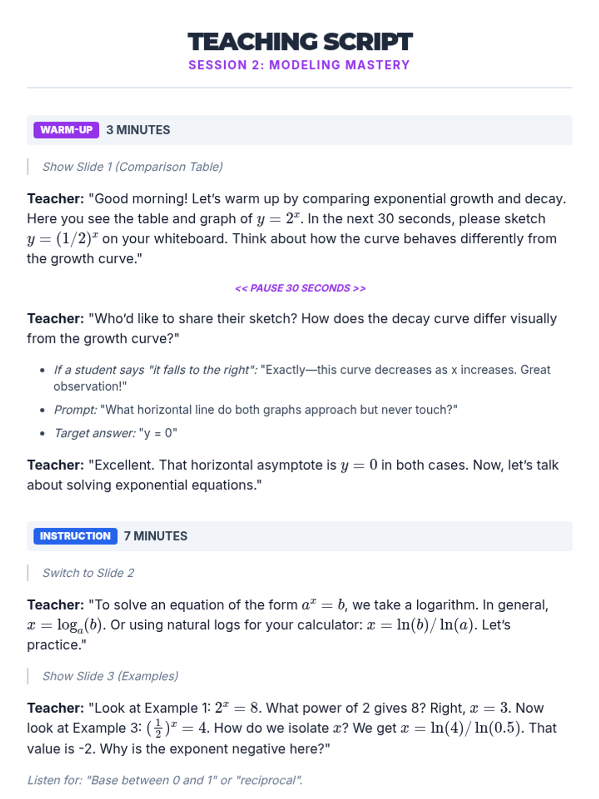 A two-session introductory exploration of exponential functions for 11th grade students. Students discover characteristics, real-world applications, and graphing techniques through interactive games and collaborative modeling.