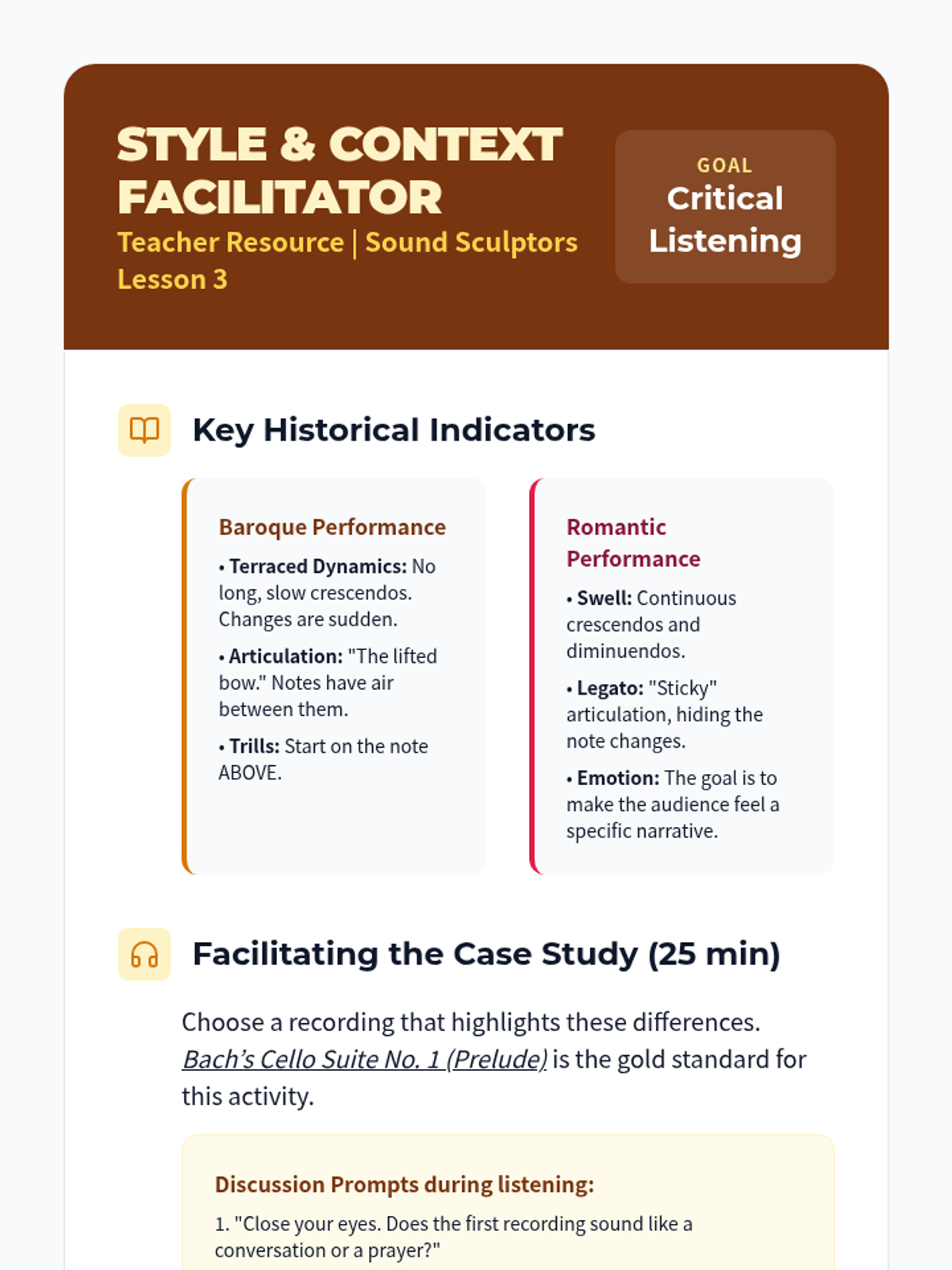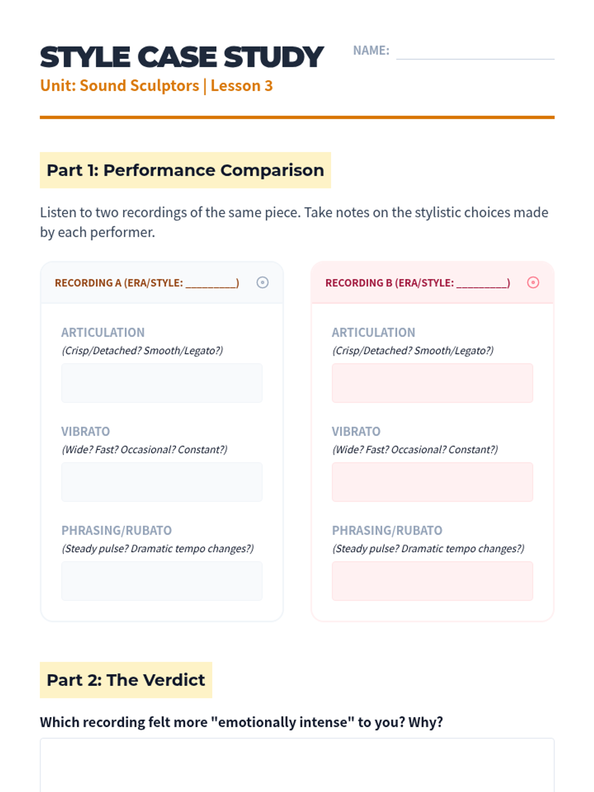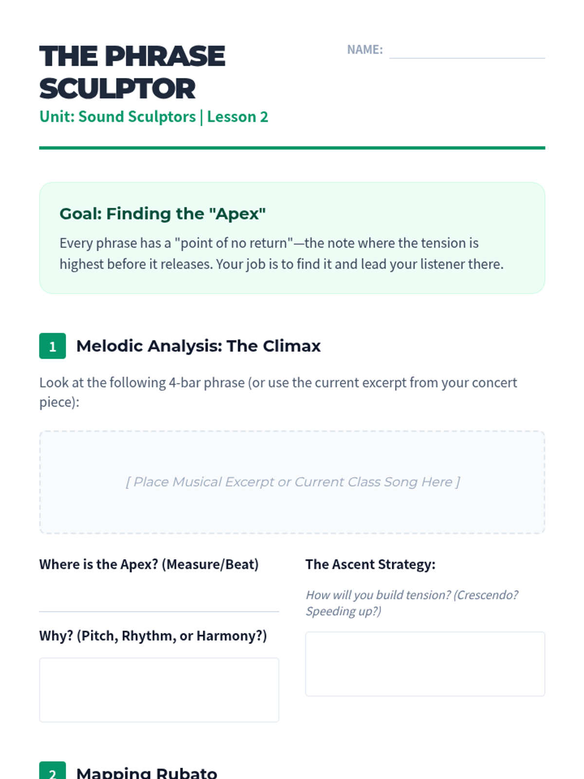 An inquiry-based unit for 8th-grade instrumentalists exploring musical expression, dynamics, phrasing, and historical style to move beyond technical accuracy toward artistic interpretation.