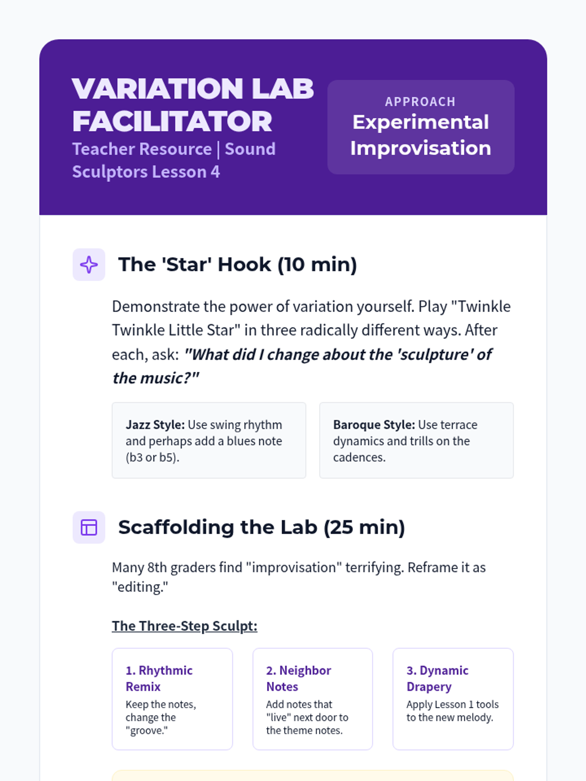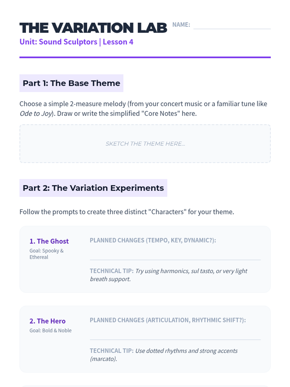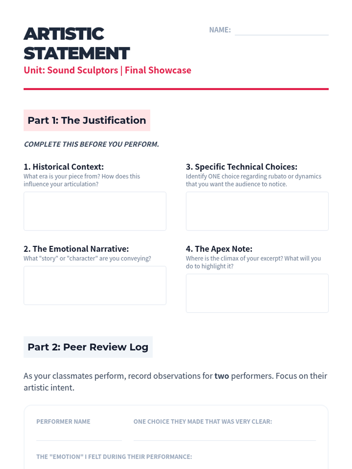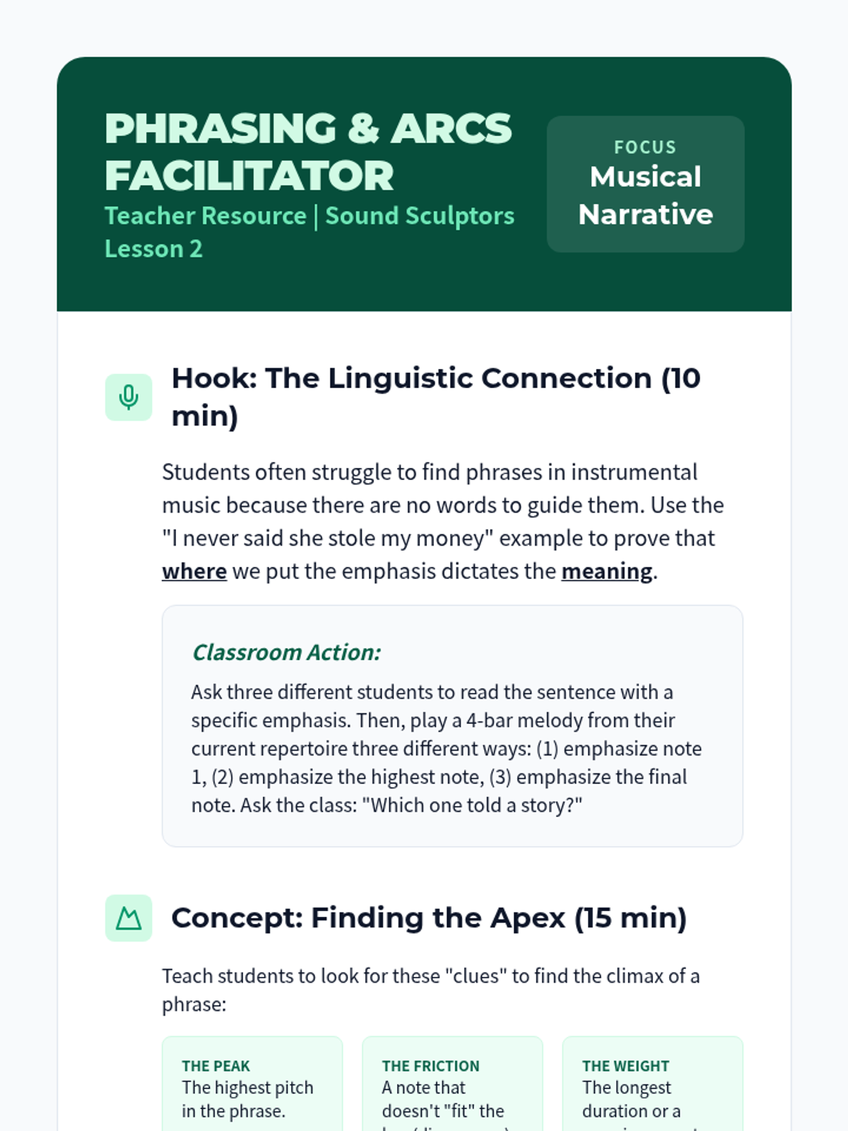 An inquiry-based unit for 8th-grade instrumentalists exploring musical expression, dynamics, phrasing, and historical style to move beyond technical accuracy toward artistic interpretation.
