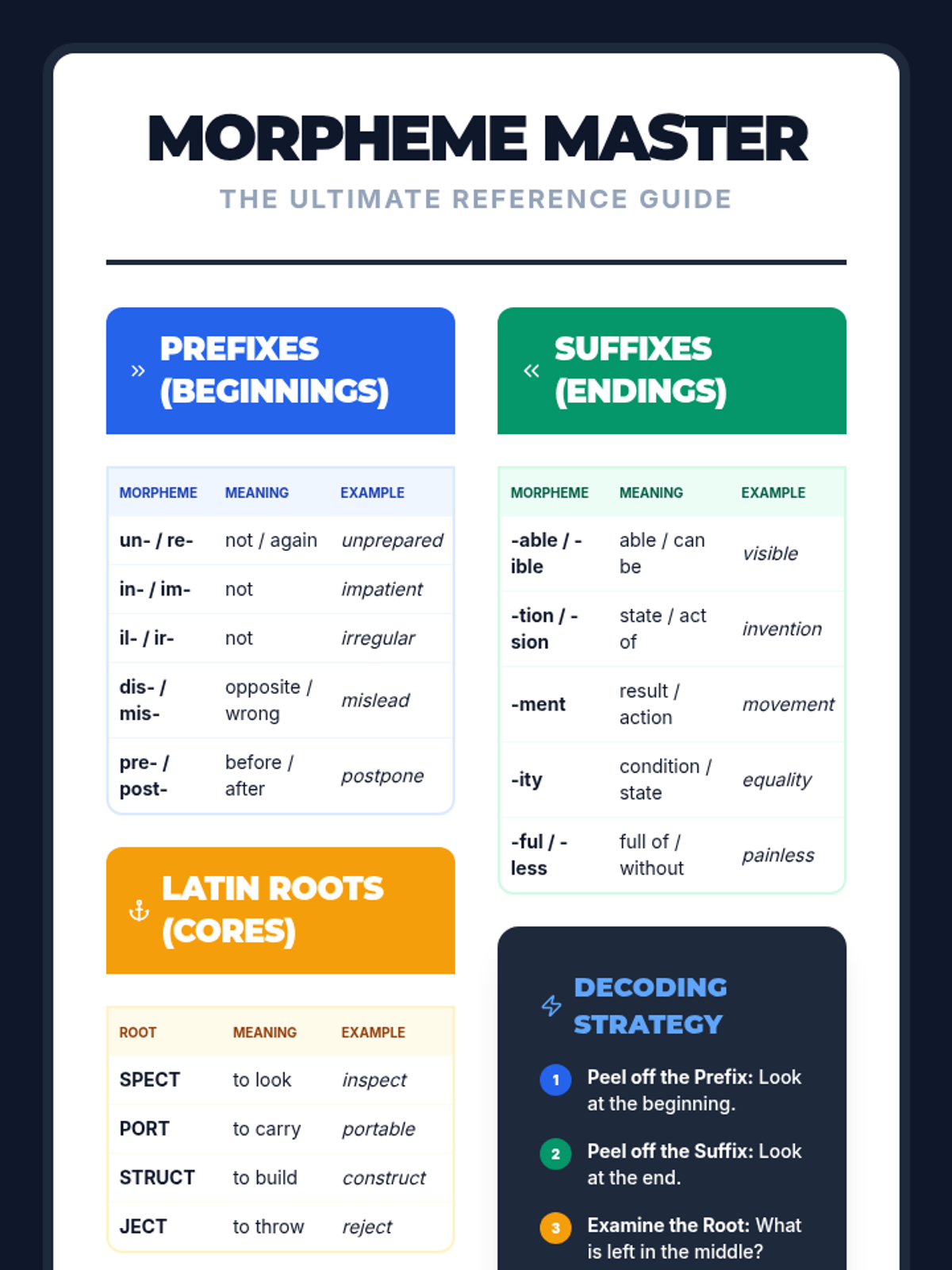 A 15-lesson extension sequence for 6th grade Tier 2 intervention, focusing on Latin roots, prefixes, and suffixes to improve multisyllabic word decoding and morphological awareness.