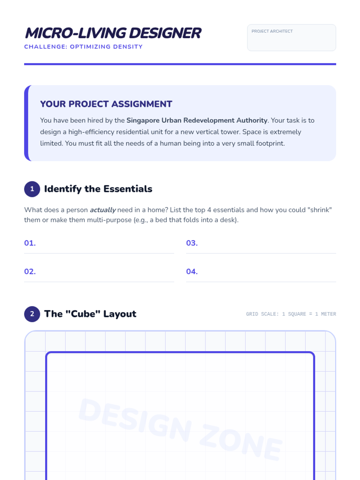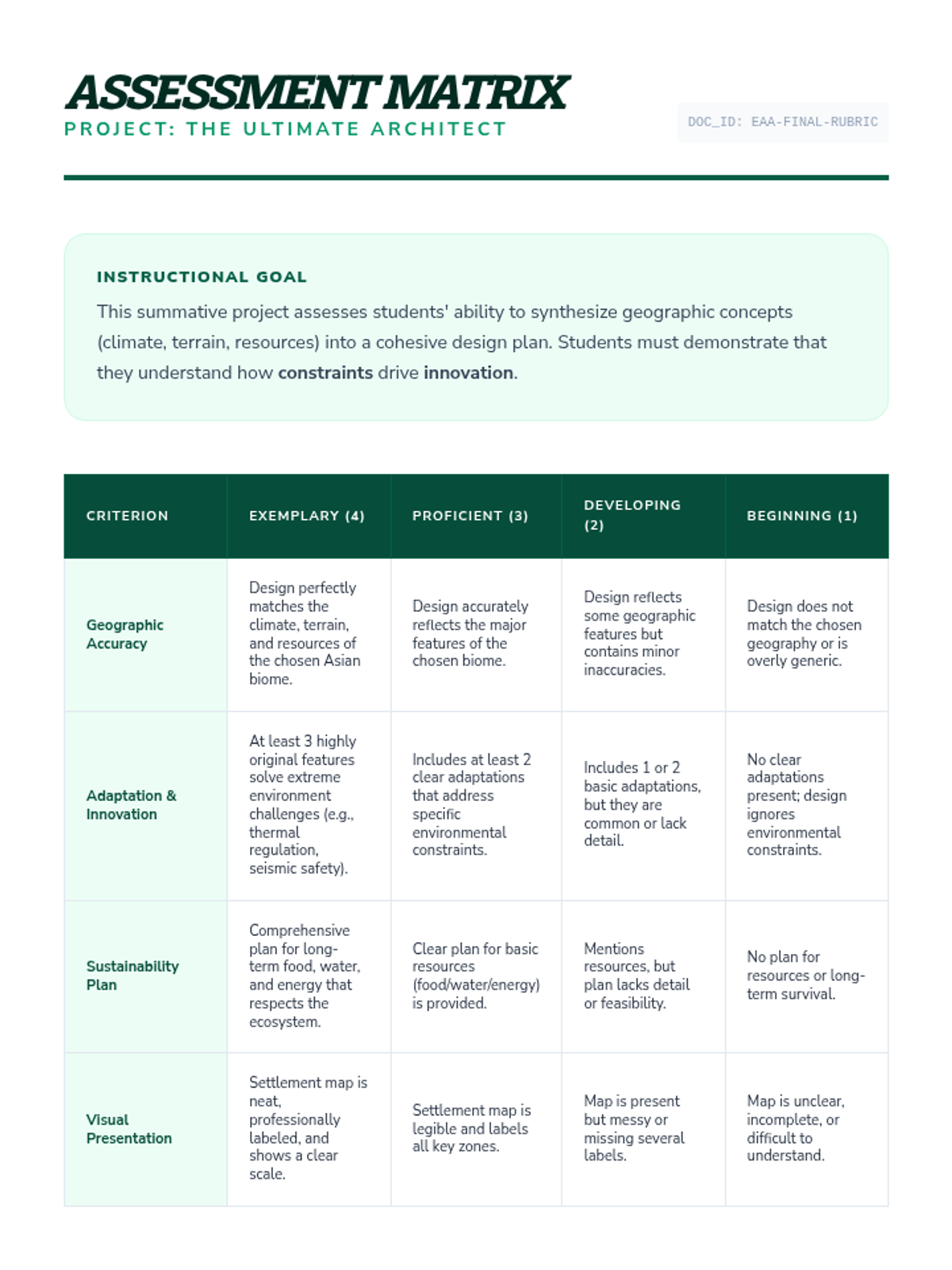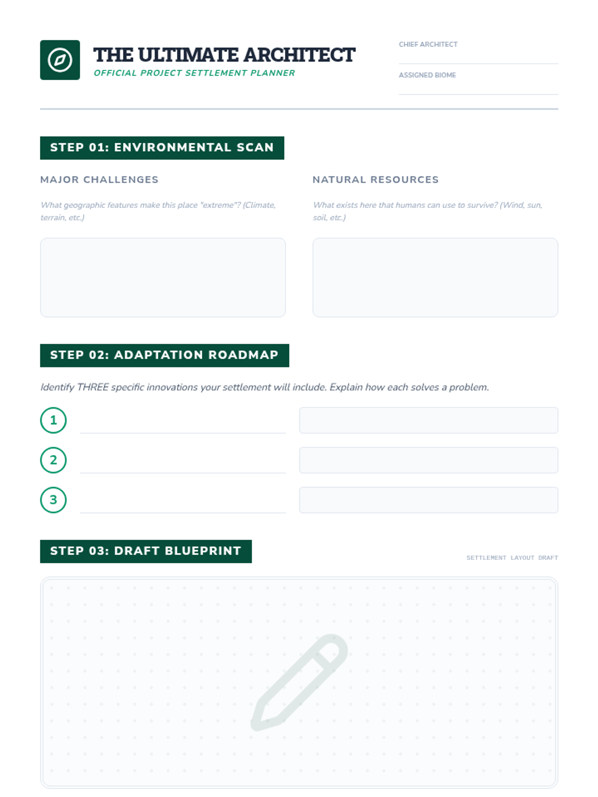 A multi-day project sequence where students design their own nation, exploring concepts of geography, governance, economics, and civil rights.
