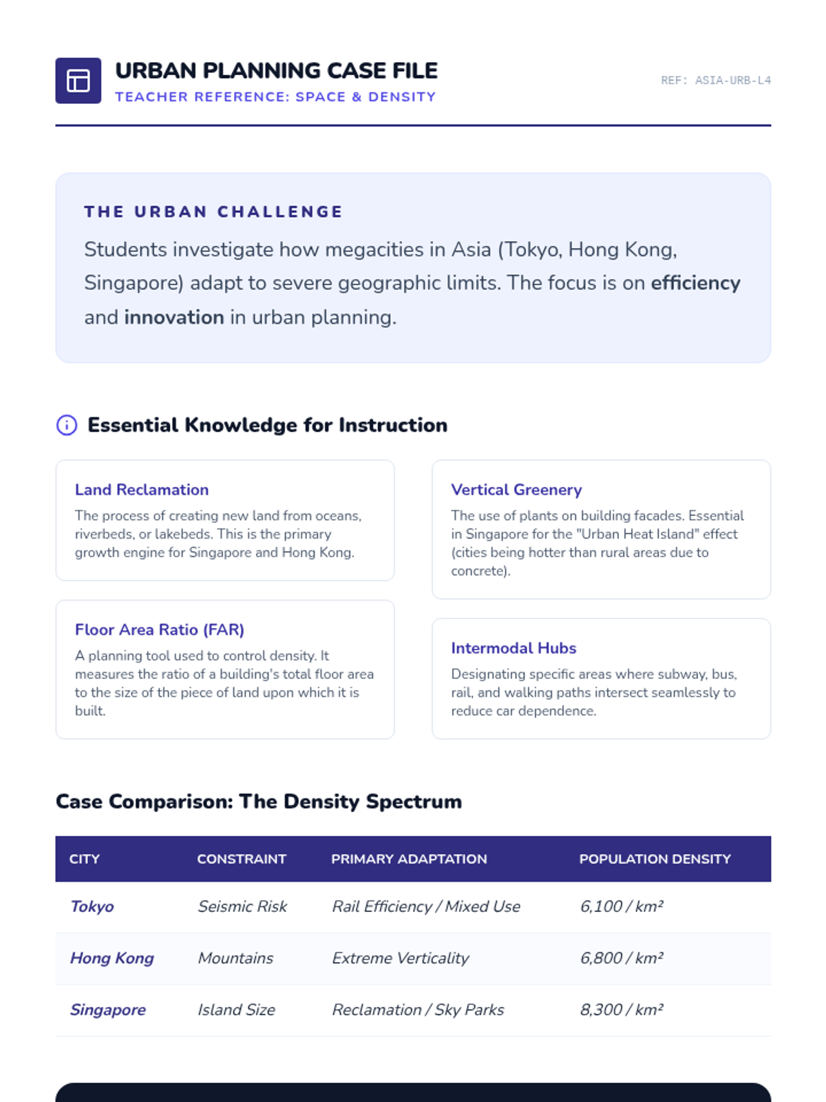 A 7th-grade Social Studies sequence exploring human adaptation to Asia's extreme environments, from the nomadic steppes to high-density urban islands. Students analyze how geography shapes culture, economy, and infrastructure across the continent.