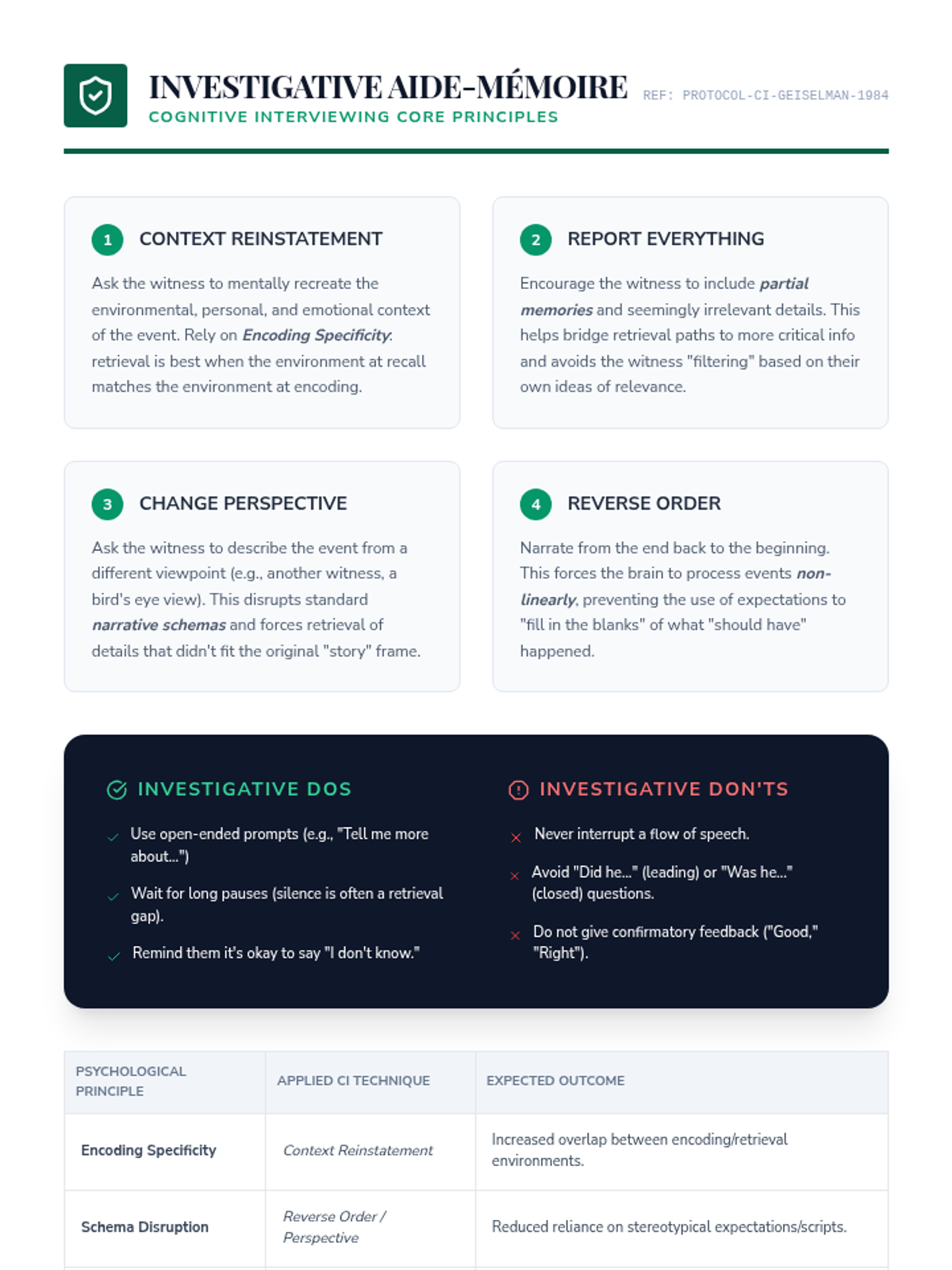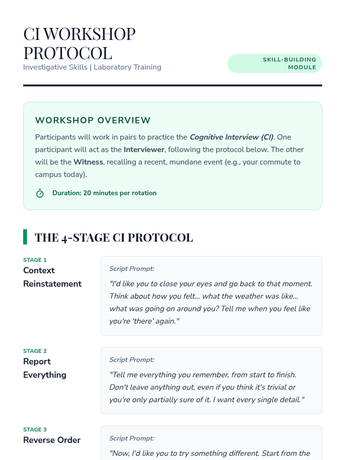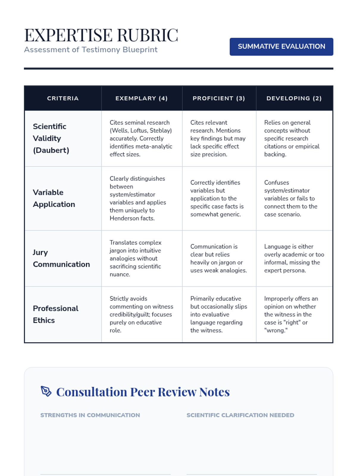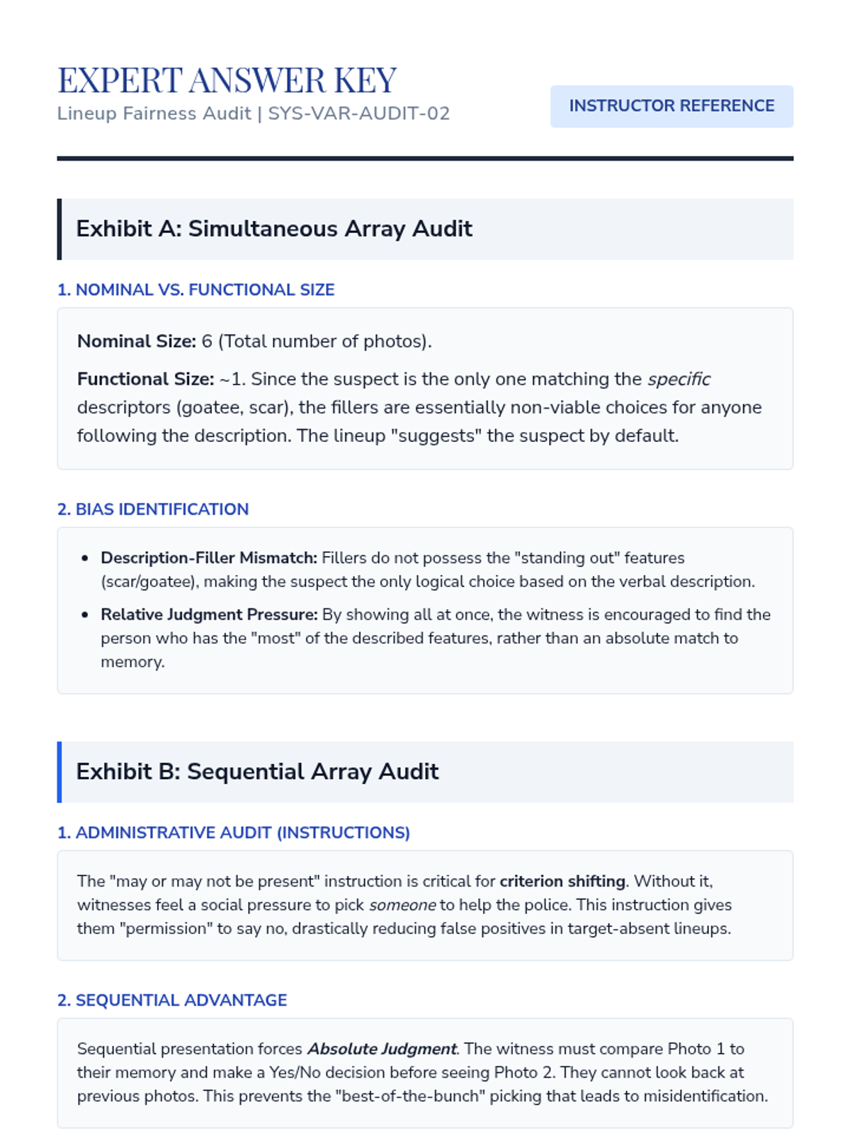 A graduate-level sequence exploring the intersection of cognitive psychology and the legal system, focusing on memory reliability, police procedures, and expert testimony.