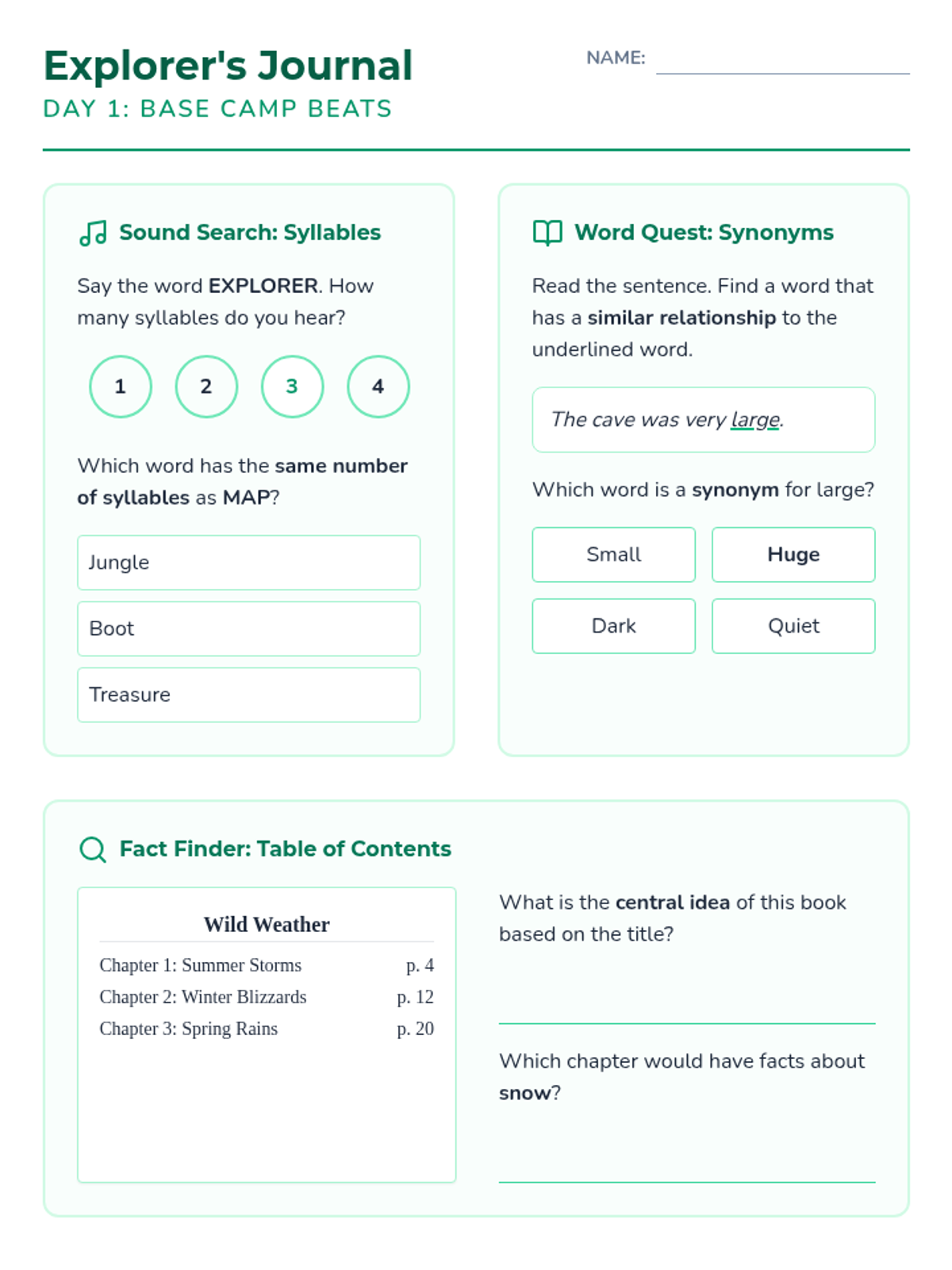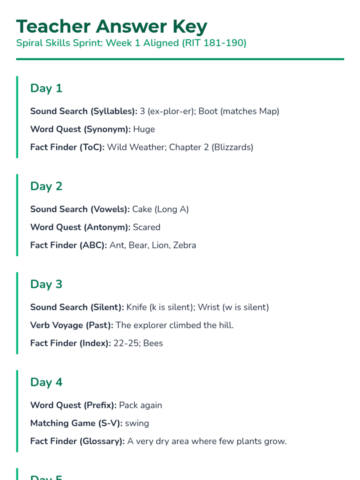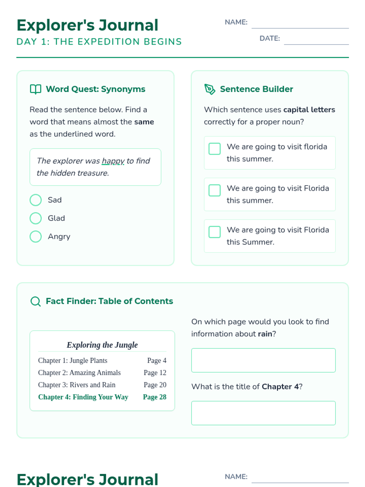 A 25-day spiral review program designed to prepare 2nd grade students for NWEA MAP Growth assessments, focusing on vocabulary, composition, and research skills. Each week provides a thematic challenge in an "Explorer's Journal" format to keep students engaged.