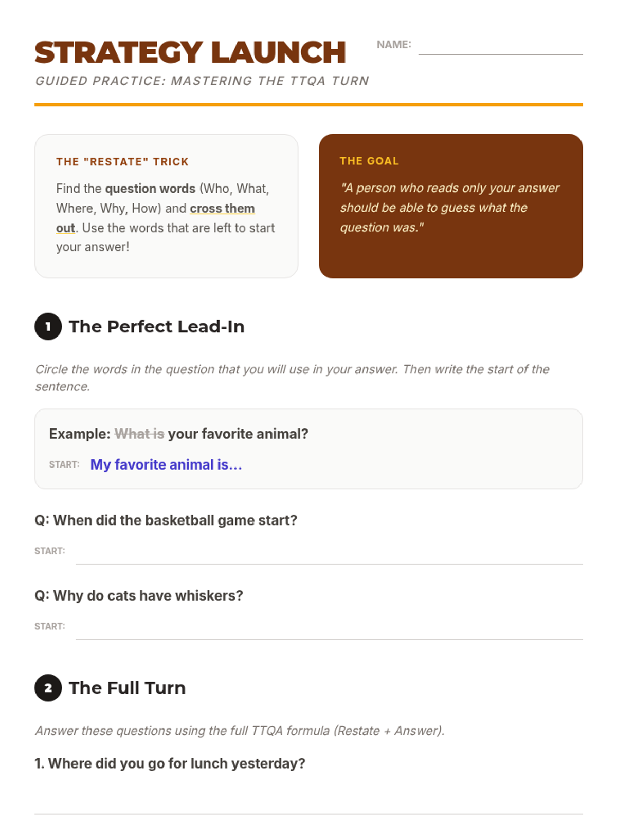 A multi-level collection of reading comprehension materials designed to teach students how to 'Turn The Question Around' (TTQA). Includes high-interest nonfiction passages differentiated for 2nd, 3rd, and 4th grade levels.