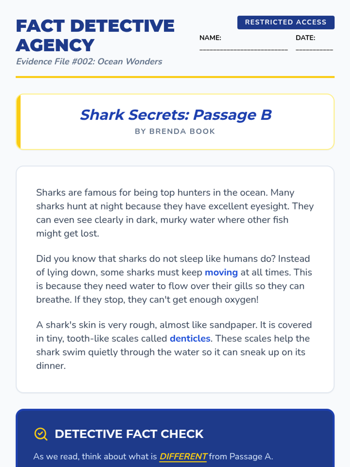 A 2nd-grade ELA sequence focused on comparing and contrasting informational texts. Students act as 'Fact Detectives' to identify key points across multiple sources on the same topic, culminating in a partner-based museum exhibit project.
