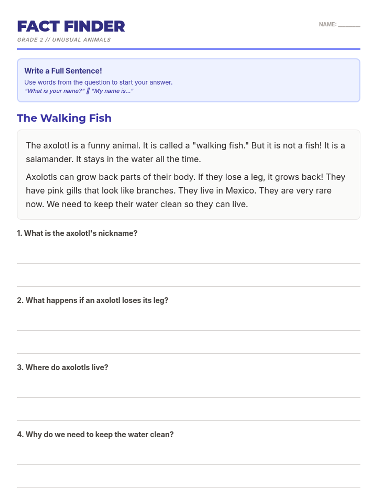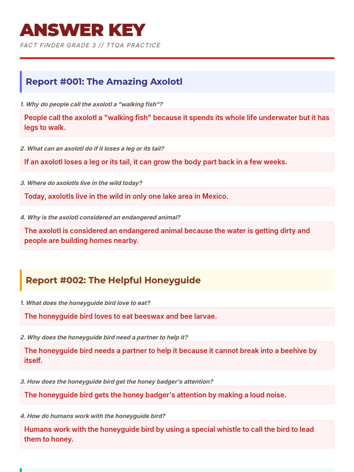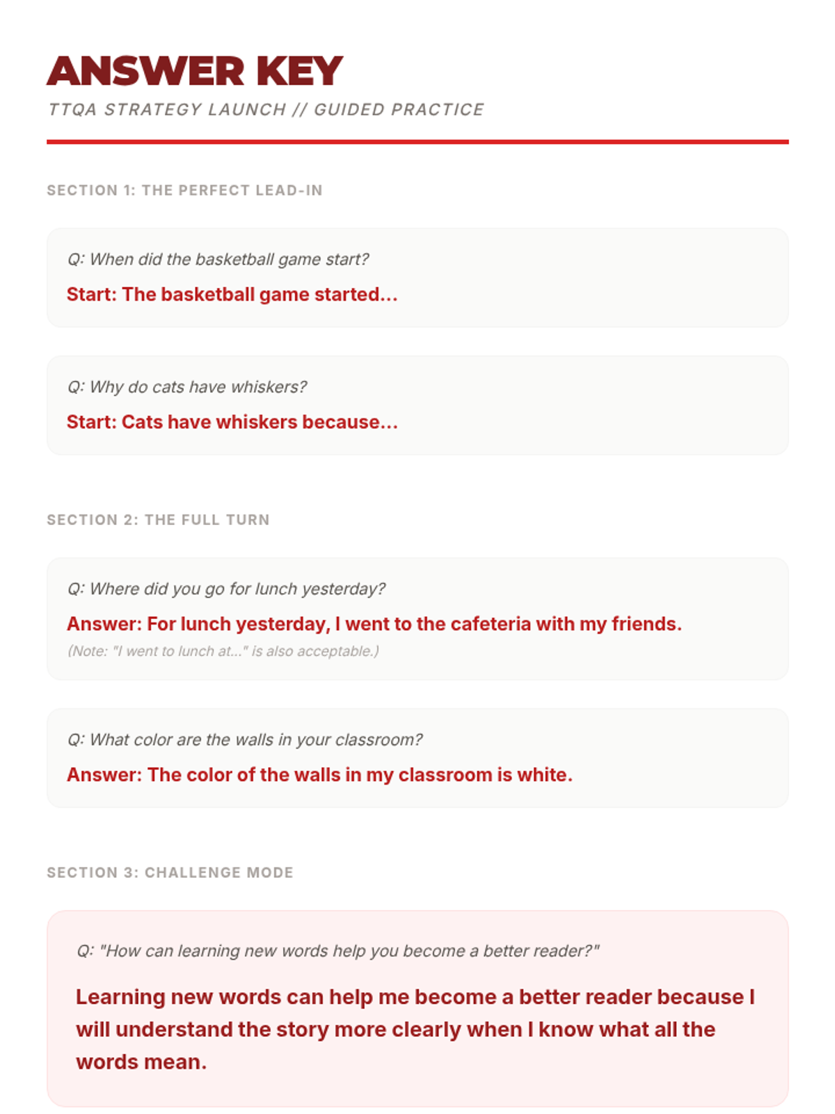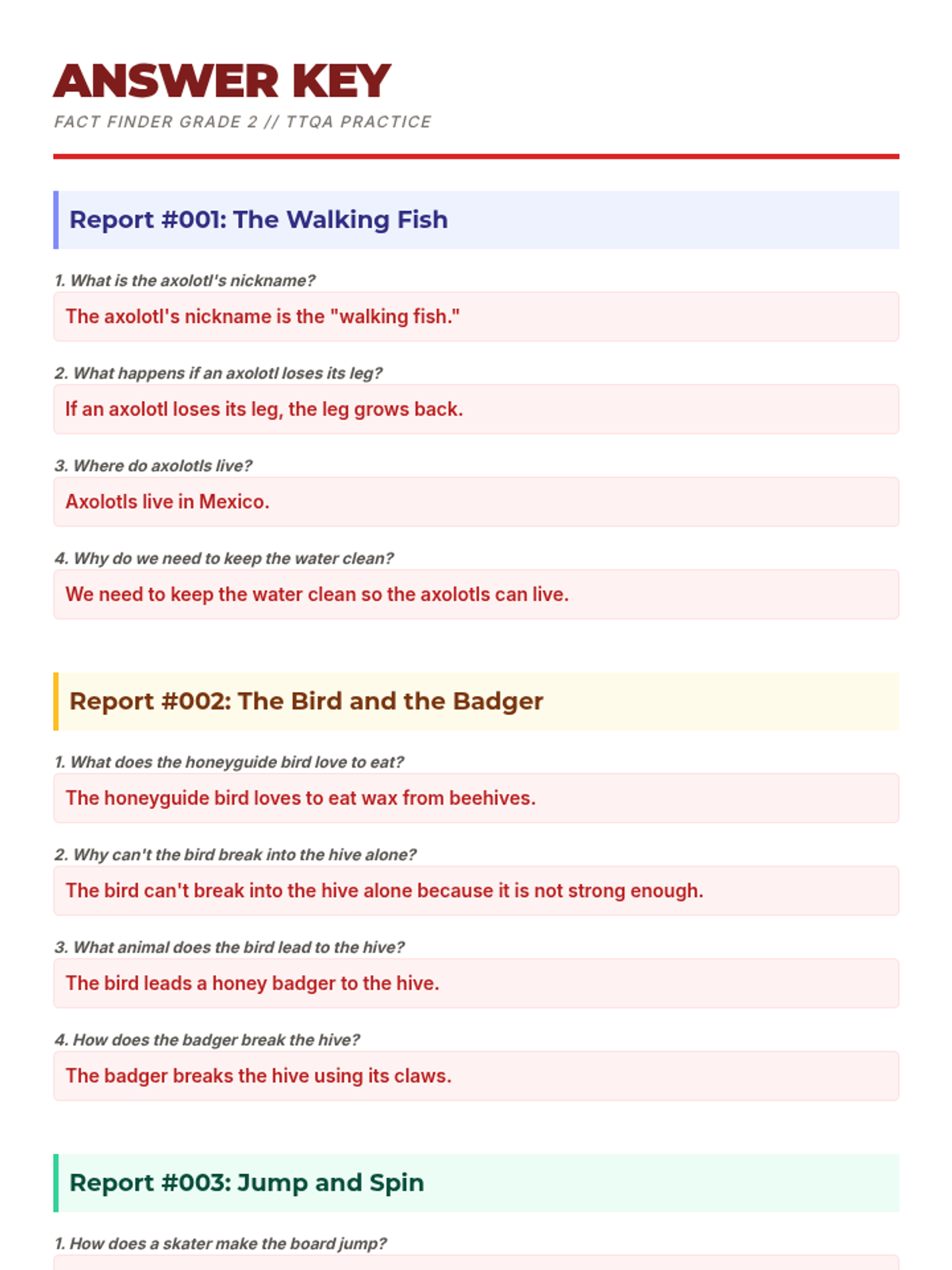 A multi-level collection of reading comprehension materials designed to teach students how to 'Turn The Question Around' (TTQA). Includes high-interest nonfiction passages differentiated for 2nd, 3rd, and 4th grade levels.