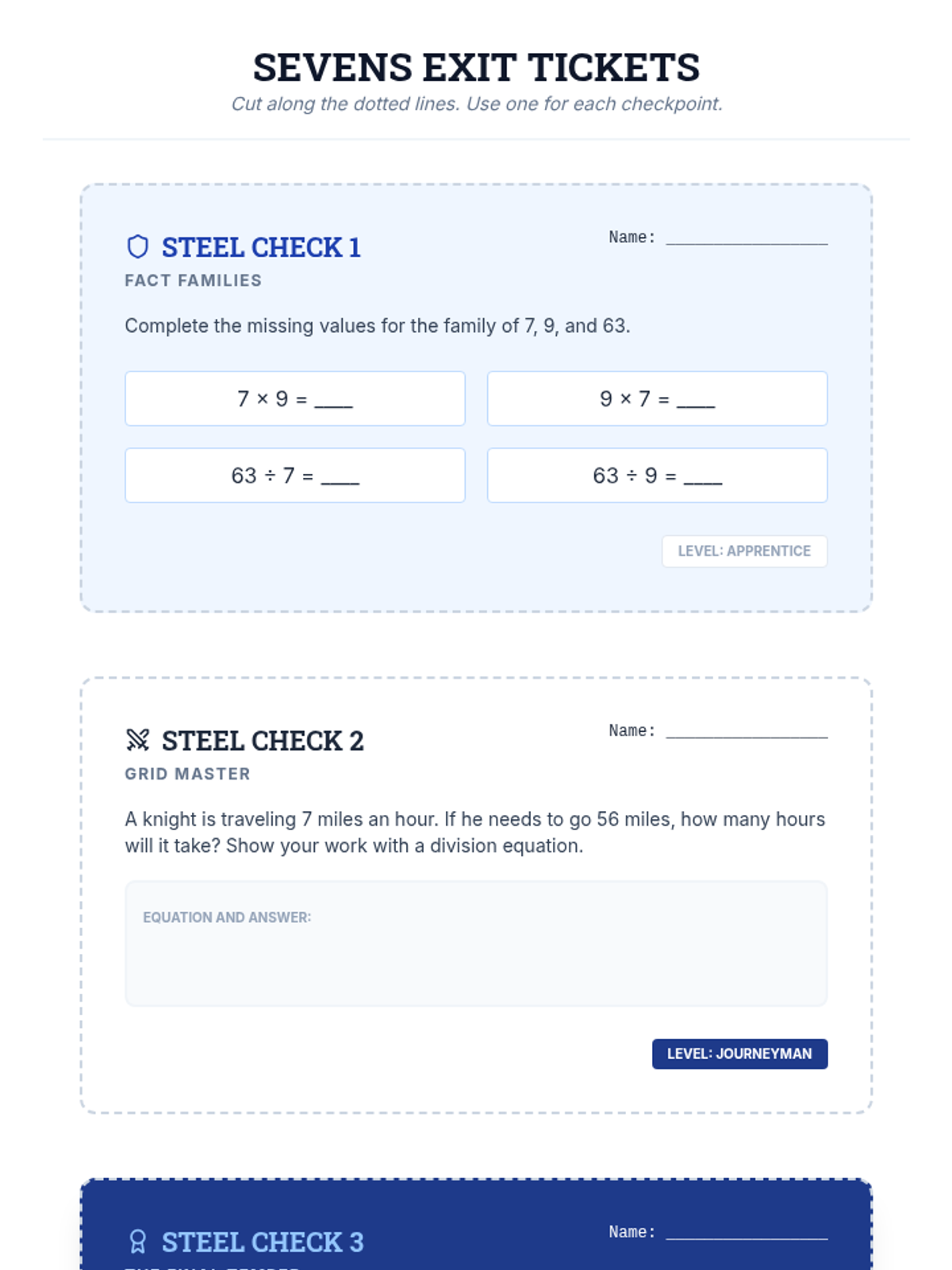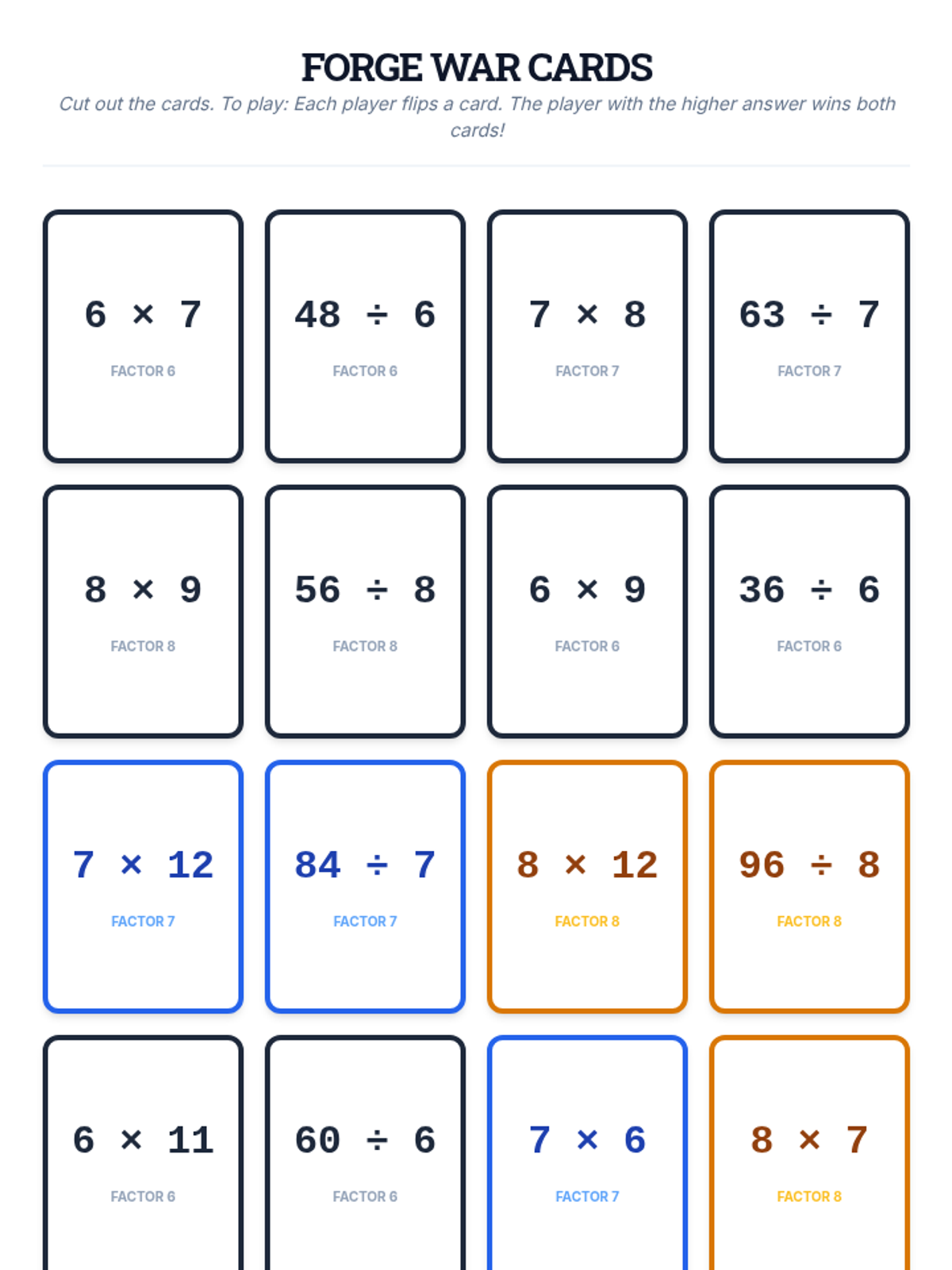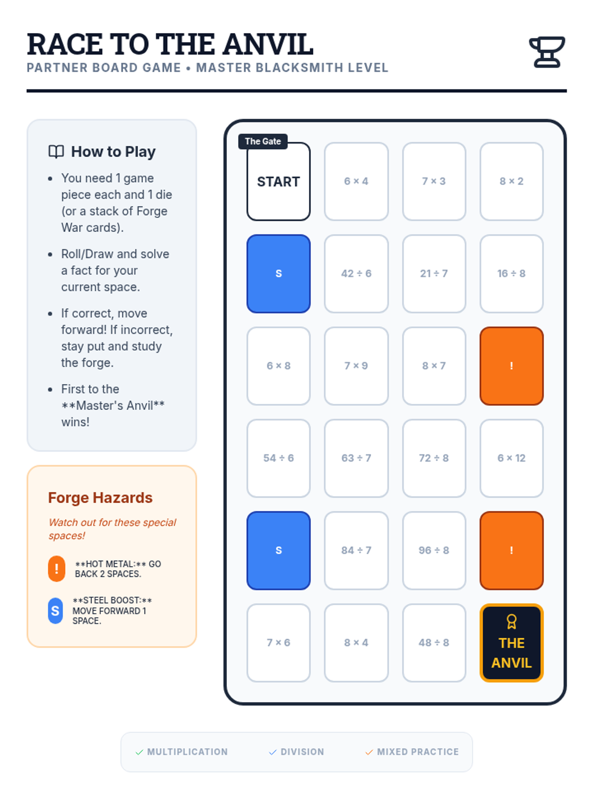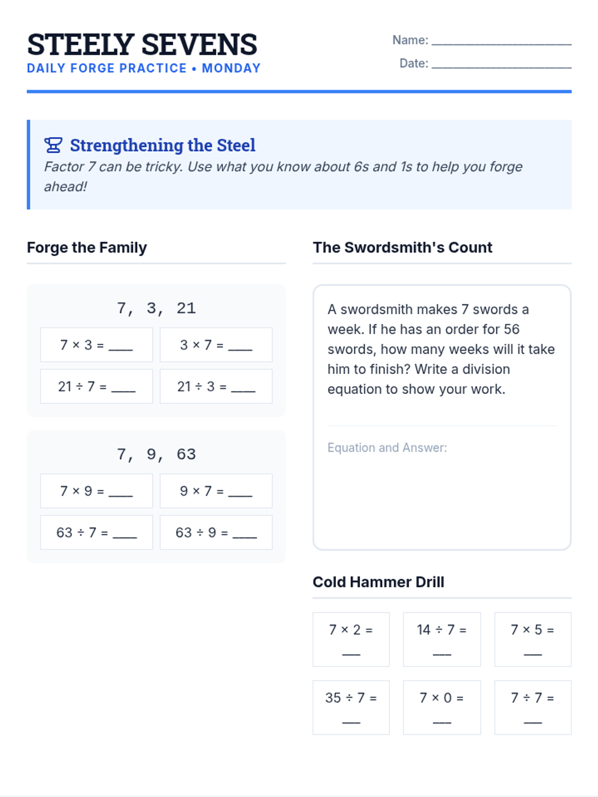 A three-week intensive unit focusing on multiplication and division fact families for factors 6, 7, and 8, using a blacksmith 'Factor Forge' theme to build math fluency and conceptual understanding.