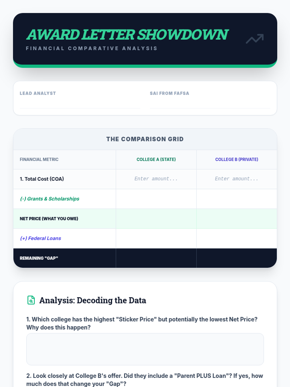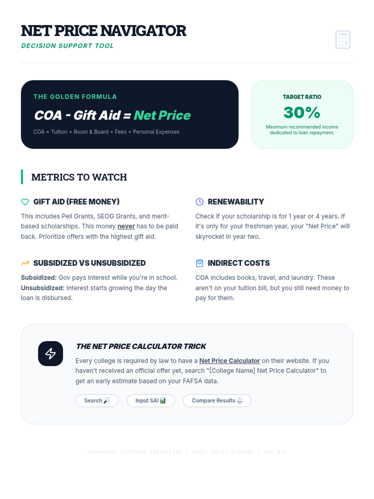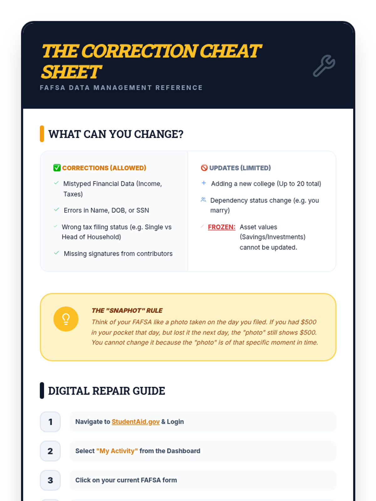 This sequence guides students through the post-submission phase of the FAFSA, including interpreting reports, navigating verification, making corrections, appealing for more aid, and comparing financial aid offers.