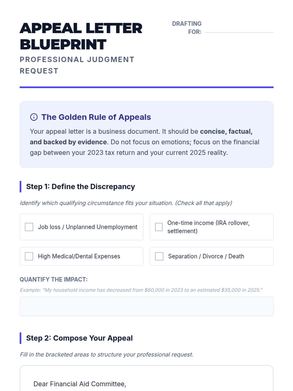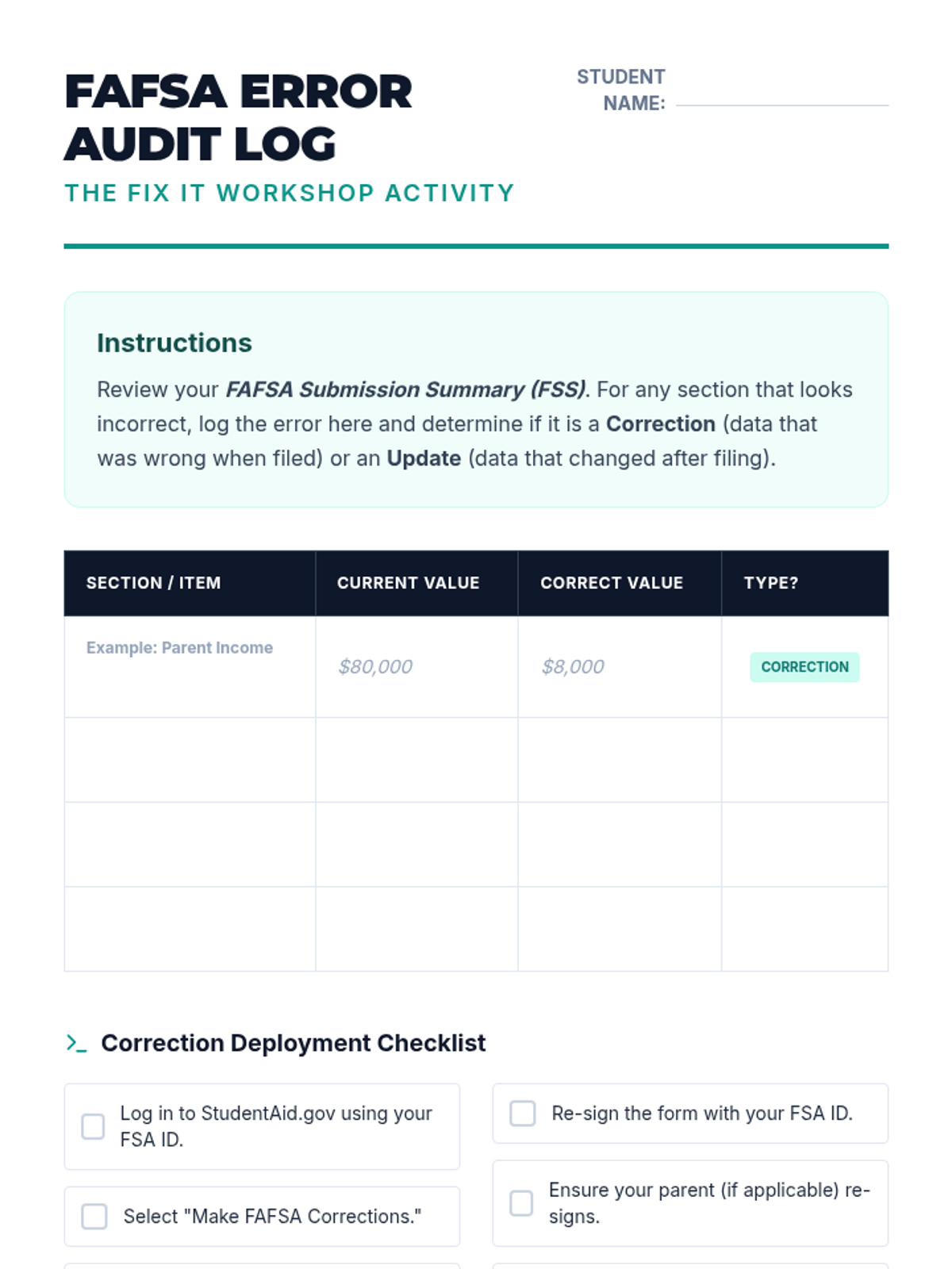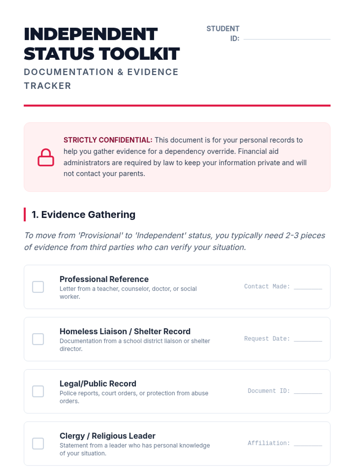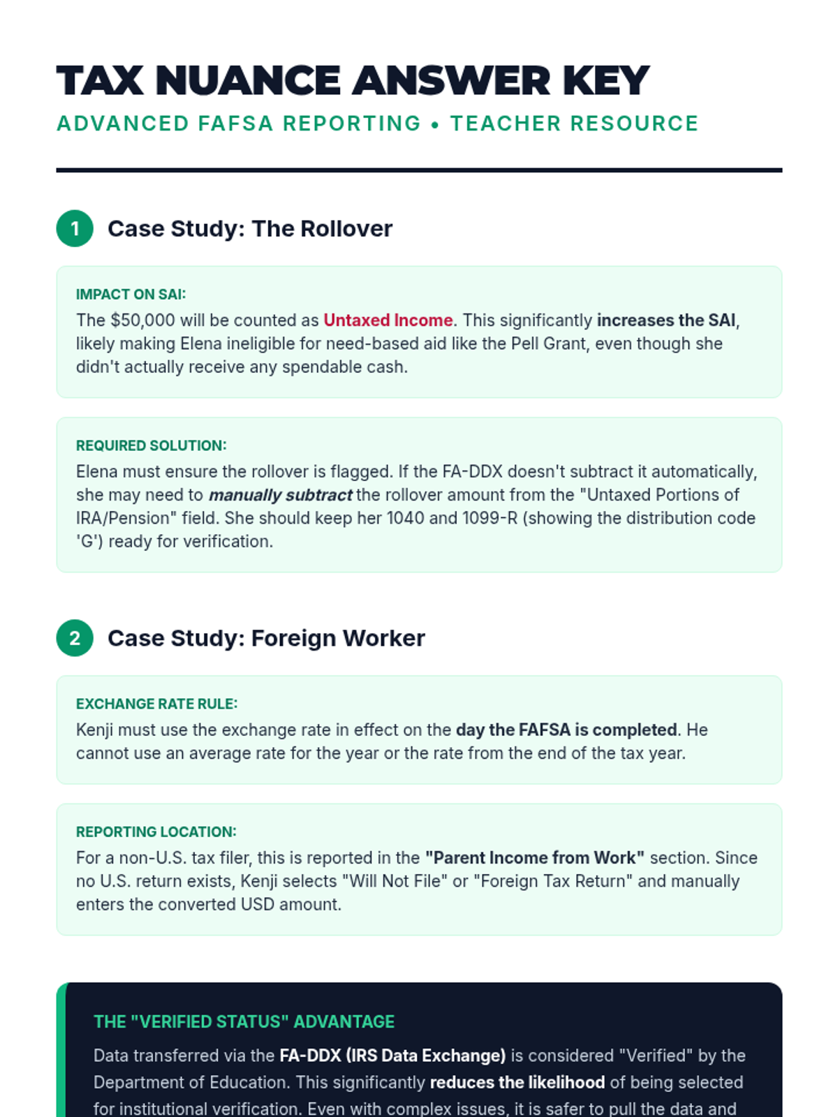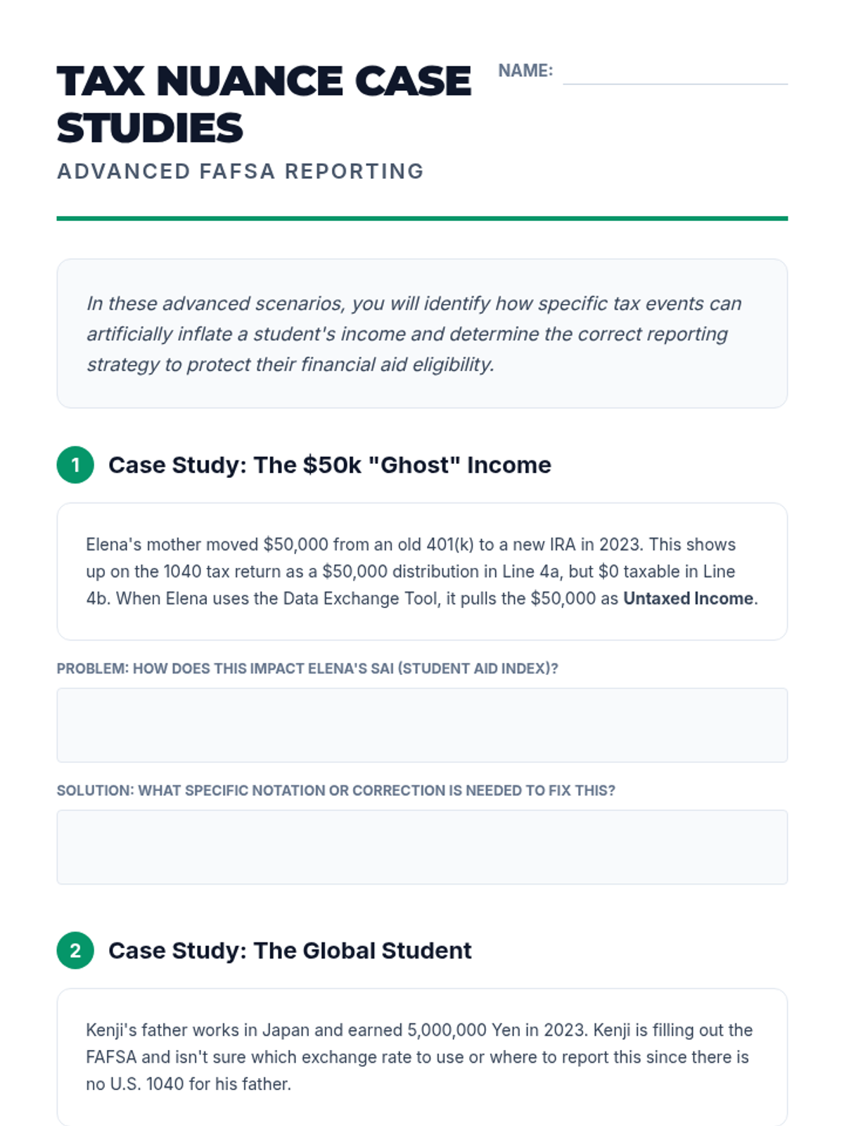 This sequence guides undergraduate students through the complexities of FAFSA verification, professional judgment appeals, and unique filing statuses. It focuses on self-advocacy and navigating bureaucratic exceptions to ensure equitable financial aid.