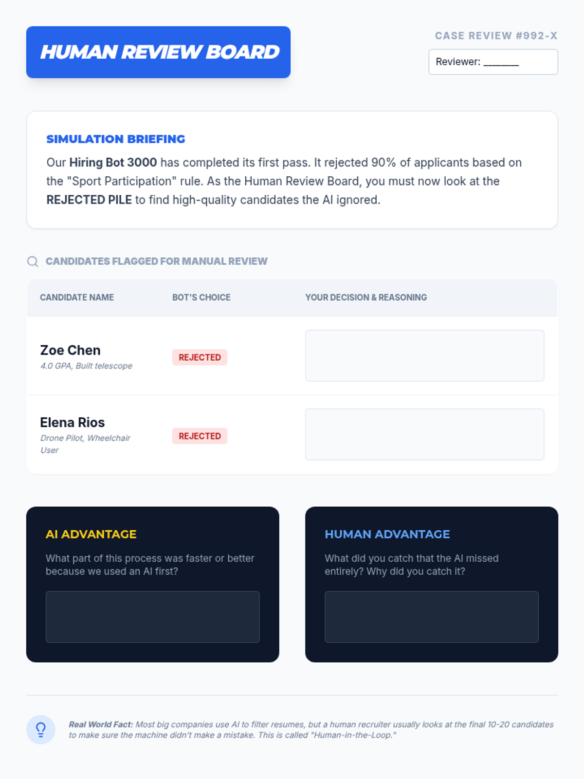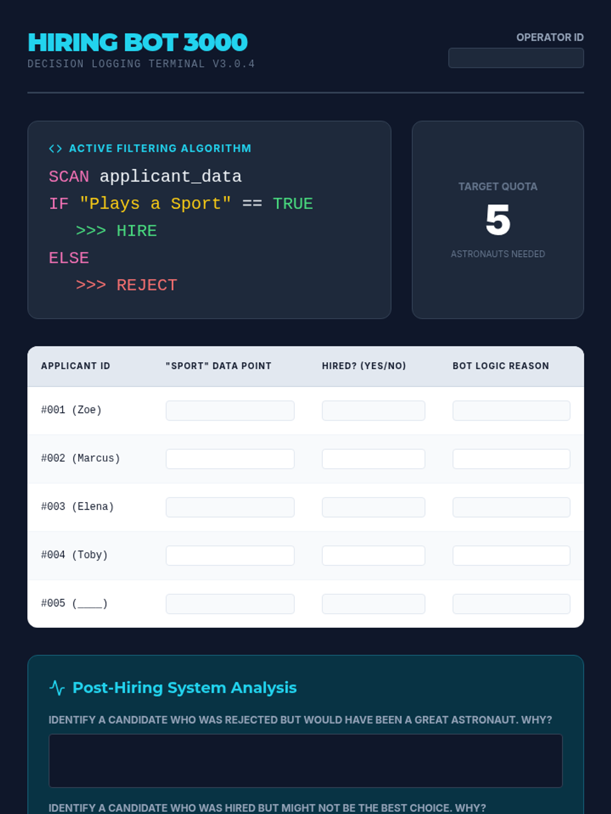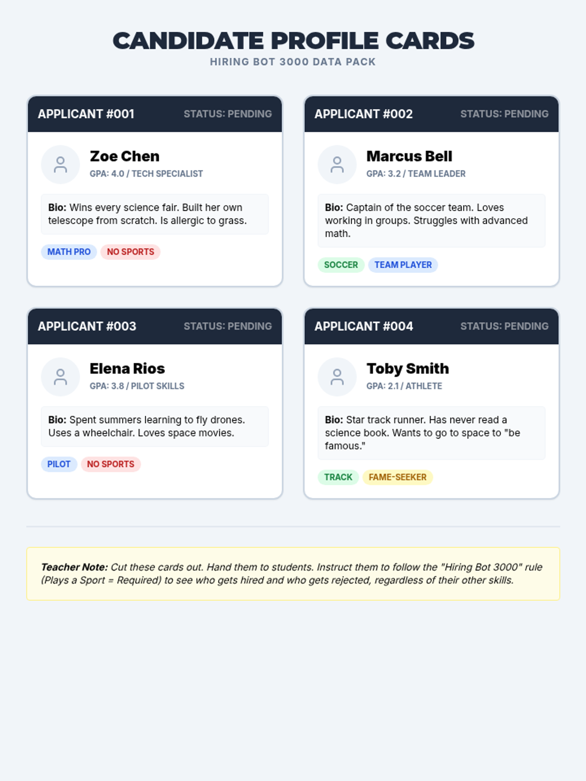 A 5-lesson exploration for 5th graders on how AI systems make decisions and the ethical implications of automated fairness. Students participate in simulations to understand the necessity of human oversight and the subjective nature of 'fairness'.