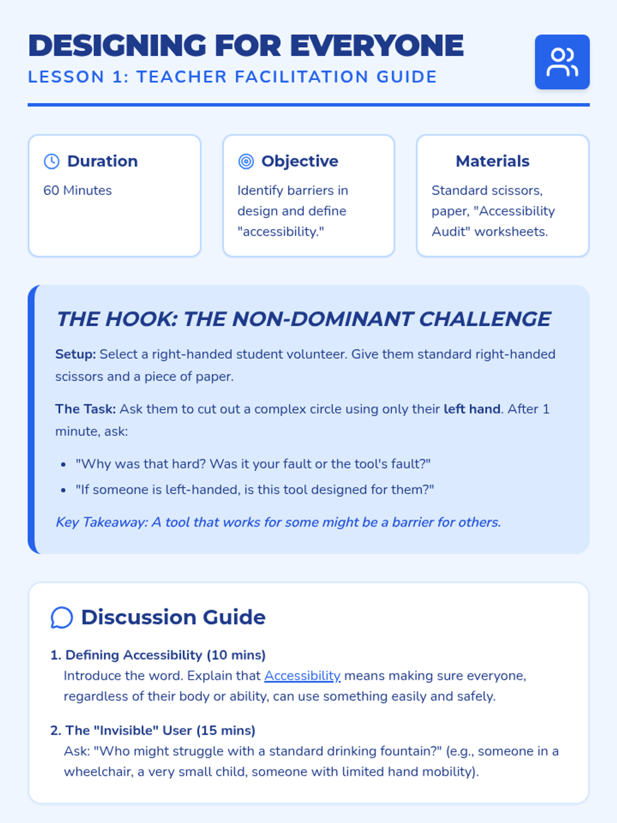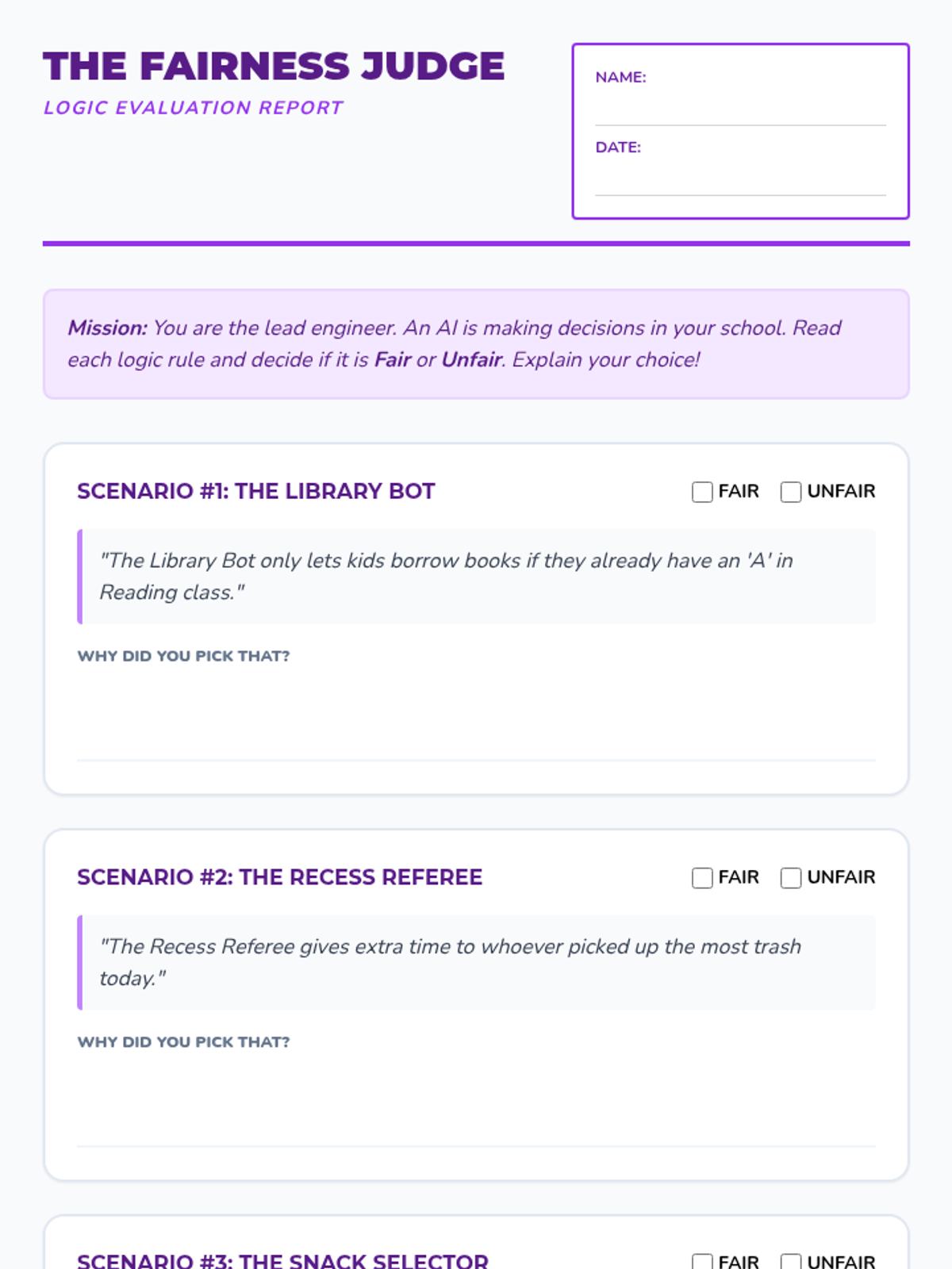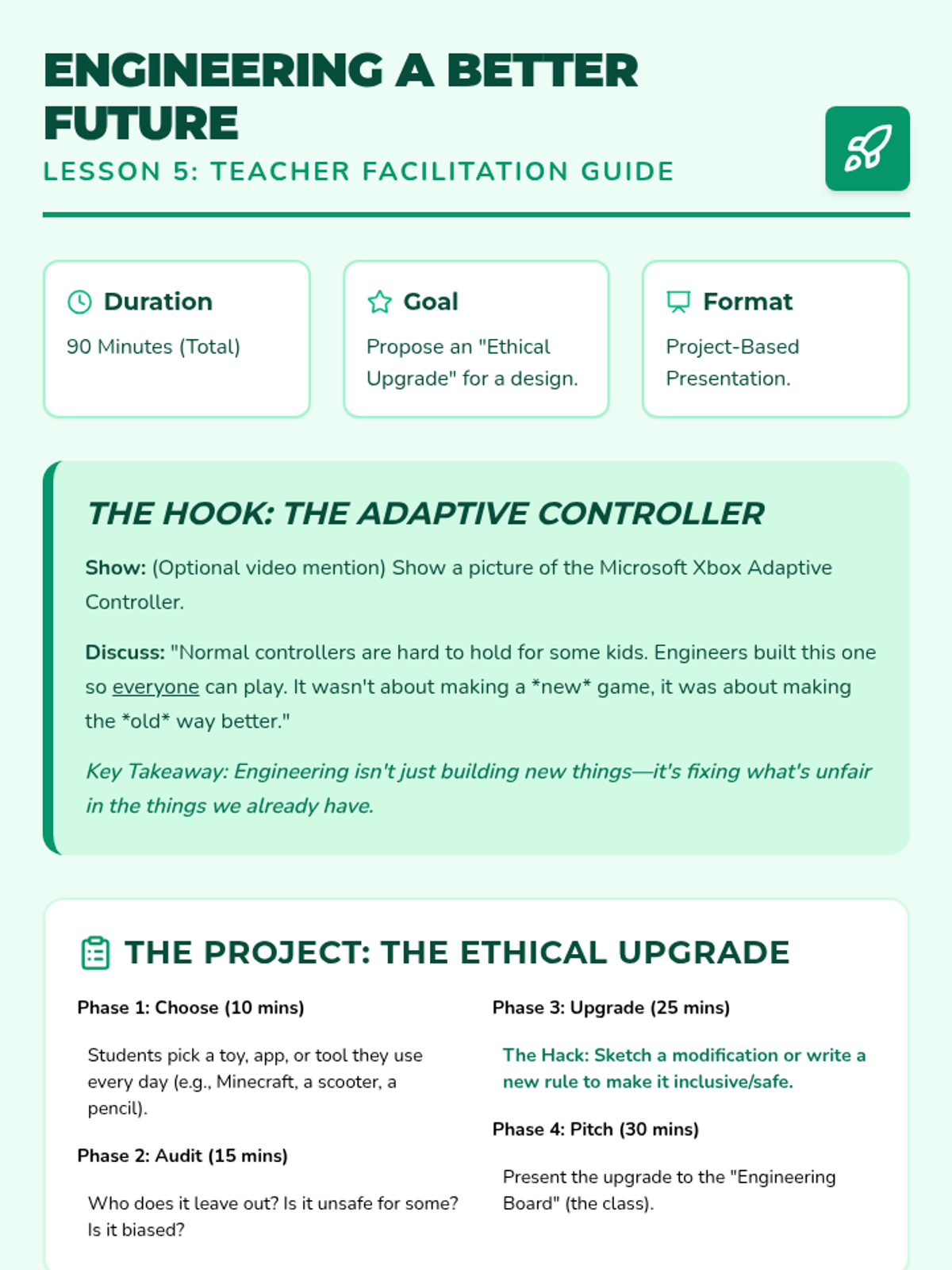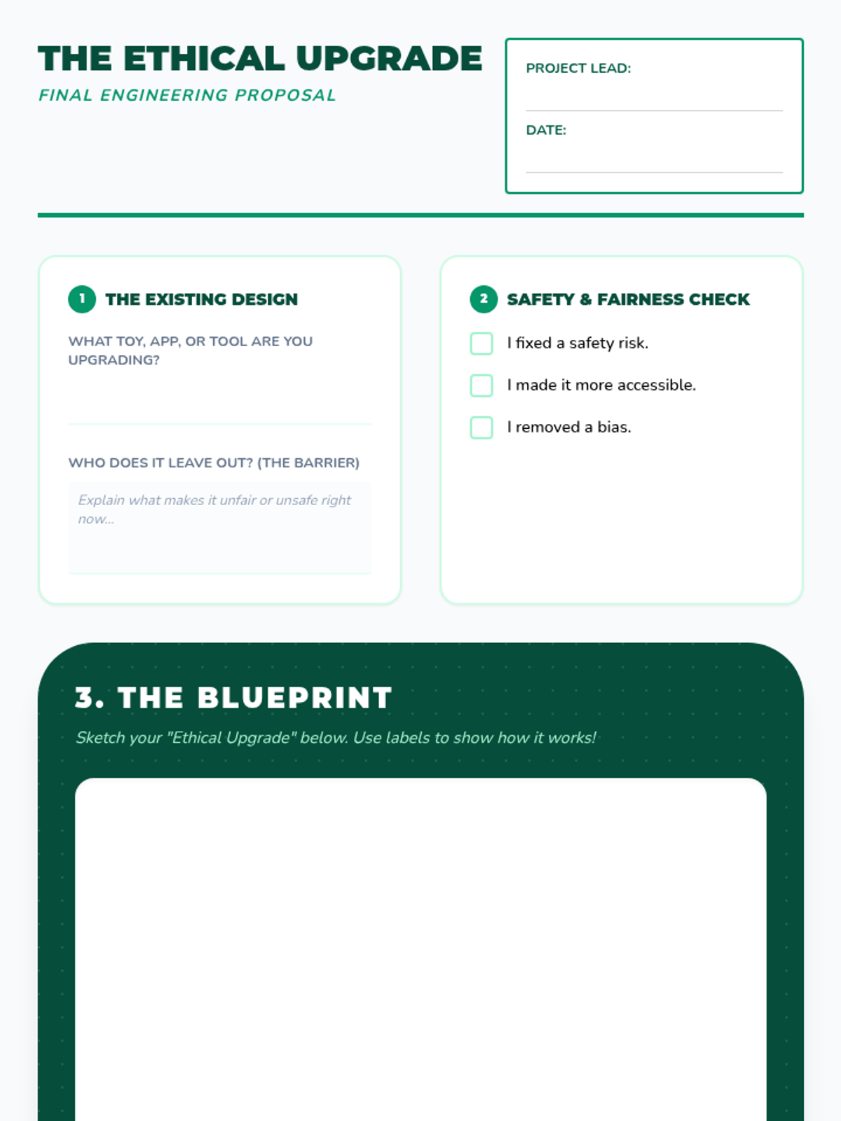 This sequence introduces 3rd-grade students to the ethical side of engineering. Students will explore accessibility, data bias, and safety through hands-on activities, focusing on how engineers must design technology to be fair and safe for everyone.