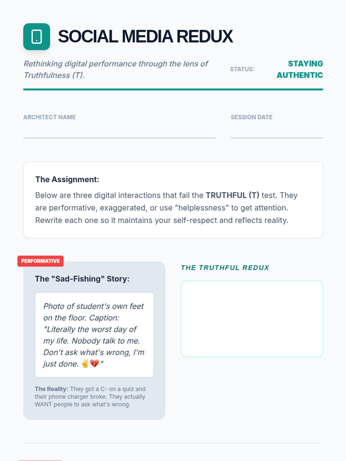 A three-session series for eighth graders on impulse control, the impact of speech, and taking accountability for one's social footprint. The curriculum moves from understanding impact to practicing filtering and ends with a framework for restorative accountability.