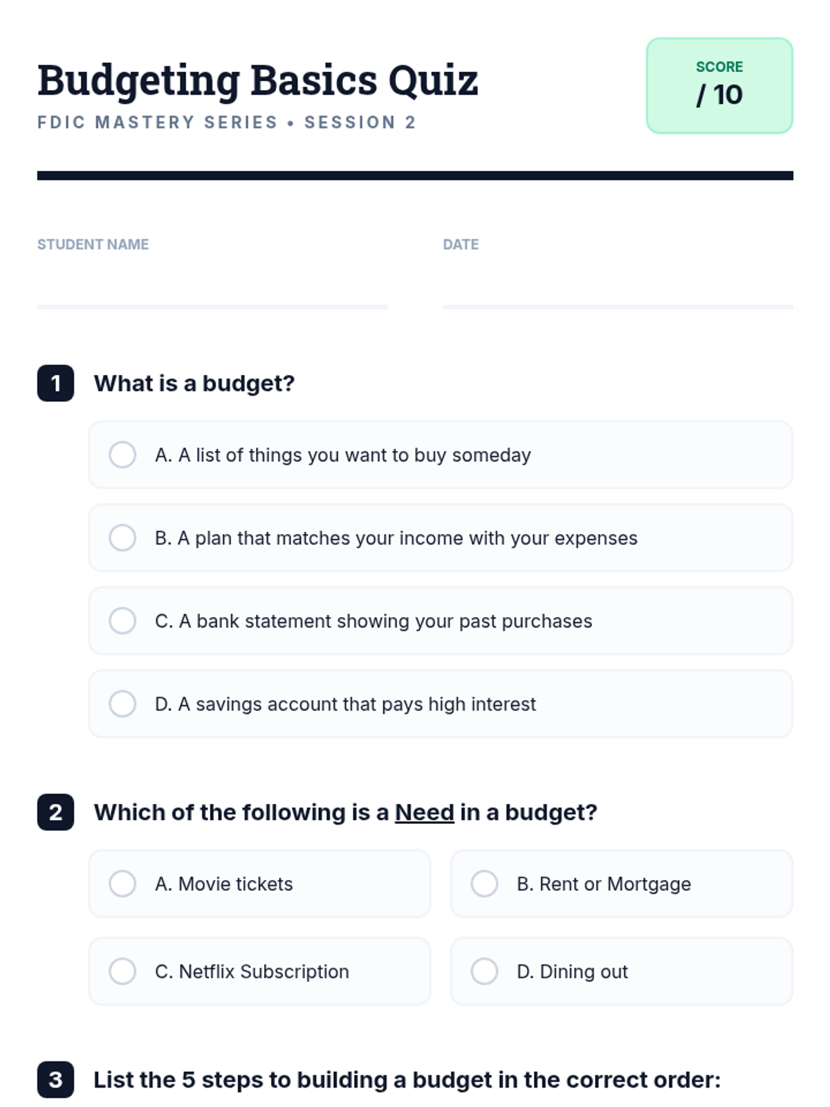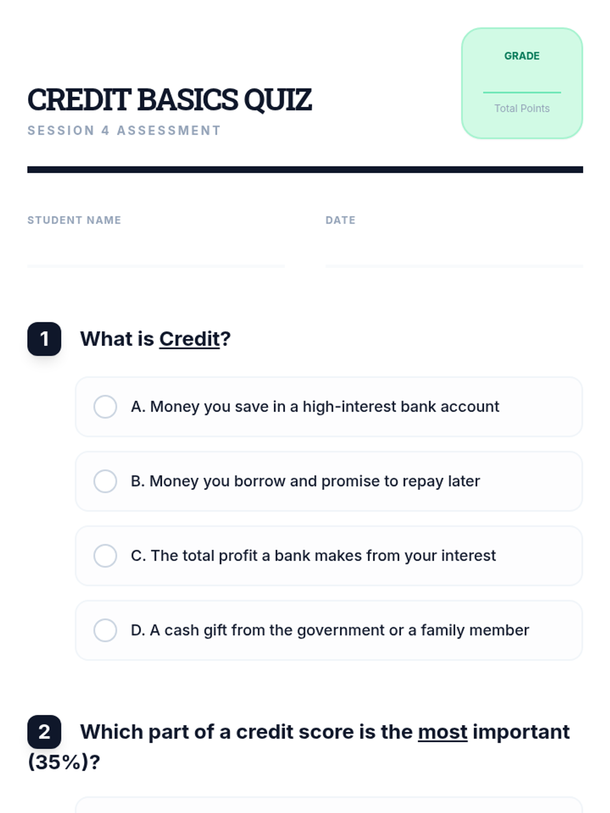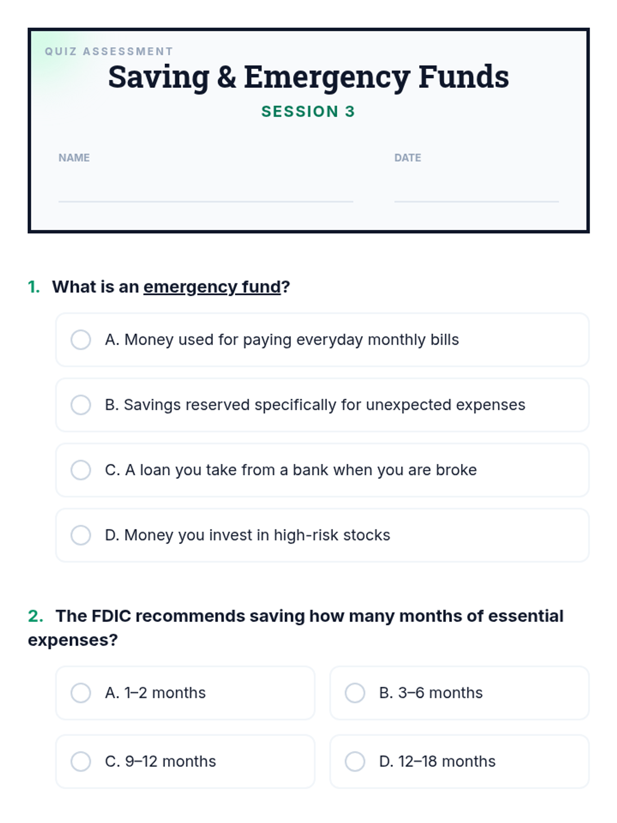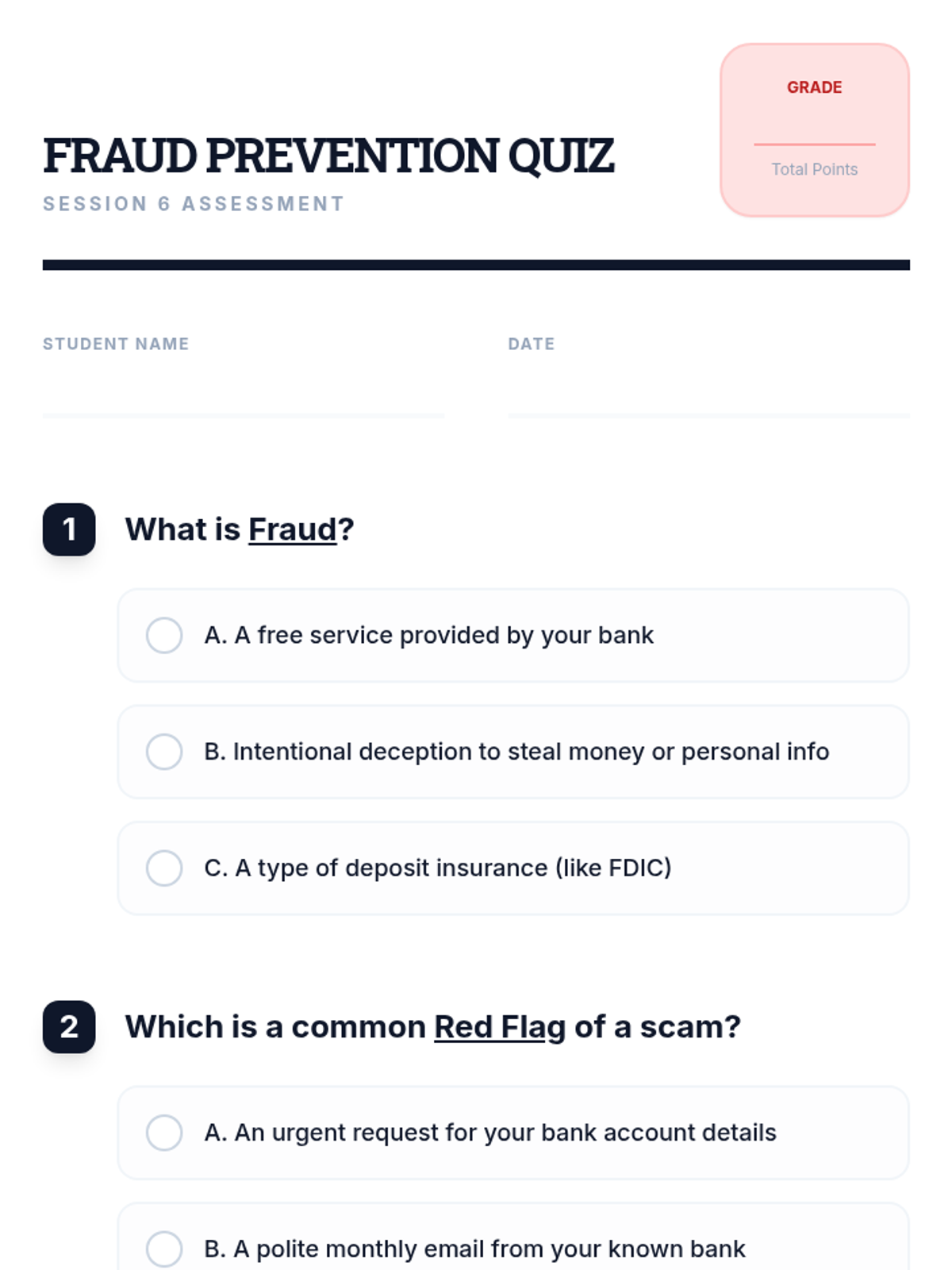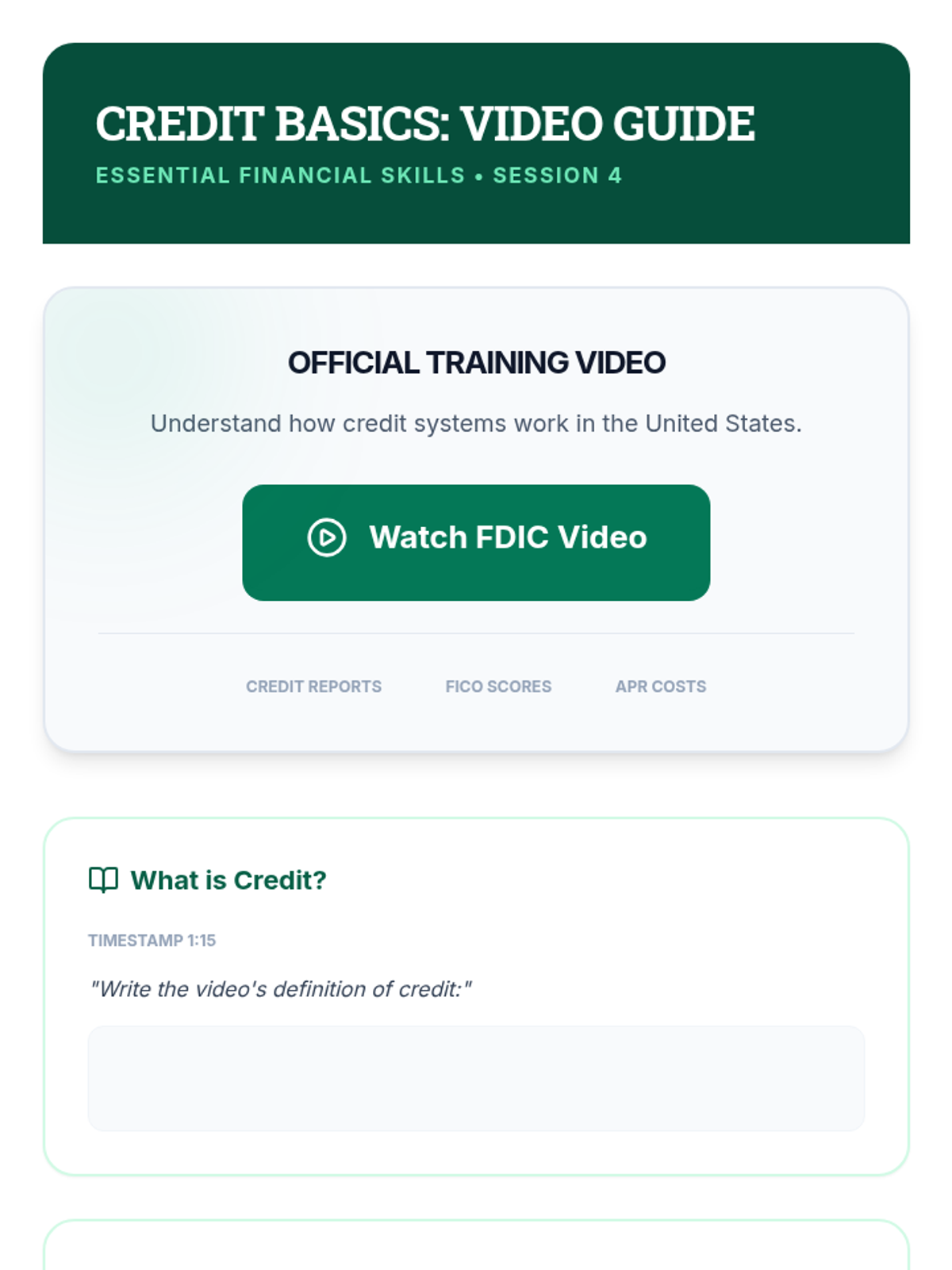 A comprehensive 6-session financial literacy course for adult ESL learners. Utilizing FDIC-based resources, this sequence covers banking basics, budgeting, saving, credit, loans, and fraud prevention to empower students with real-life money management skills.