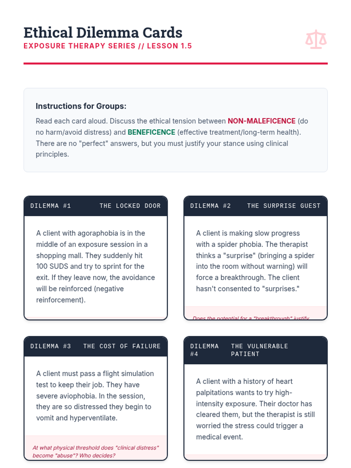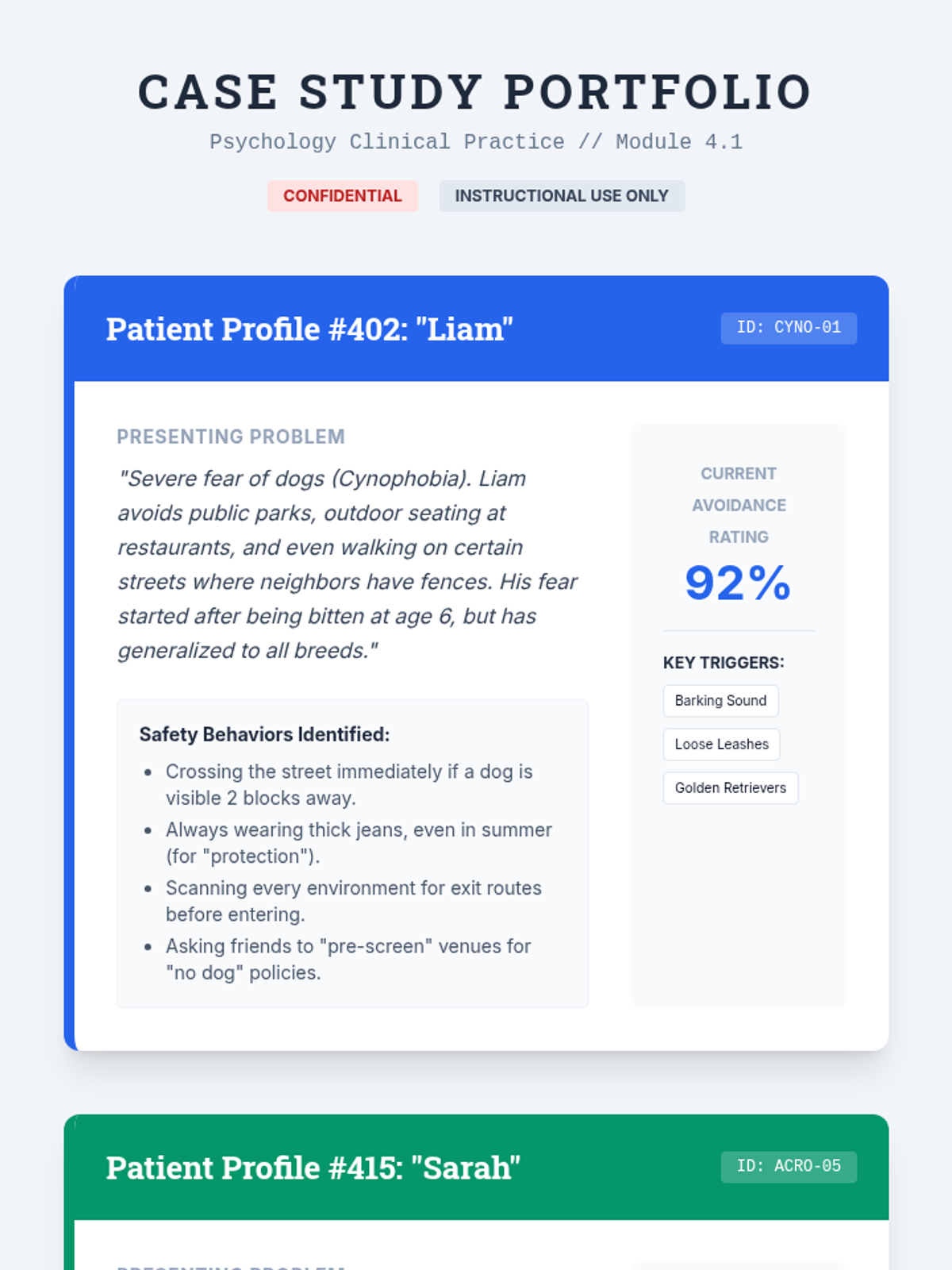 This sequence explores the physiological and psychological mechanisms of exposure therapy, moving from neurobiological foundations to the ethical application of therapeutic interventions. Students analyze the 'avoidance trap,' learn to quantify distress using SUDS, and distinguish between habituation and inhibitory learning through clinical case study analysis.
