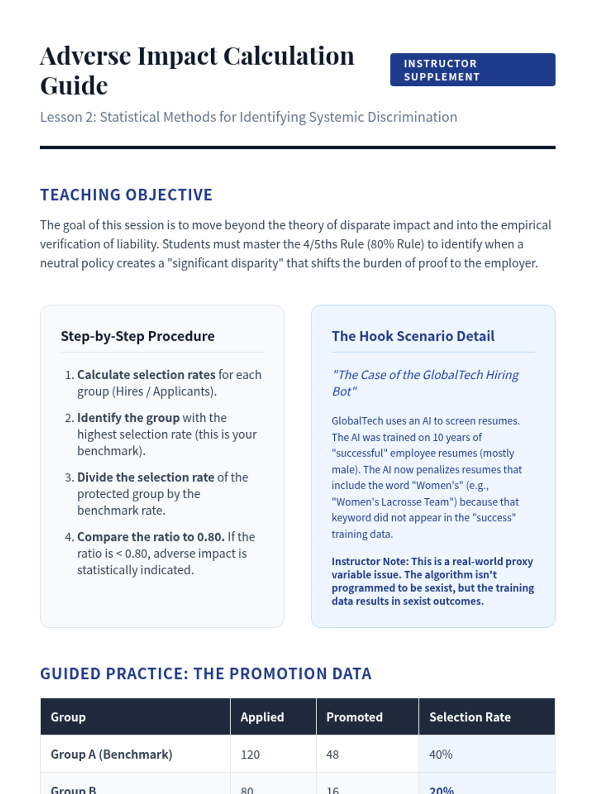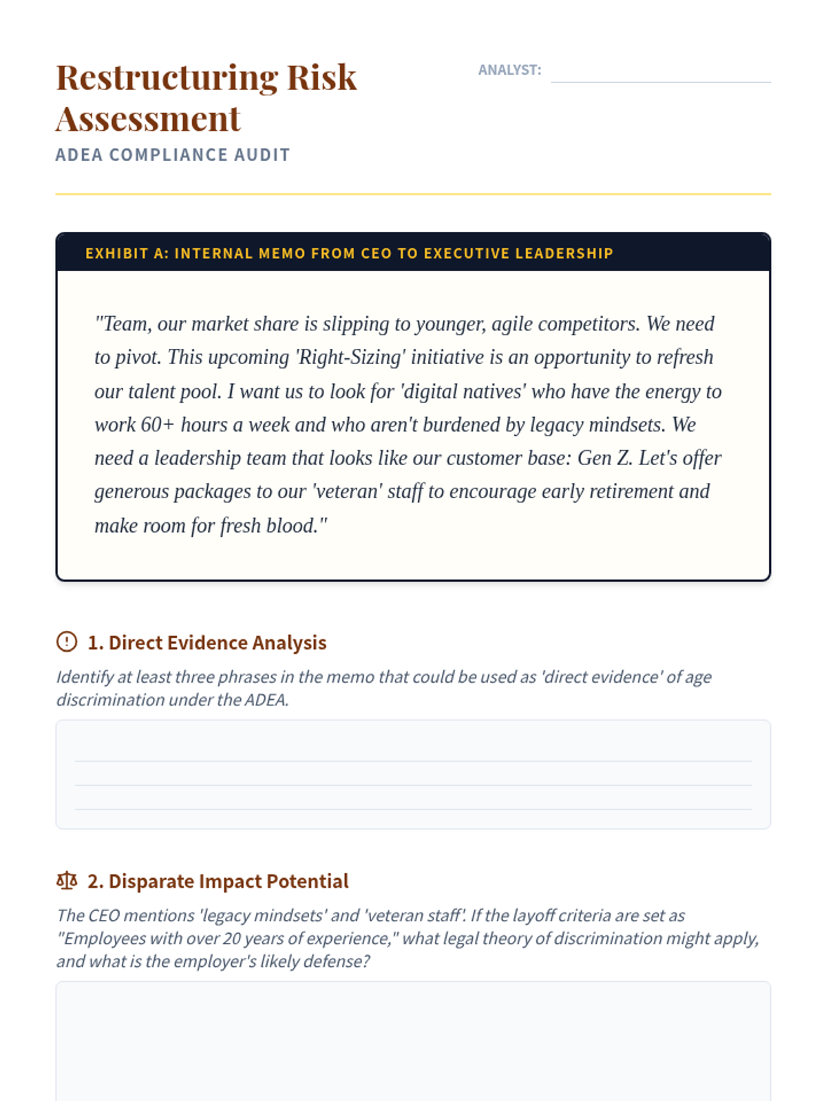 A comprehensive graduate-level exploration of federal anti-discrimination laws, focusing on Title VII, ADA, ADEA, and retaliation. Students analyze landmark cases, calculate disparate impact, and navigate the complexities of reasonable accommodation and workforce restructuring.