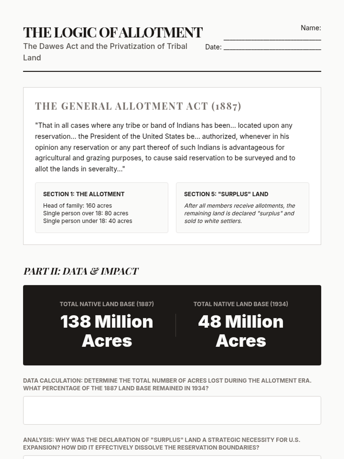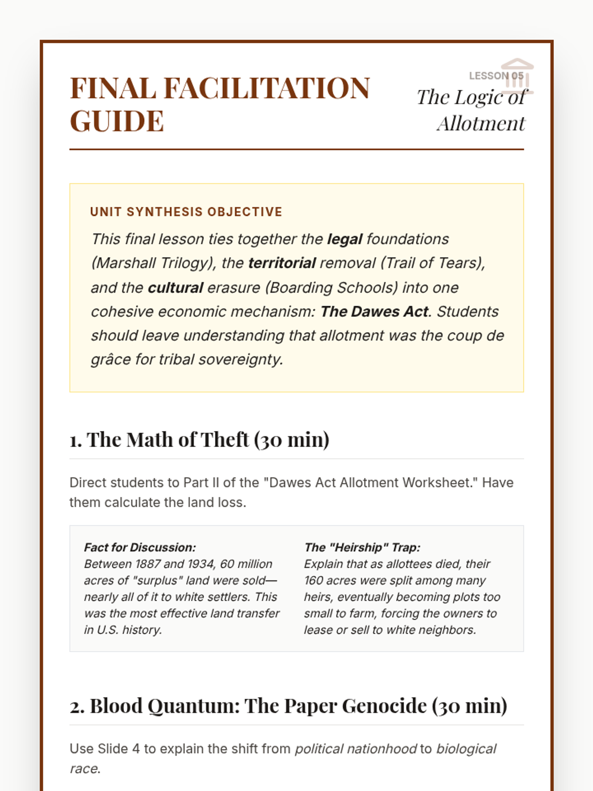 This sequence explores the legal, political, and cultural mechanisms of U.S. federal policy toward Indigenous nations, from the foundations of Federal Indian Law in the Supreme Court to the devastating impacts of the Dawes Act and forced boarding school assimilation.