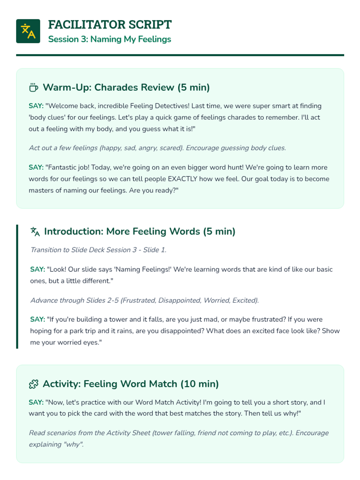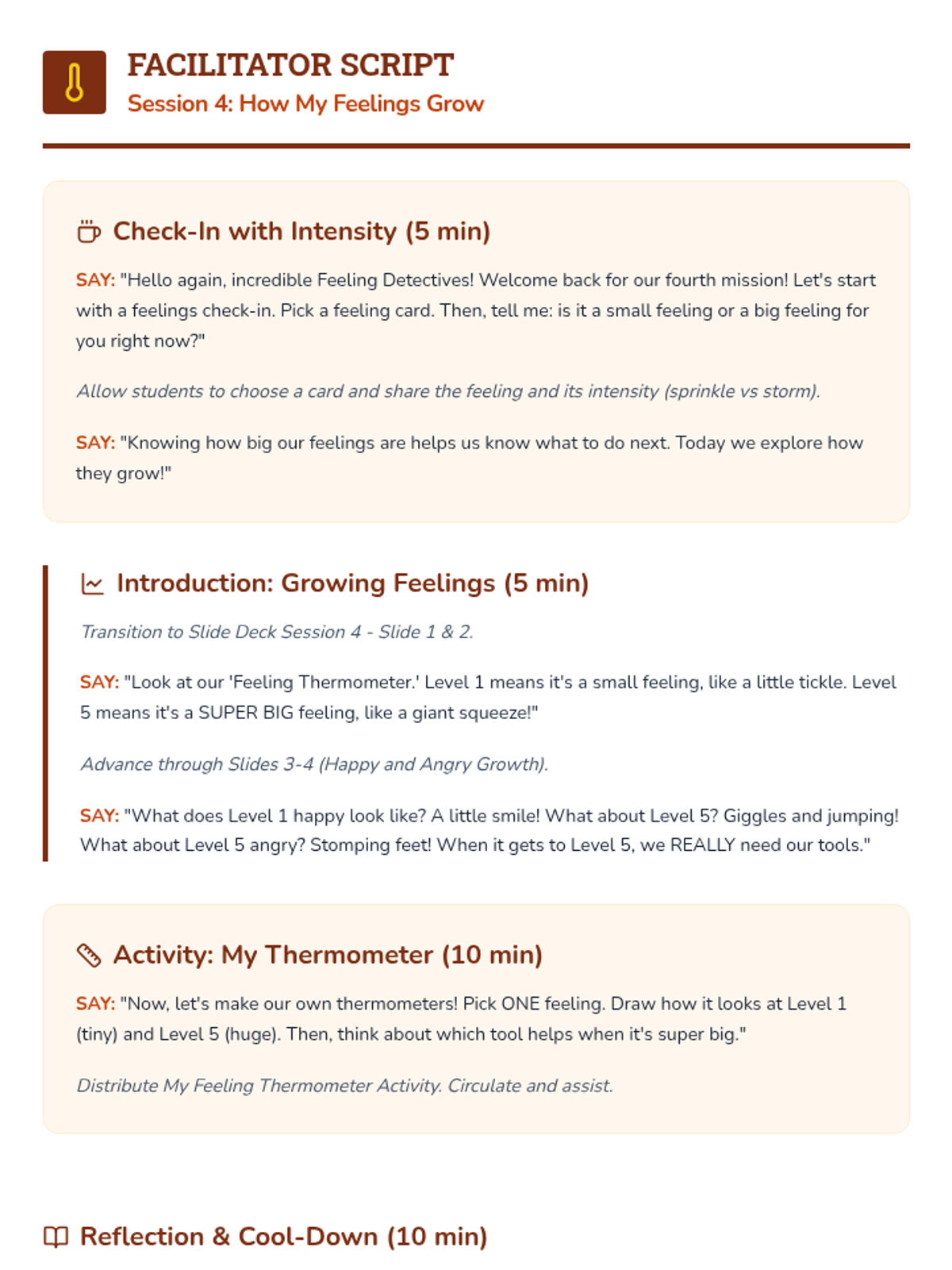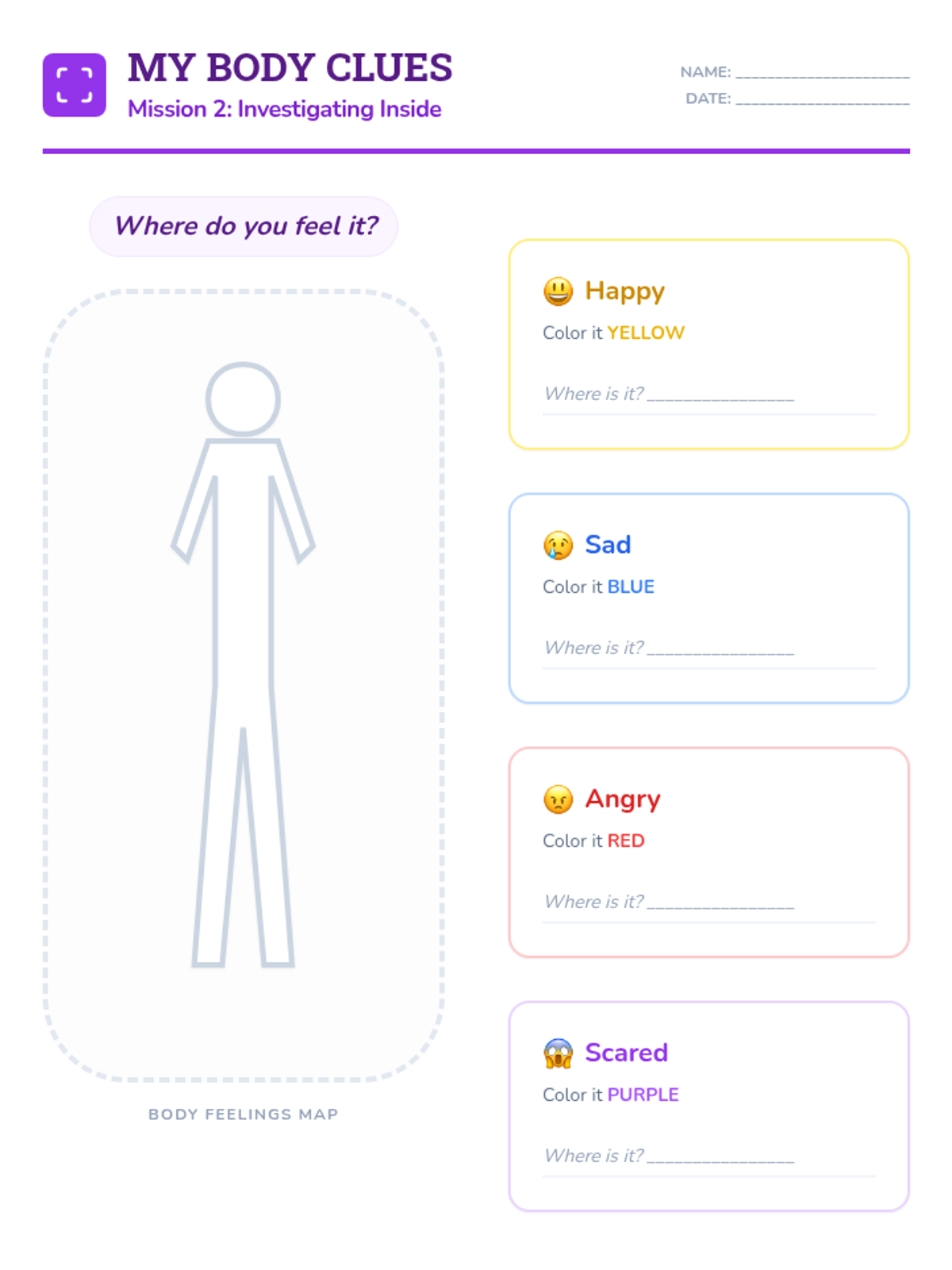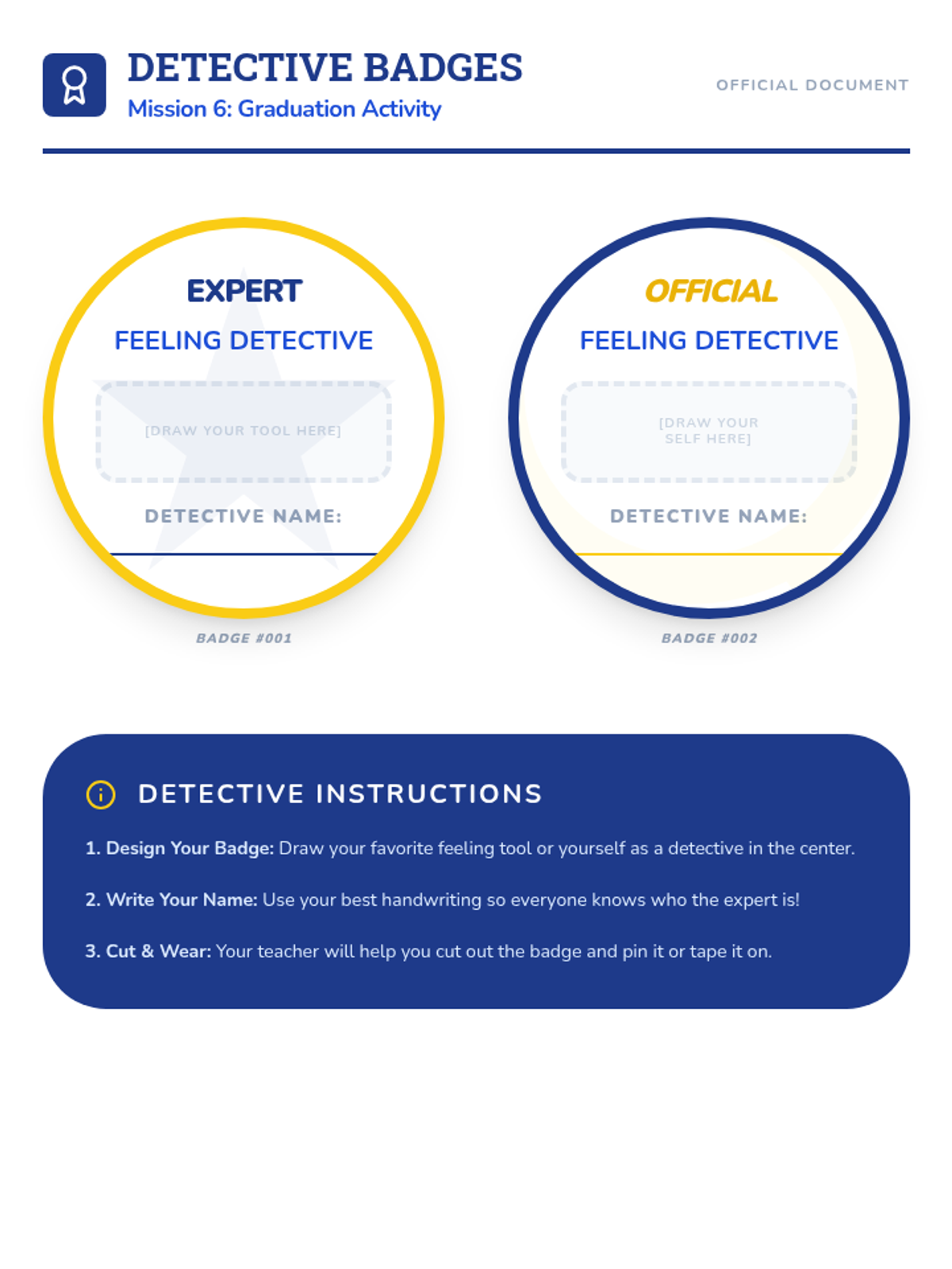 A 6-session social-emotional learning curriculum designed for kindergarteners to identify, understand, and regulate their emotions through the engaging lens of being 'Feeling Detectives'. Students build a toolkit of calming strategies and learn to recognize physical clues of emotions.
