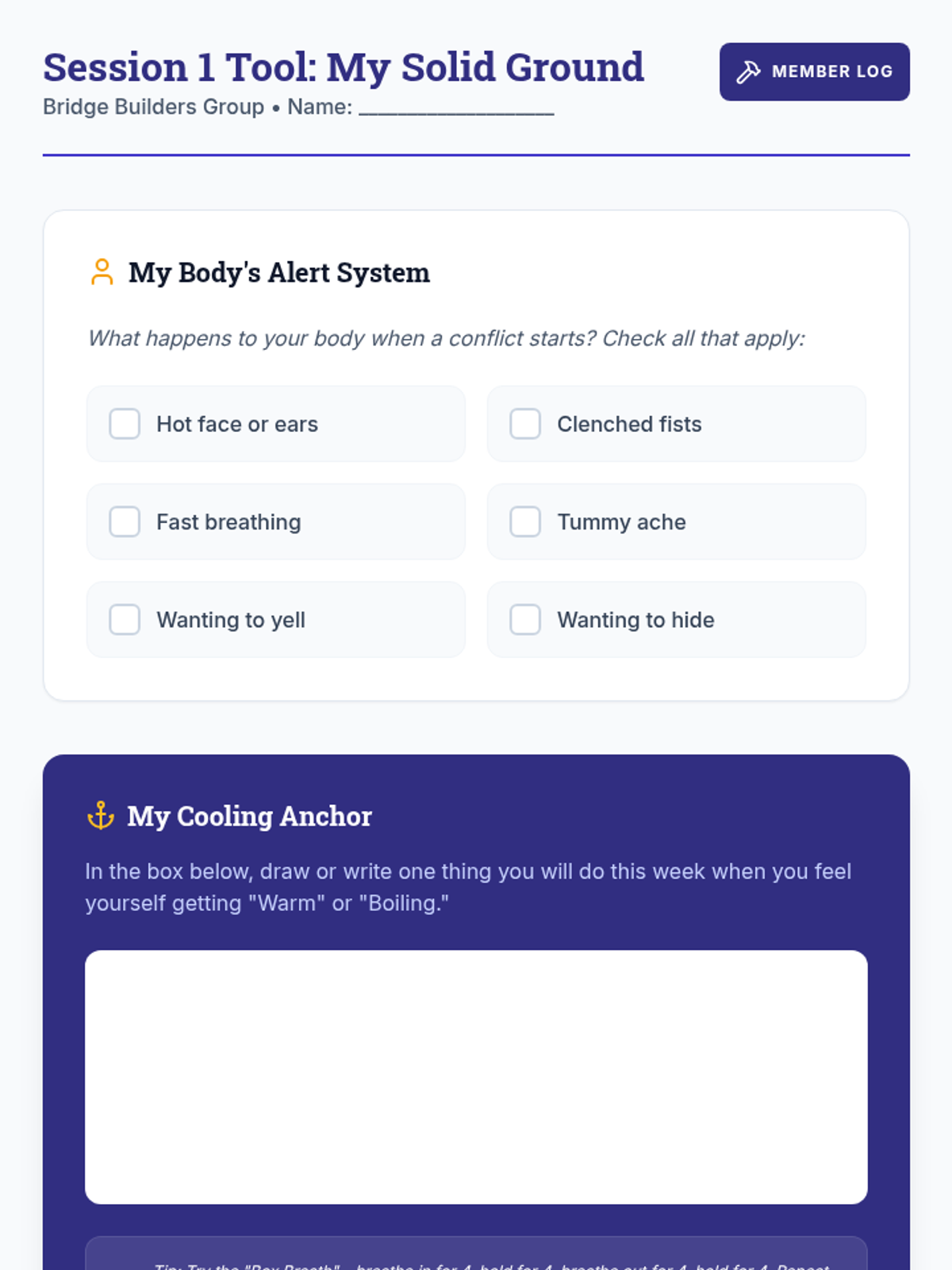 A 5-session mindfulness-based social-emotional learning group for 5th graders. This sequence guides students through identifying emotions in their bodies, categorizing problem sizes, and learning to match their reactions using mindful techniques.