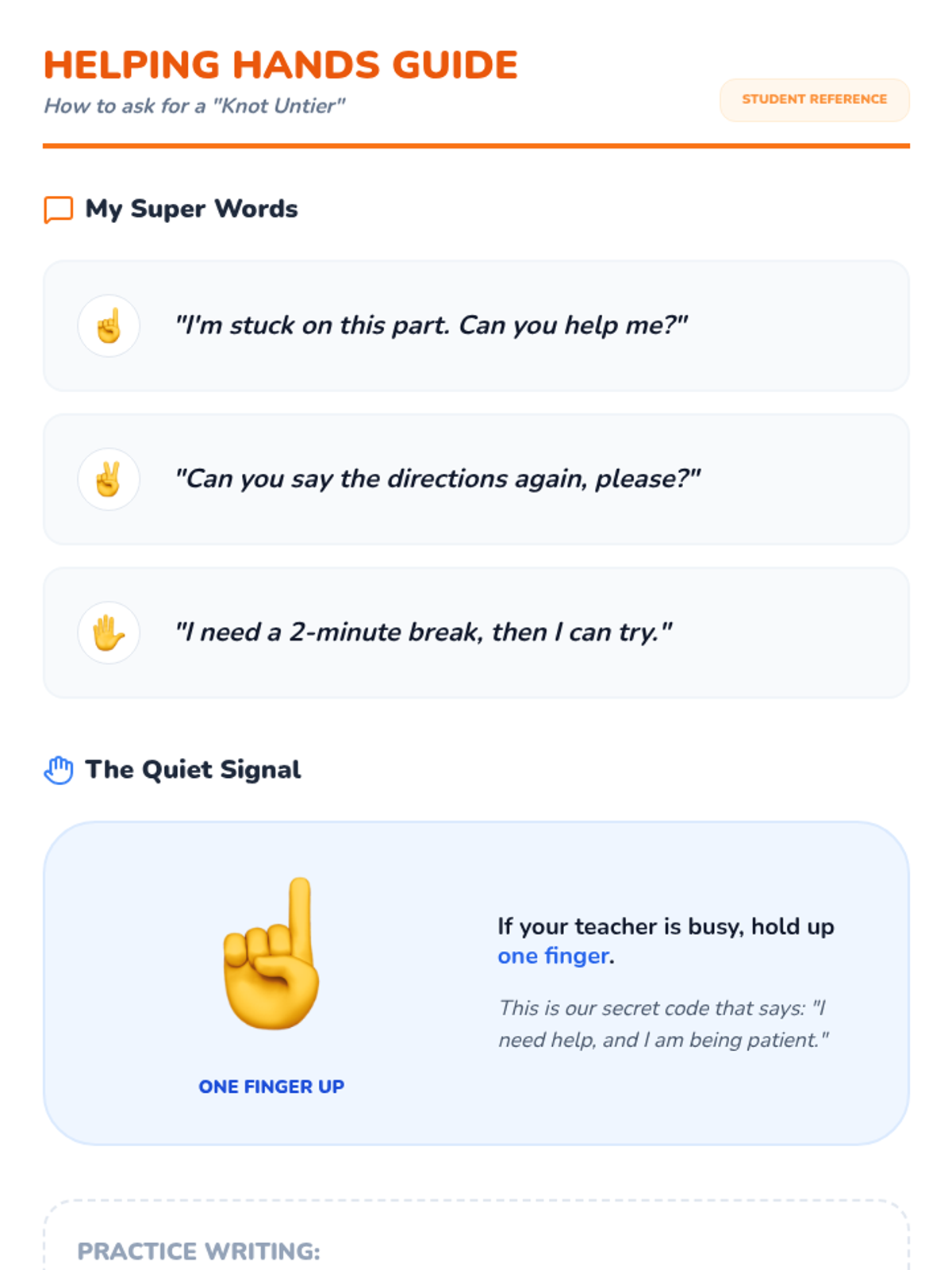 This inquiry-based sequence empowers 1st-grade students to identify emotions and select self-regulation strategies through social narratives. Students learn to recognize emotional triggers, respond to safety cues, and build a personalized toolkit for emotional management.