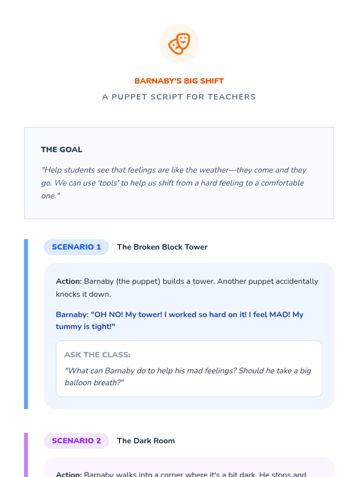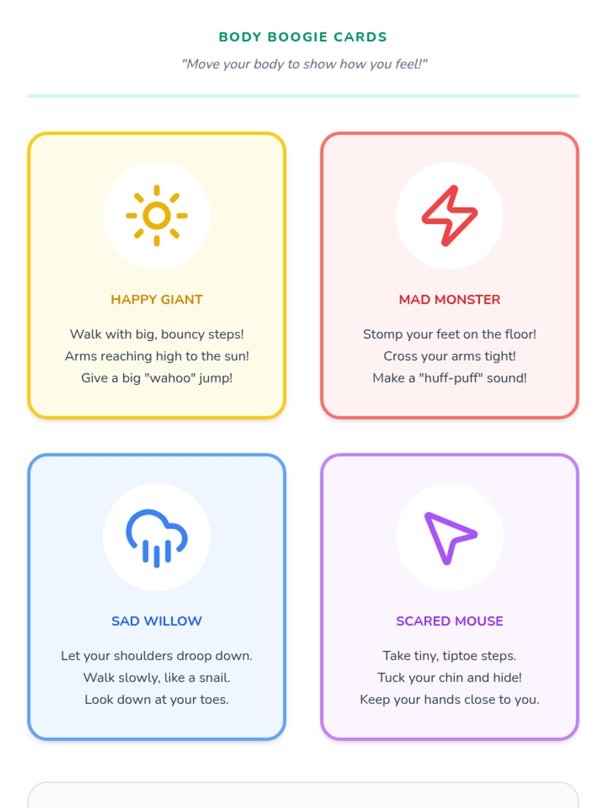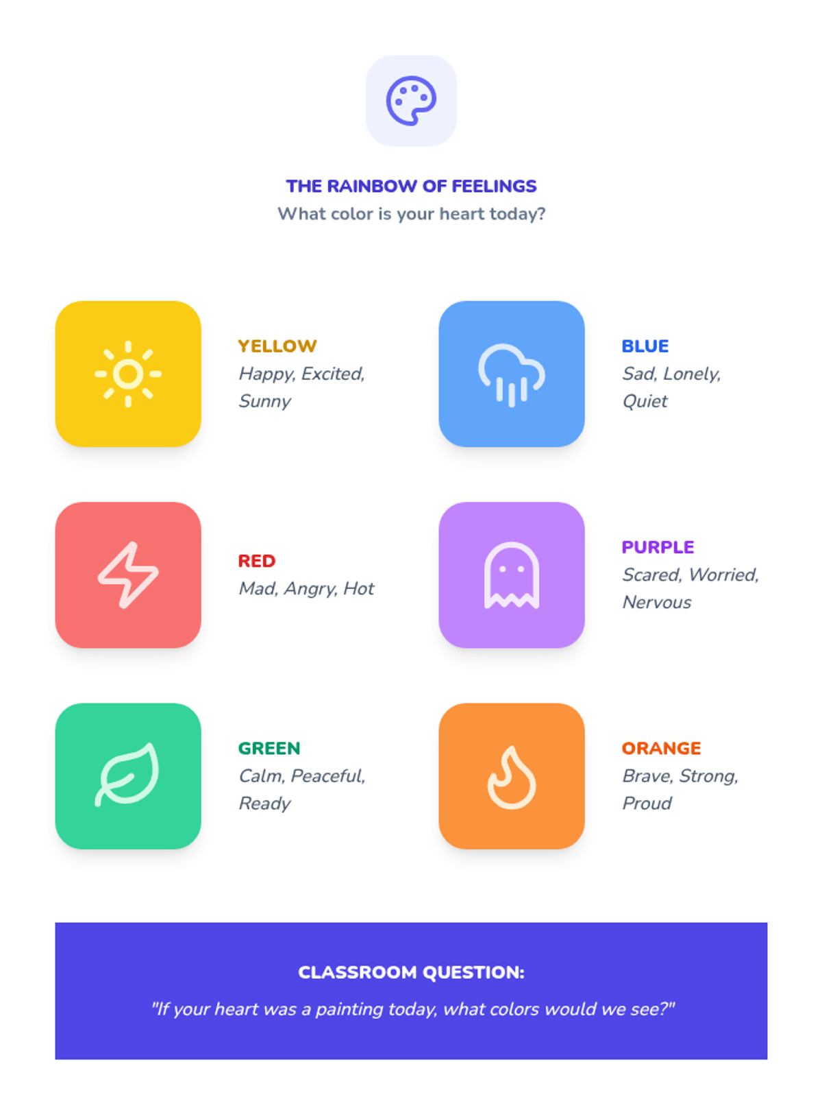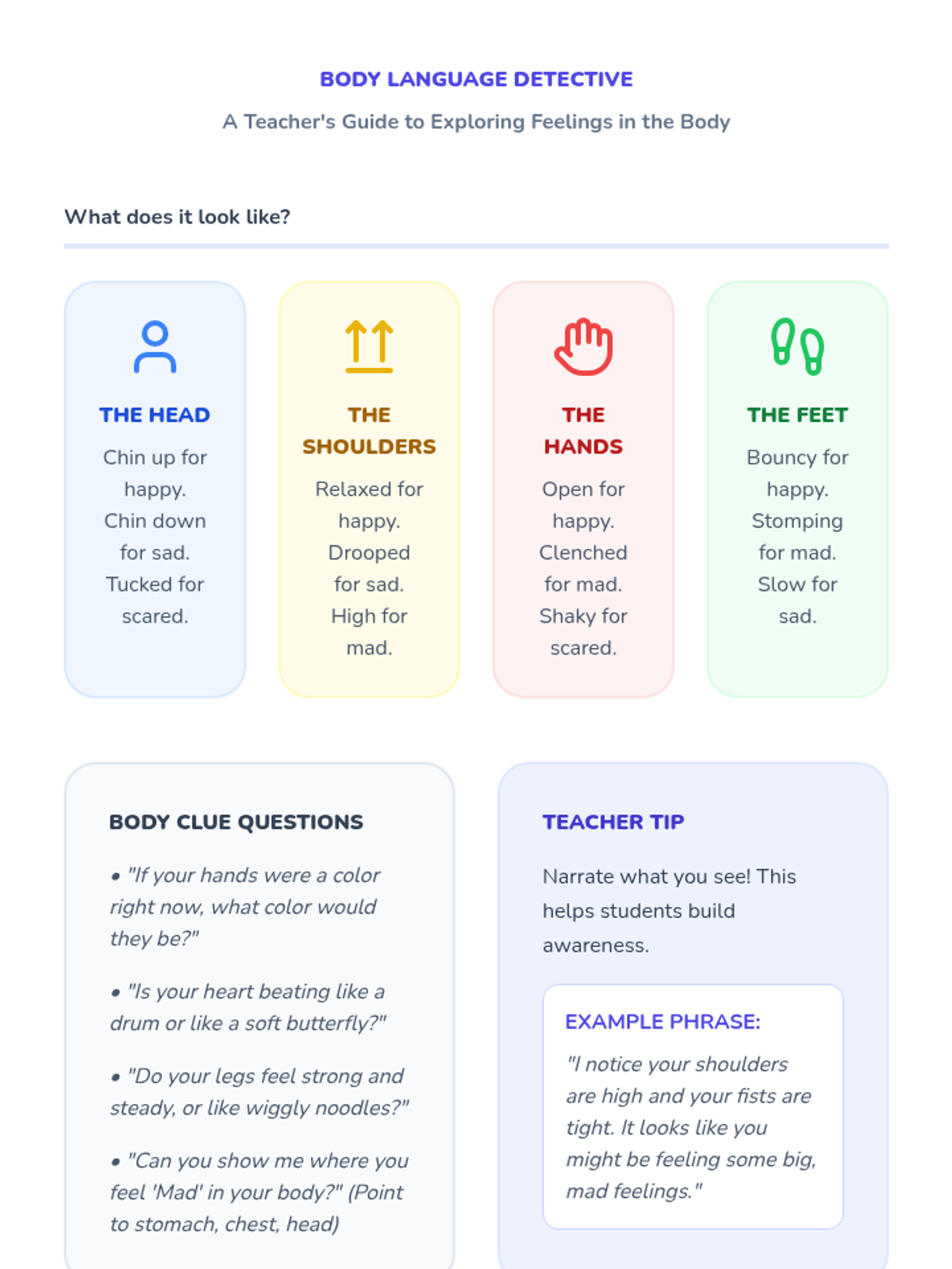 This sequence helps Pre-K students develop emotional literacy by recognizing, labeling, and expressing core feelings. Students explore the connection between emotions, facial expressions, body language, and colors while learning simple coping strategies for self-regulation.