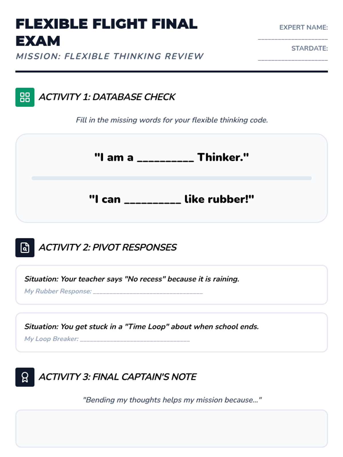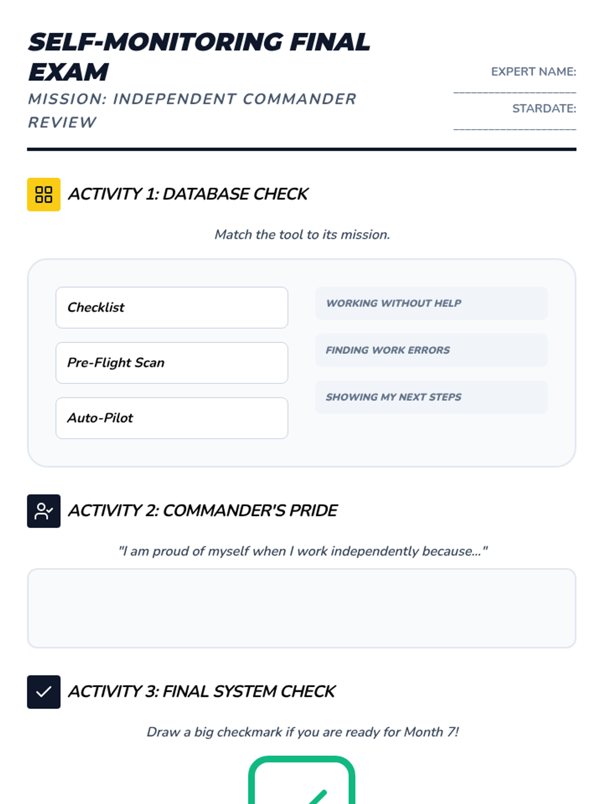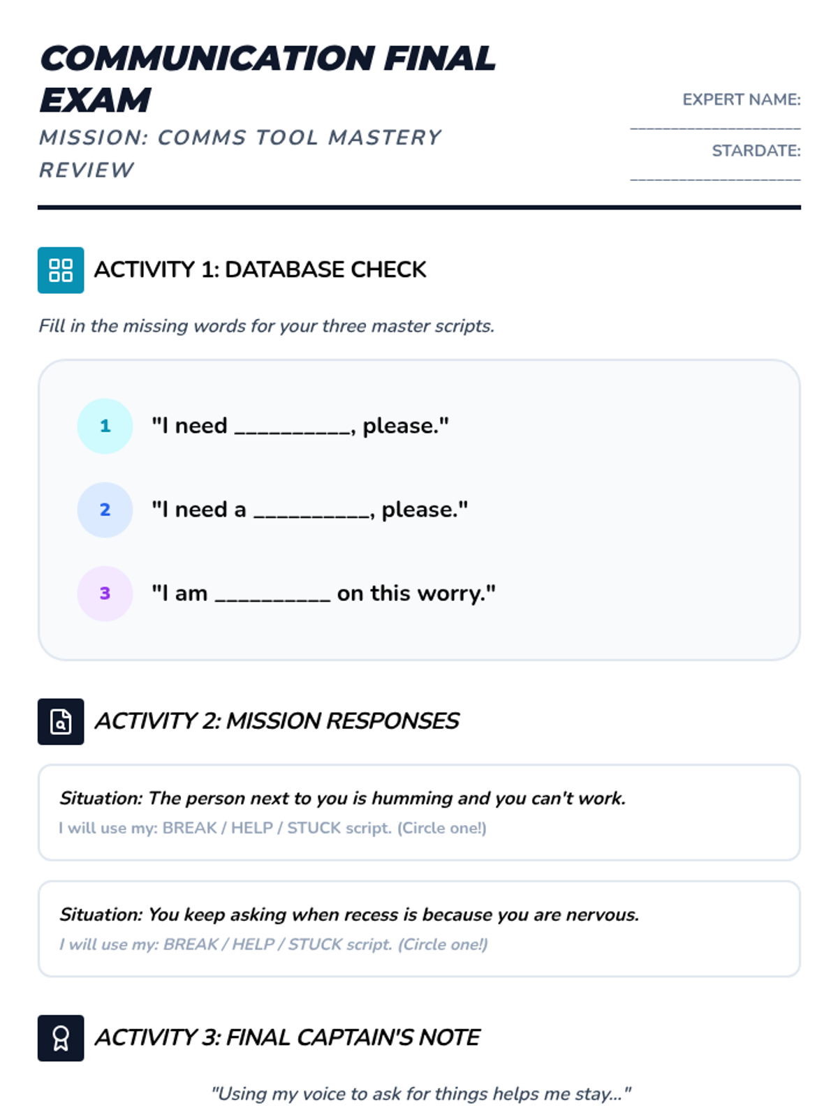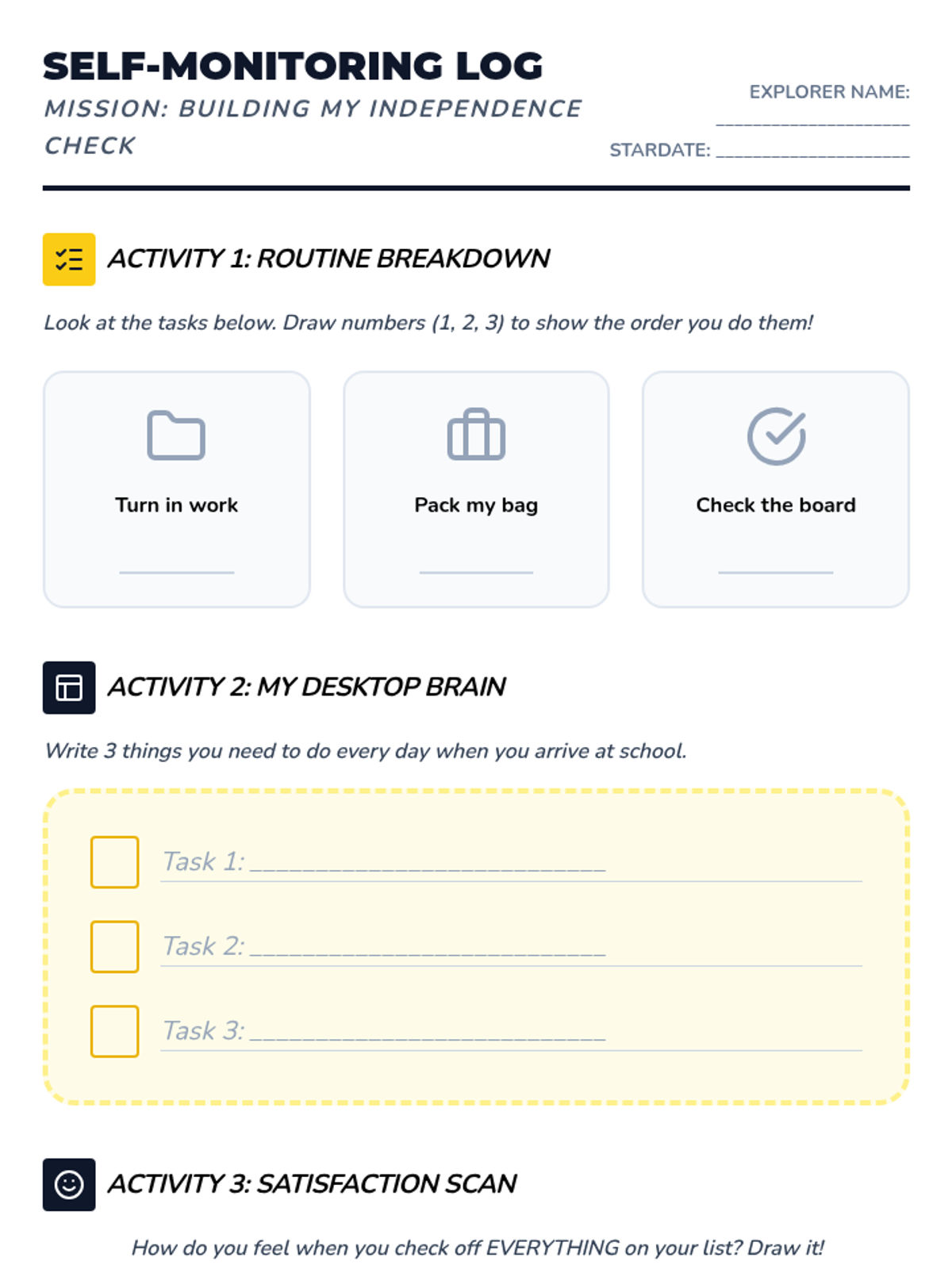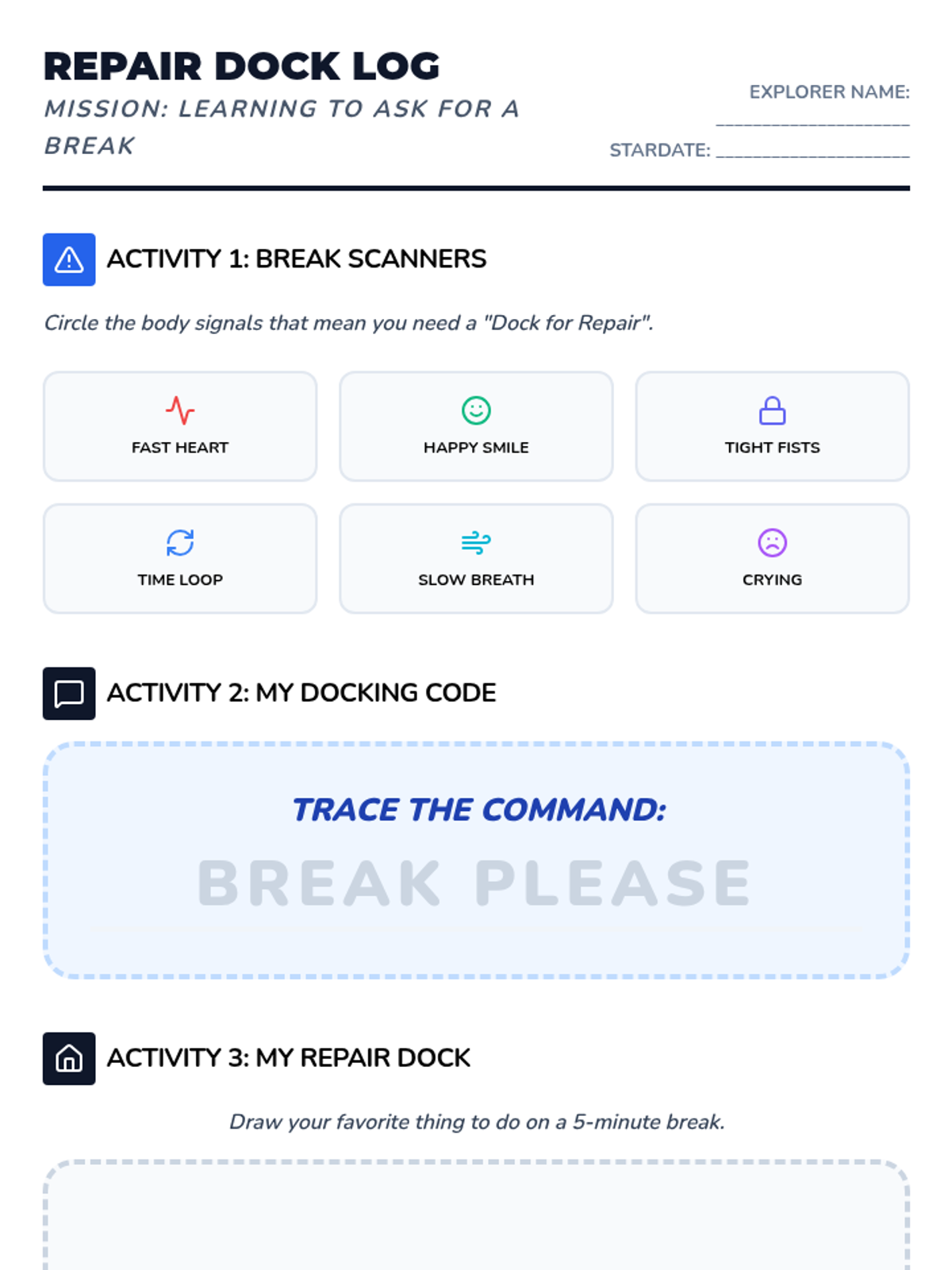 A 36-week social-emotional learning curriculum for a 3rd-grade student with autism, focusing on emotion identification, anxiety management, coping strategies, and flexible thinking. The program uses a 'Feeling Frontier' space-exploration theme to make abstract concepts concrete and engaging.