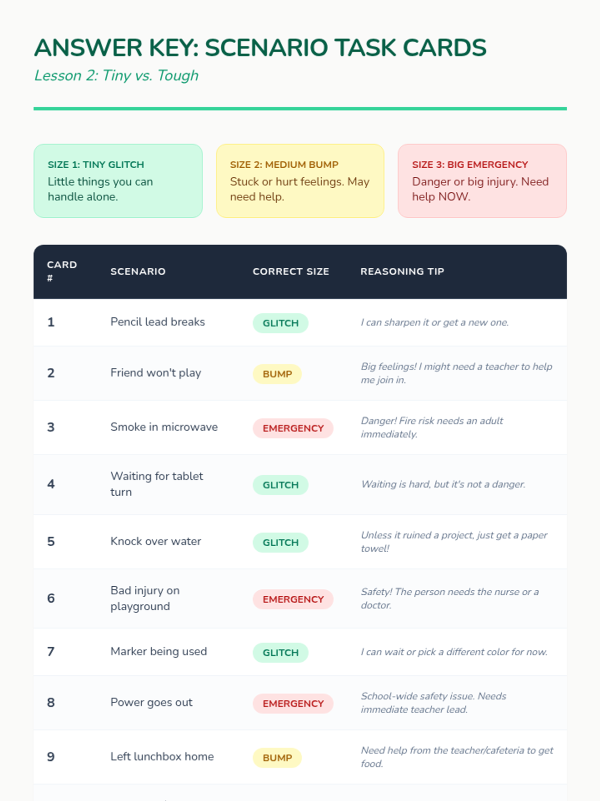 A 12-session emotional intelligence and literacy program designed for K-6 students. Using a 'Trailblazer' theme, Pathfinders develop self-awareness, confidence, and critical decision-making skills to replace impulsive reactions with thoughtful choices. Includes safety scenarios and practical tools for managing exam stress.