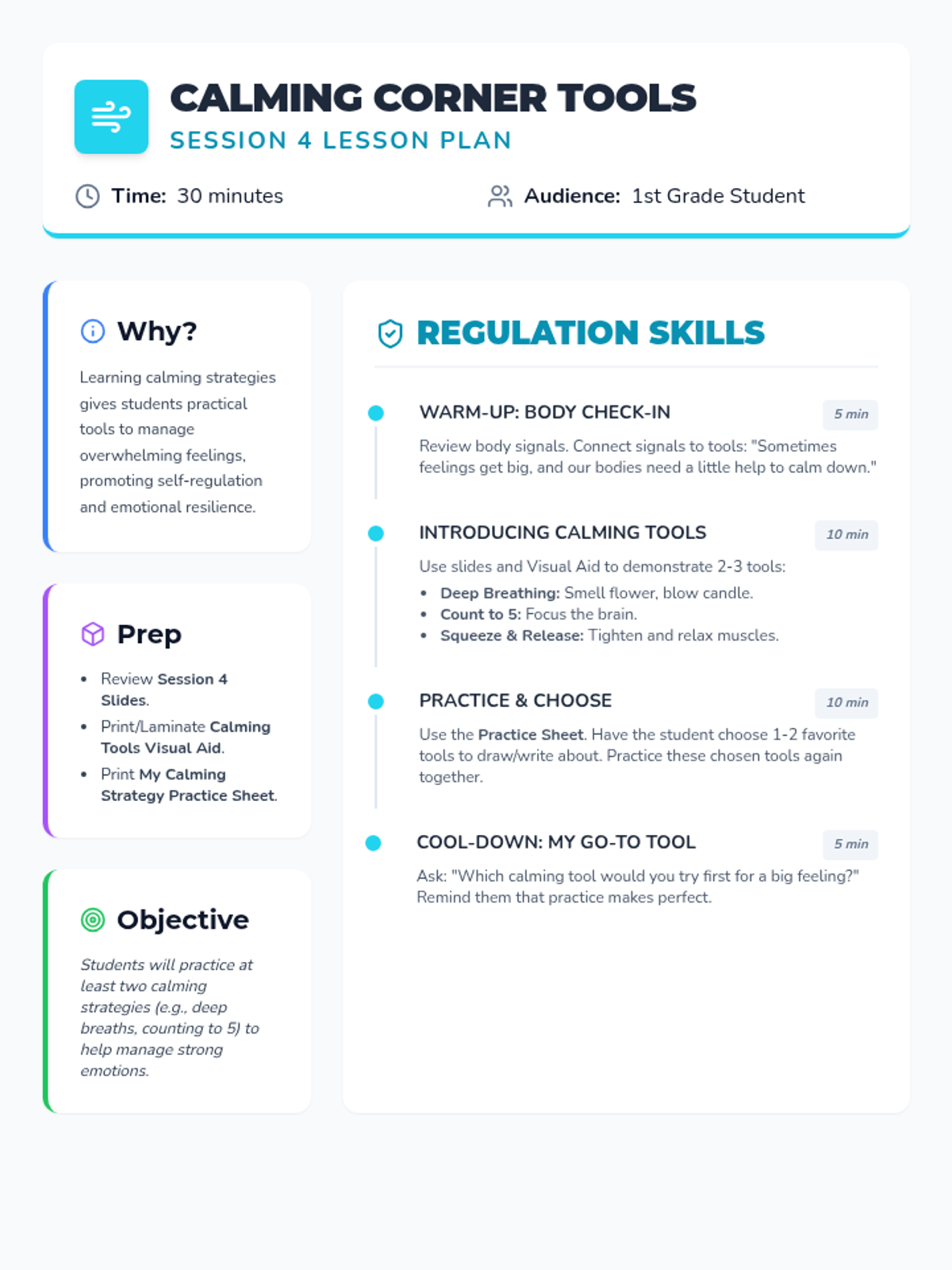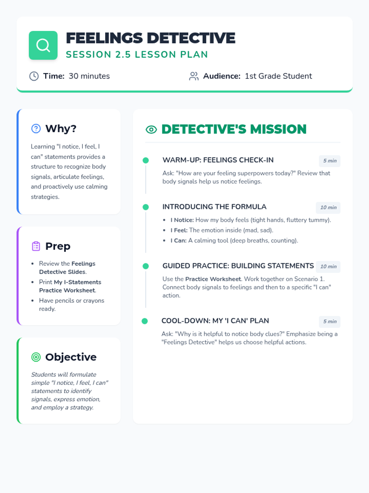 A three-part mentoring sequence blending Social Studies concepts (geography, citizenship, history) with ELSA principles to build emotional literacy, social skills, and resilience. Designed for short 30-minute sessions with minimal prep.