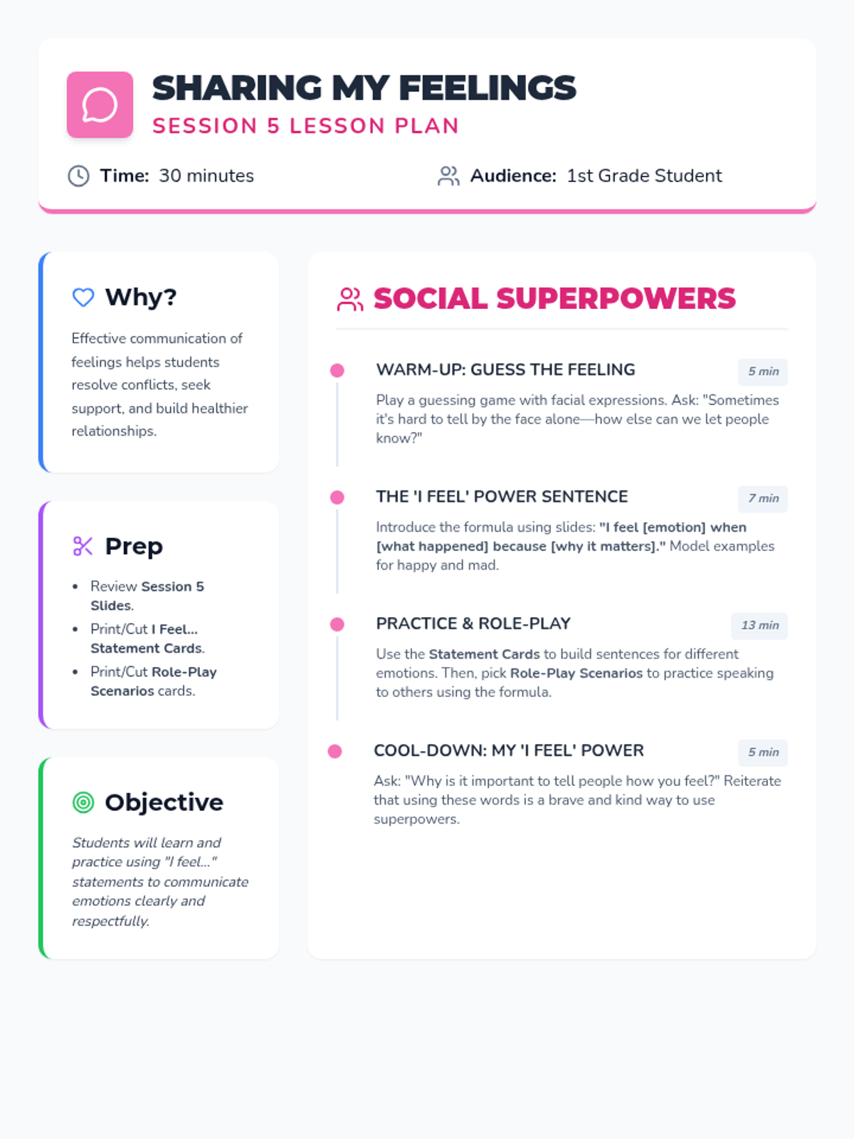 A series of lessons focused on building social-emotional skills and healthy friendships in early elementary grades.