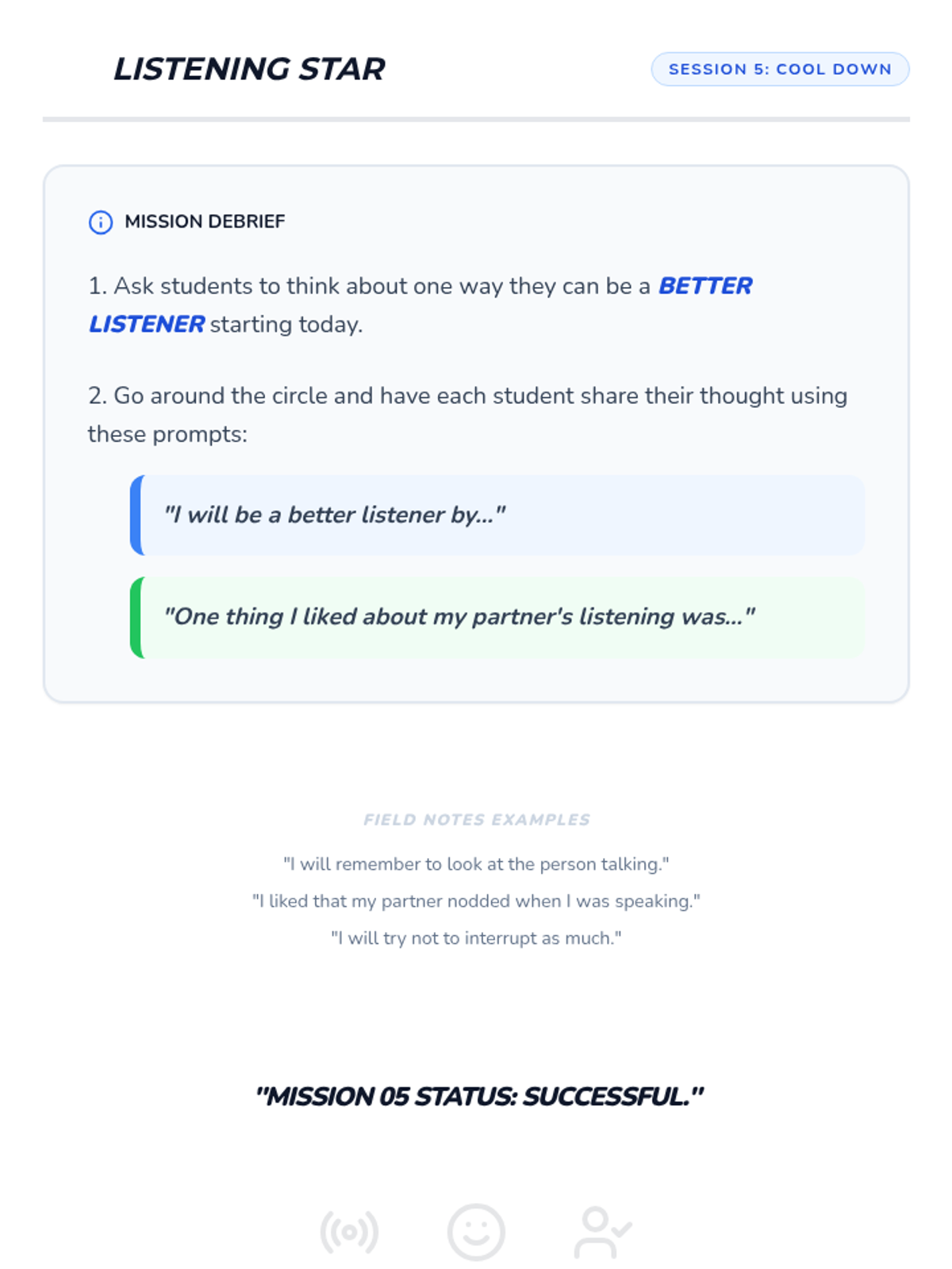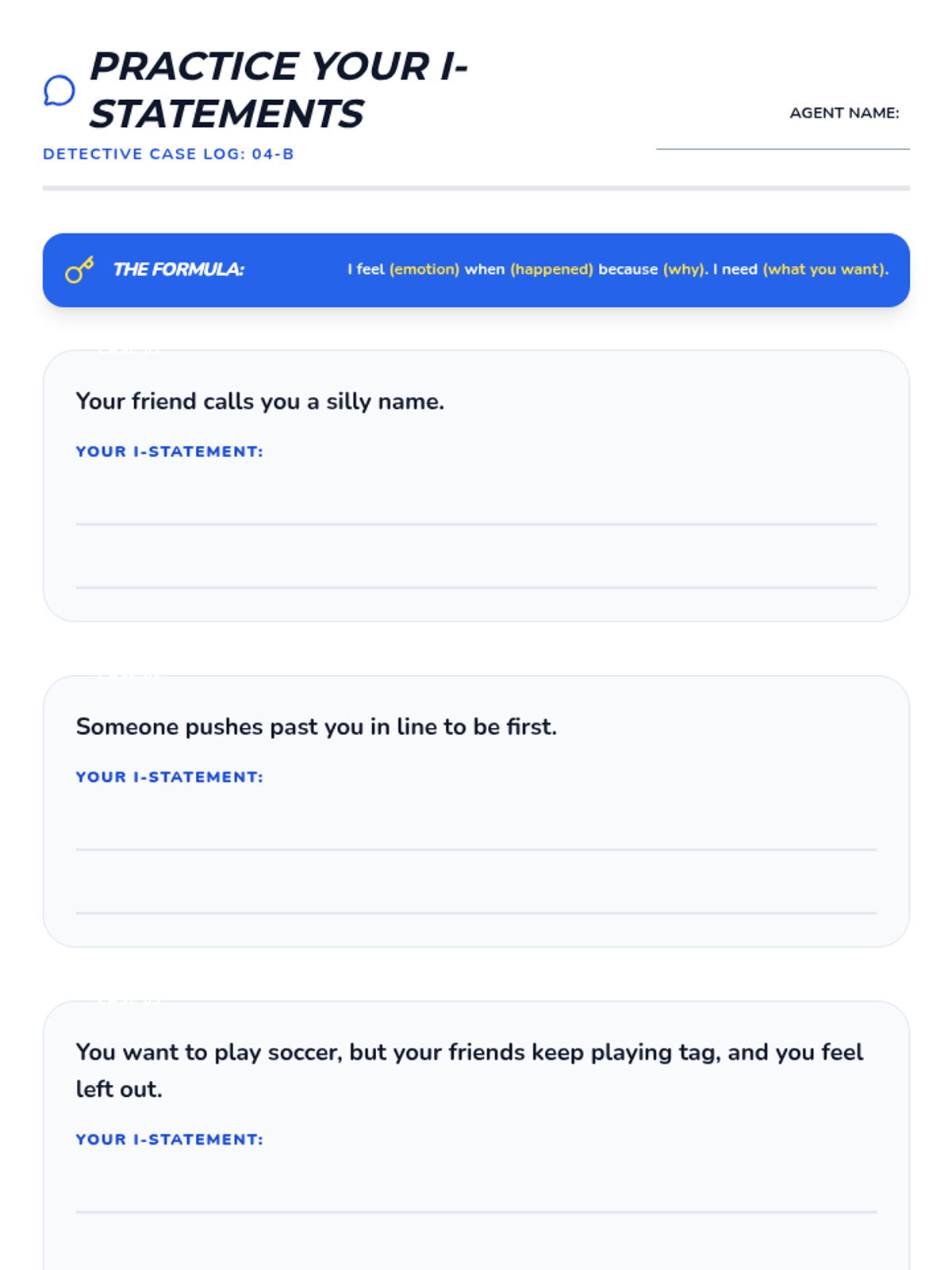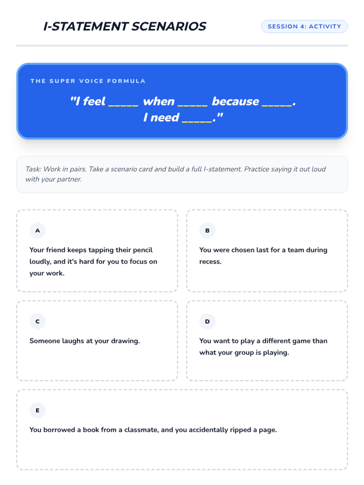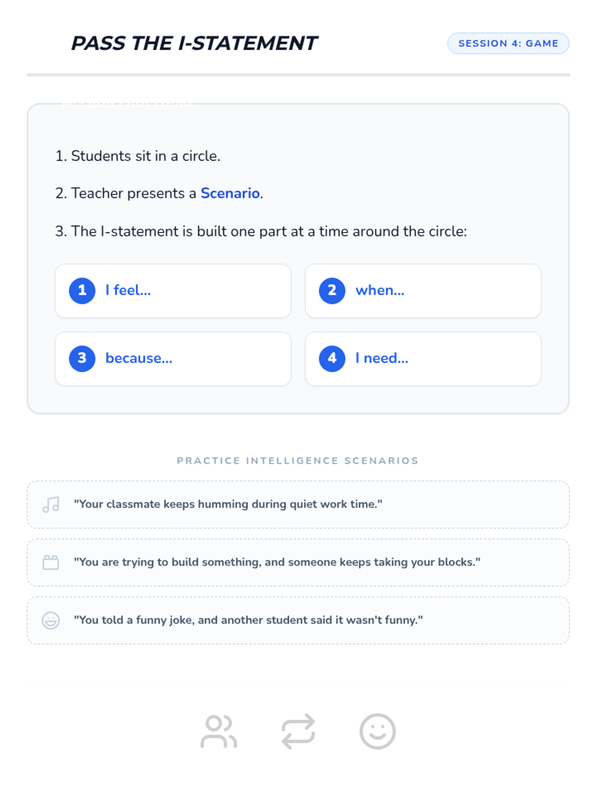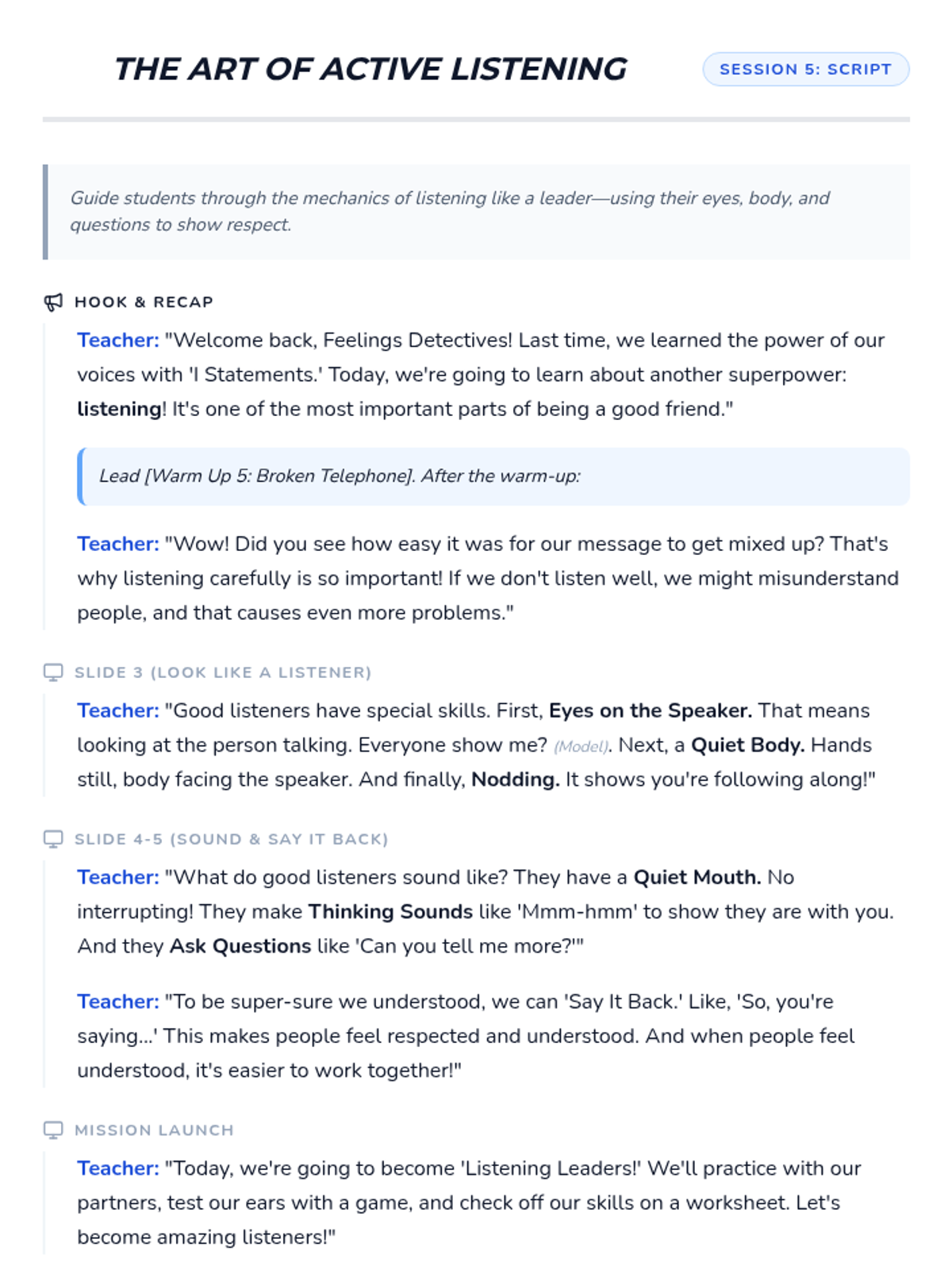 A six-session social-emotional learning program for 2nd and 3rd-grade boys focused on identifying emotions, physical regulation, and peaceful conflict resolution through a fun 'Feelings Detectives' theme.